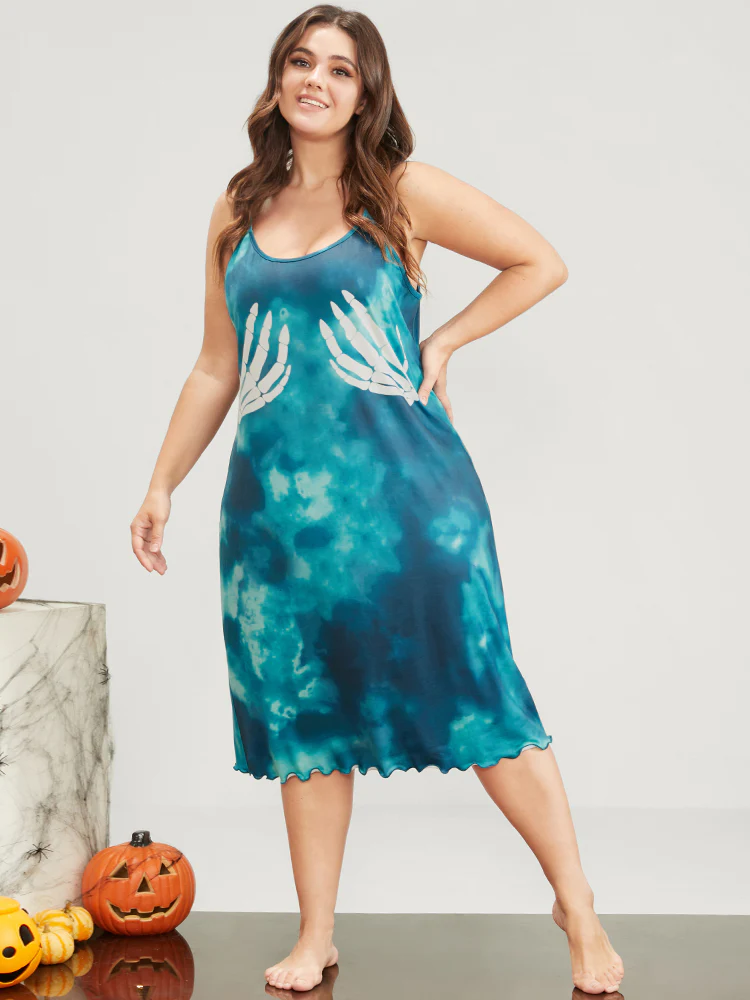 Halloween Print Scalloped Trim Cami Dress