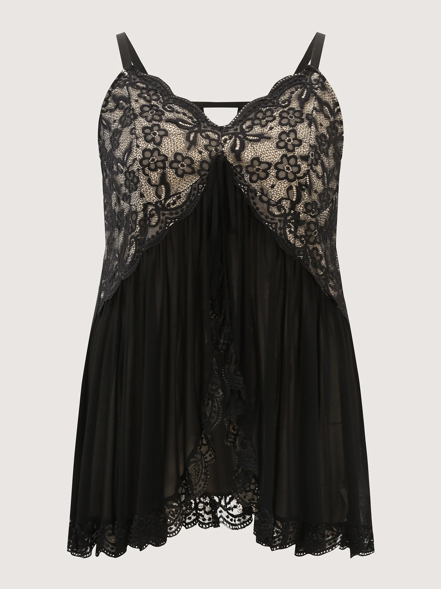 Lace Sheer Deep V-Neck Ruffled Sleep Dress