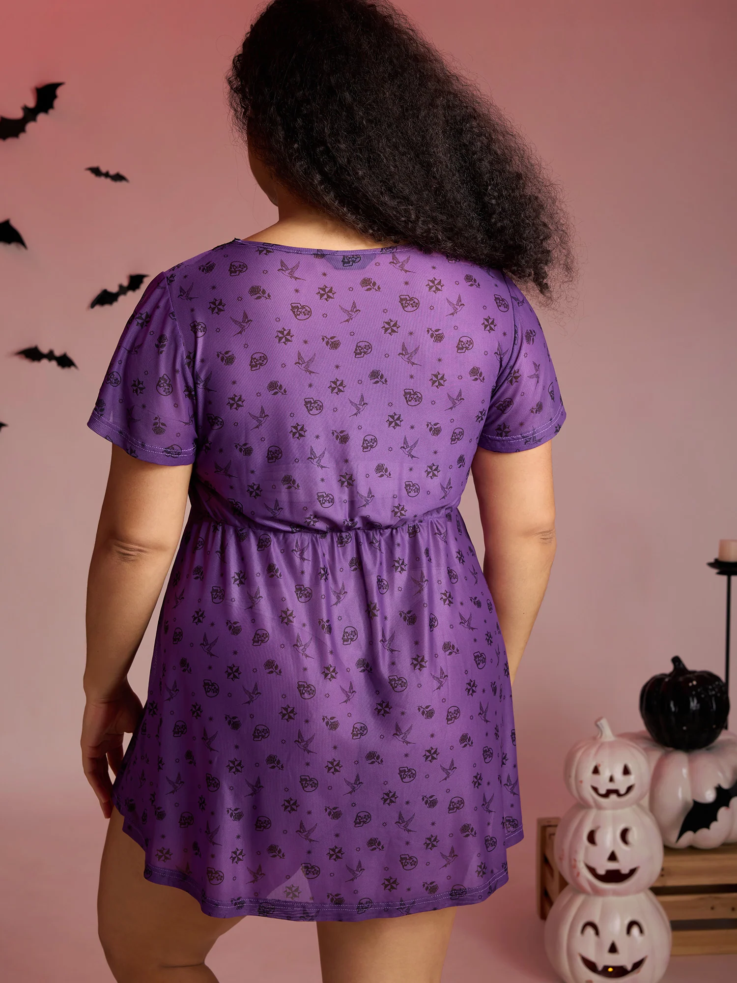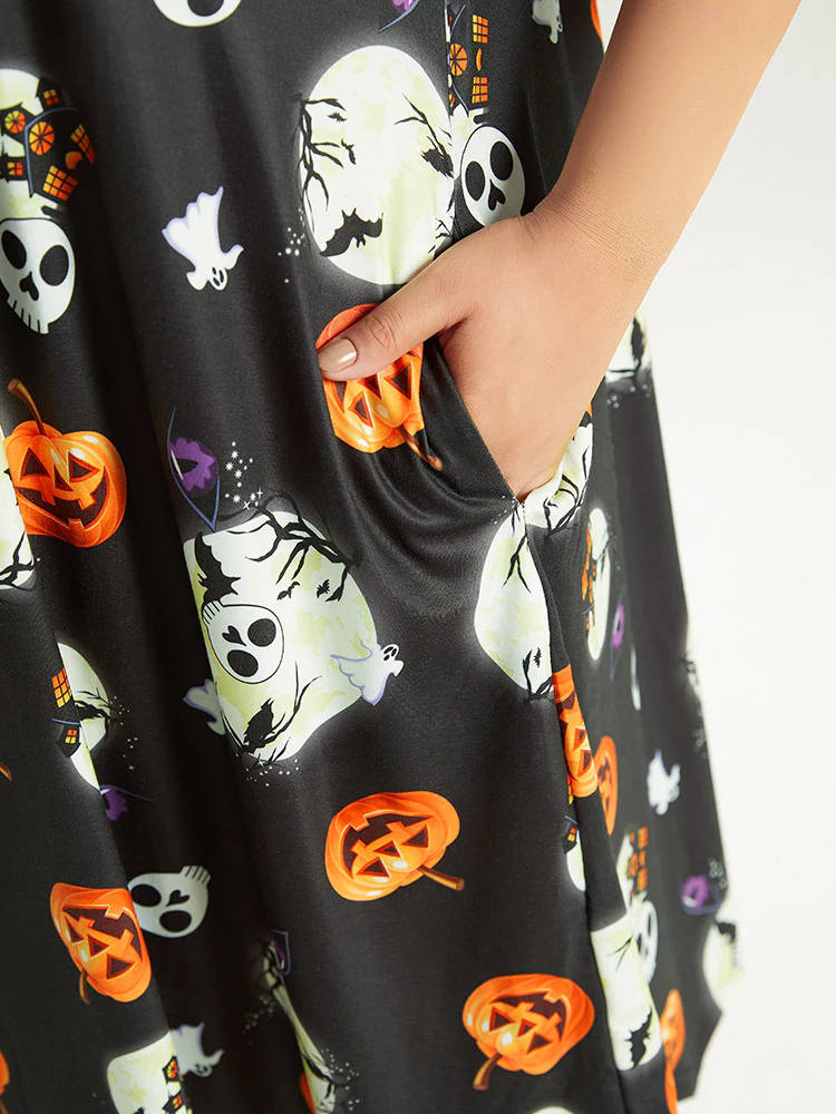 Timeless Halloween Print Stretchy Waist Sleep Dress