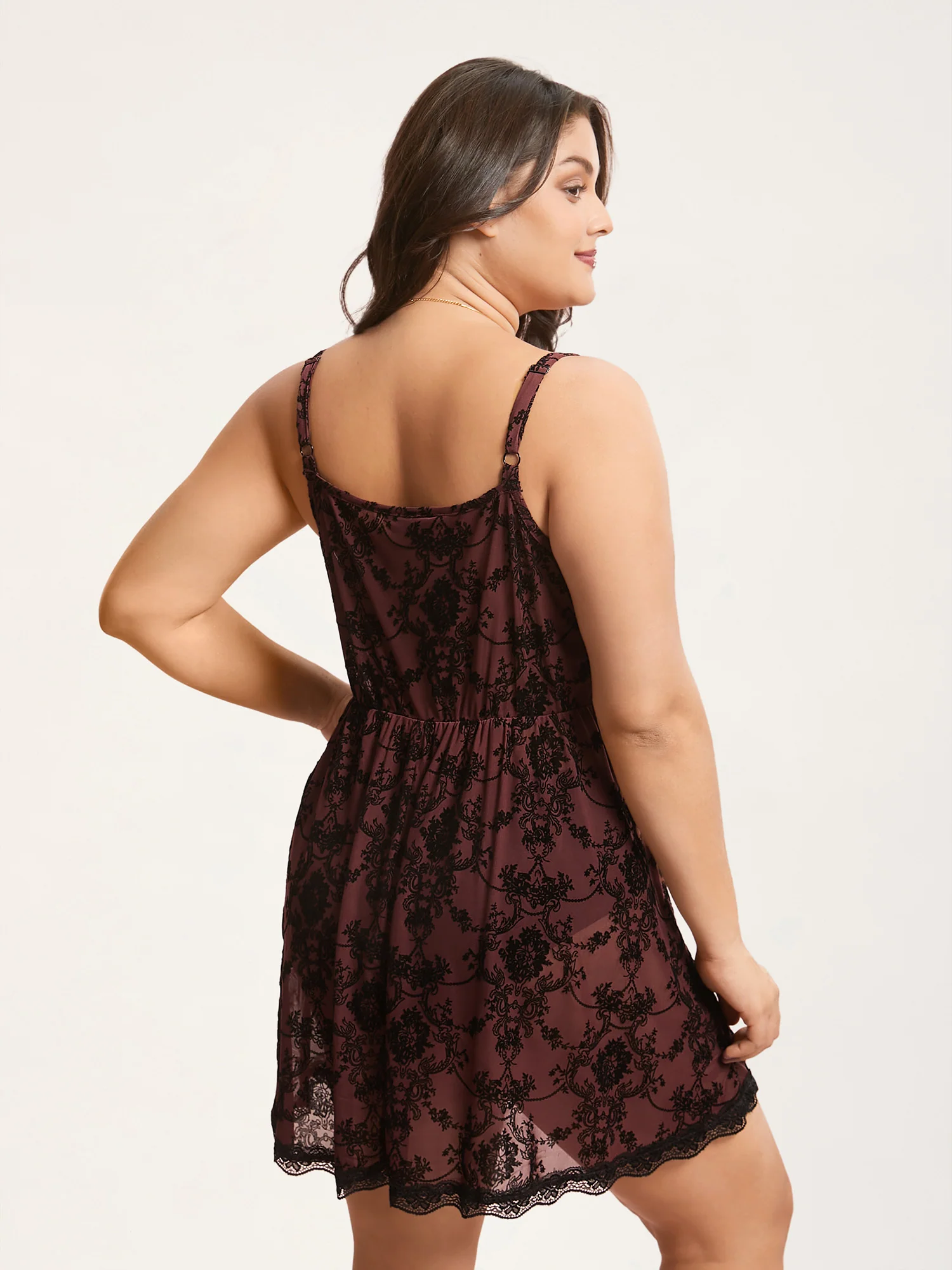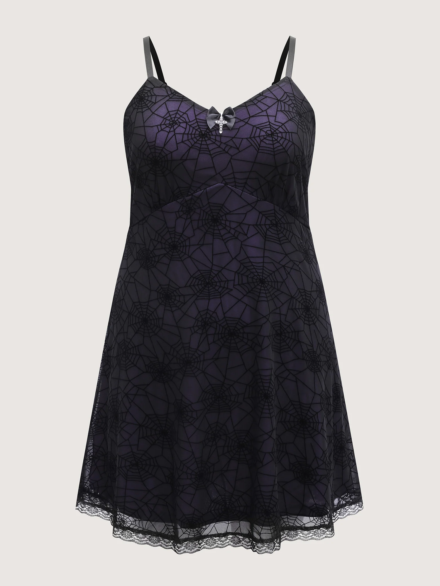 Elastic Flocked Mesh Spiderweb Sleep Dress