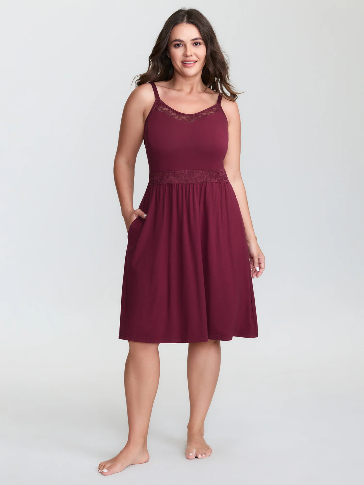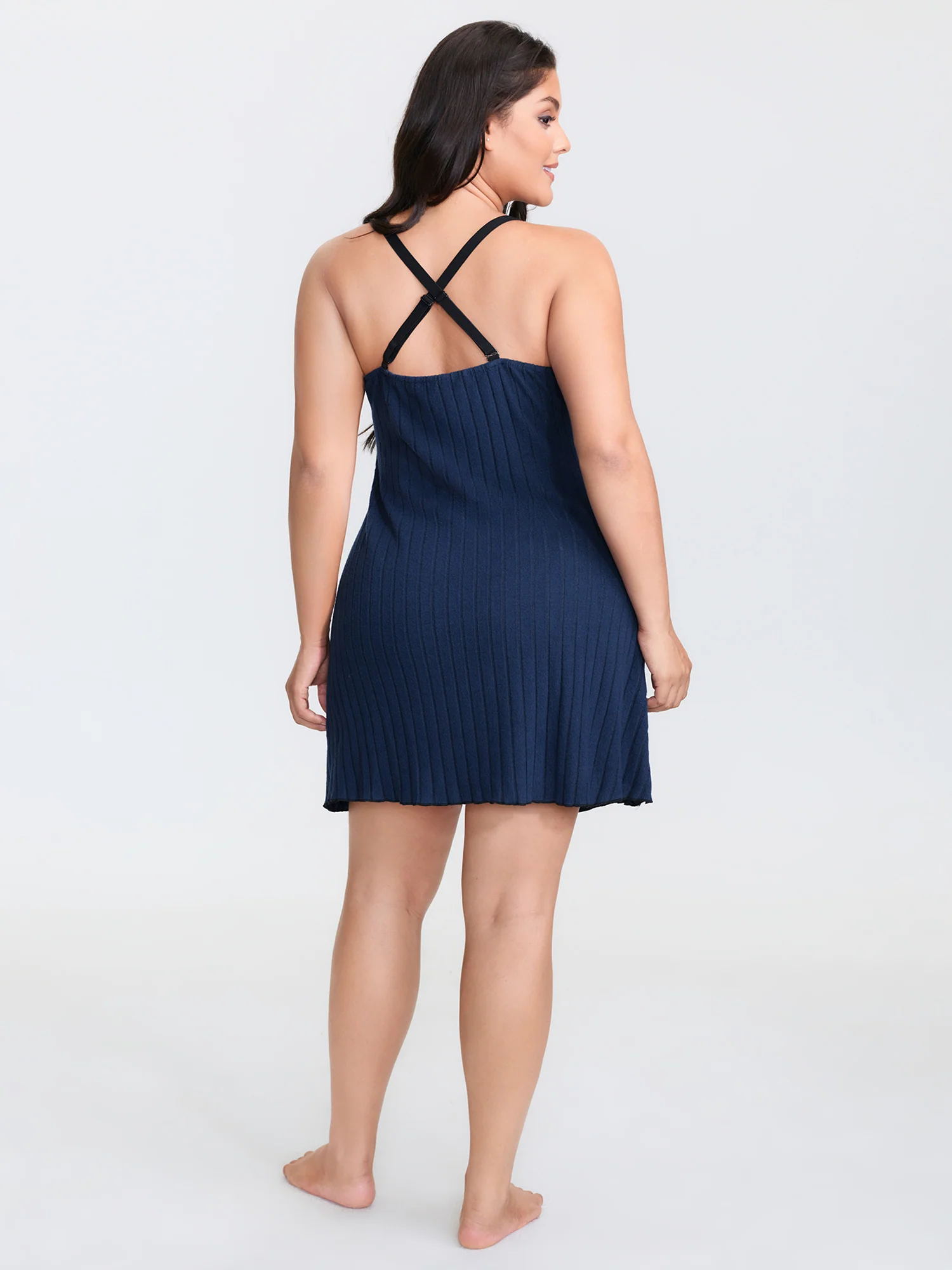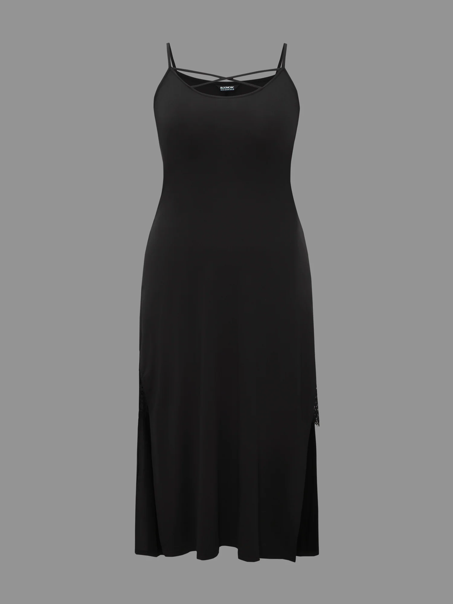 Solid Crisscross Lace Trim Slit Hem Sleep Dress