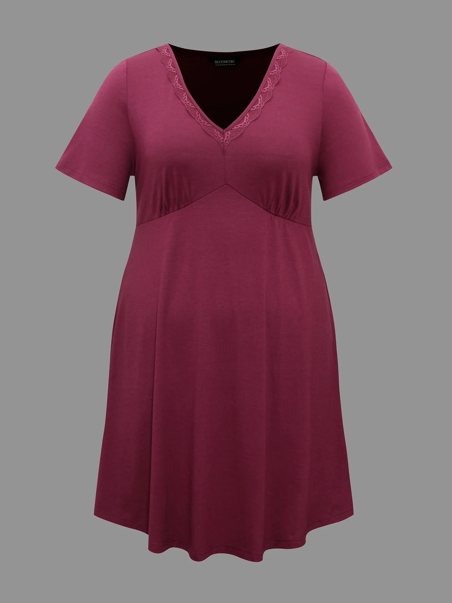 Lace Trim V-Neck Solid Sleep Dress