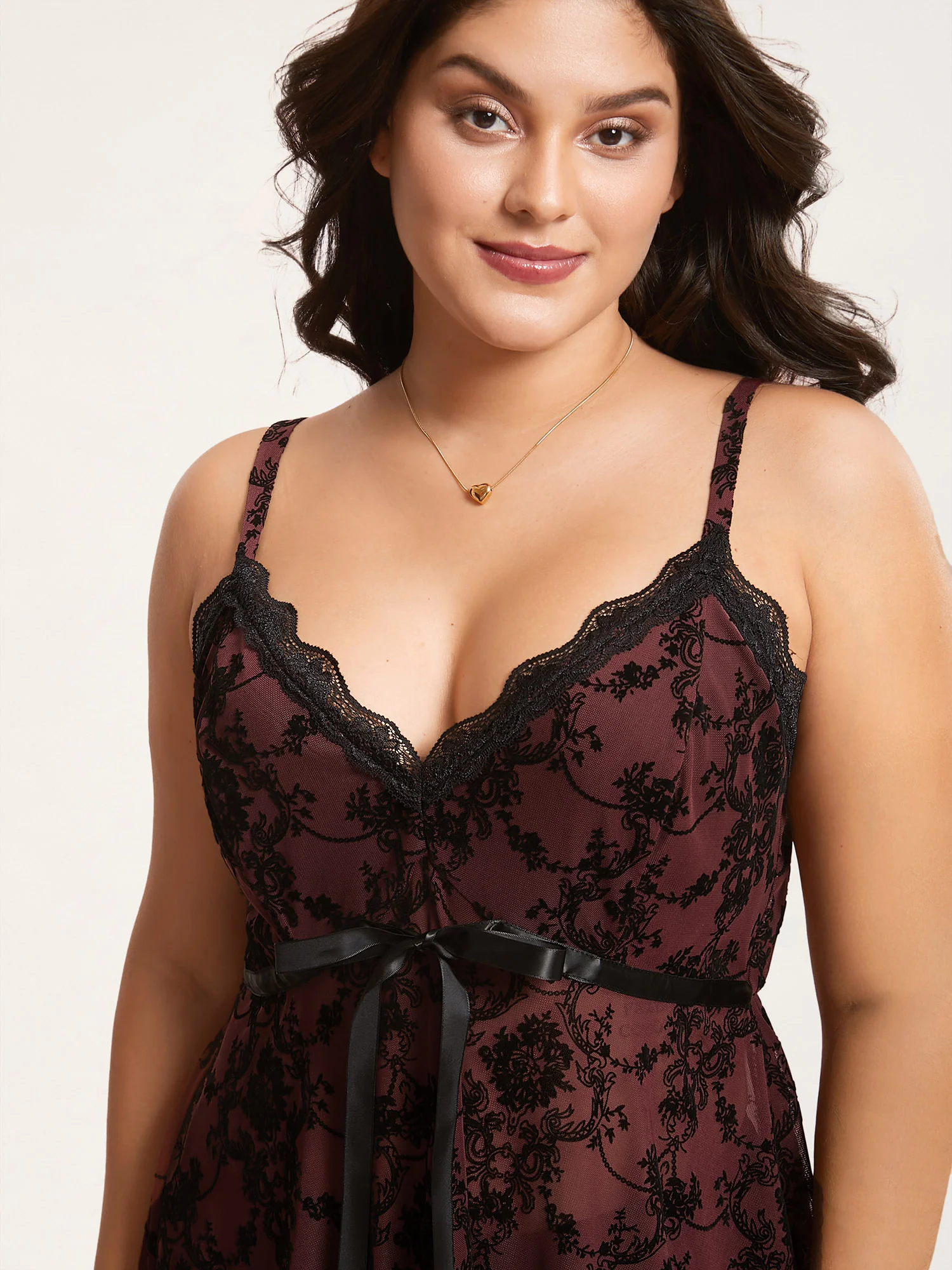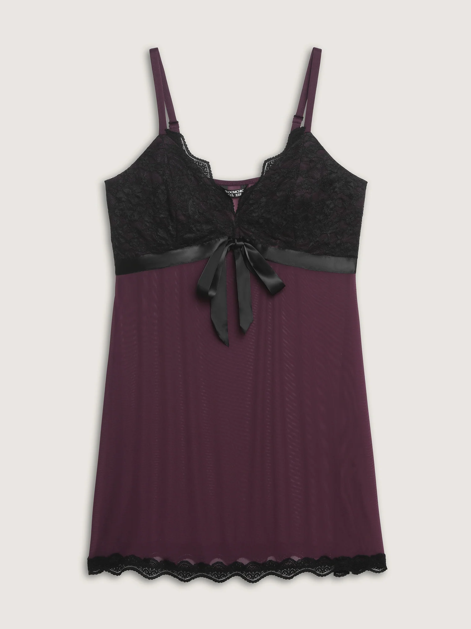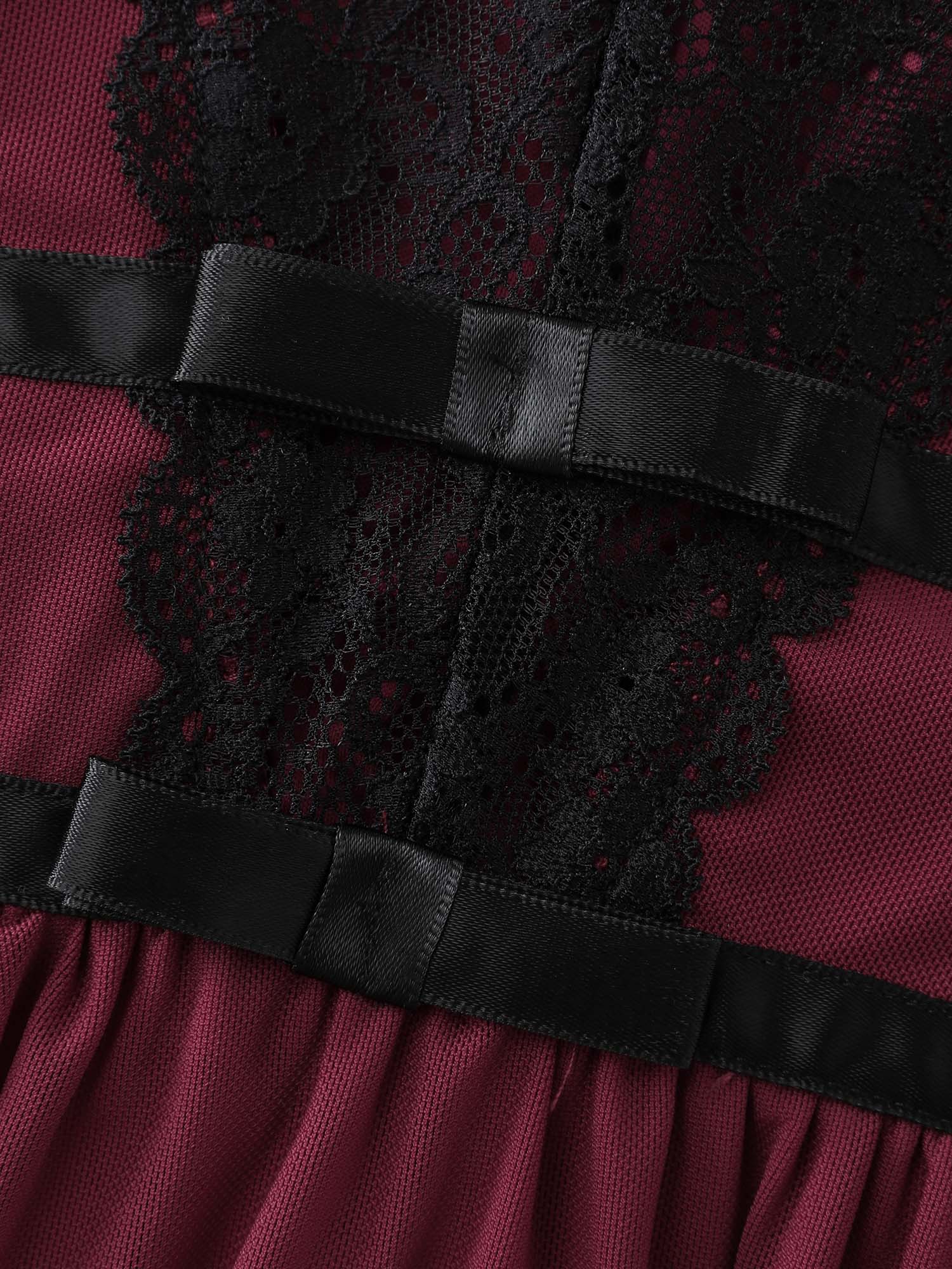 Sheer Lace Trim Bow-Tie Sleep Dress