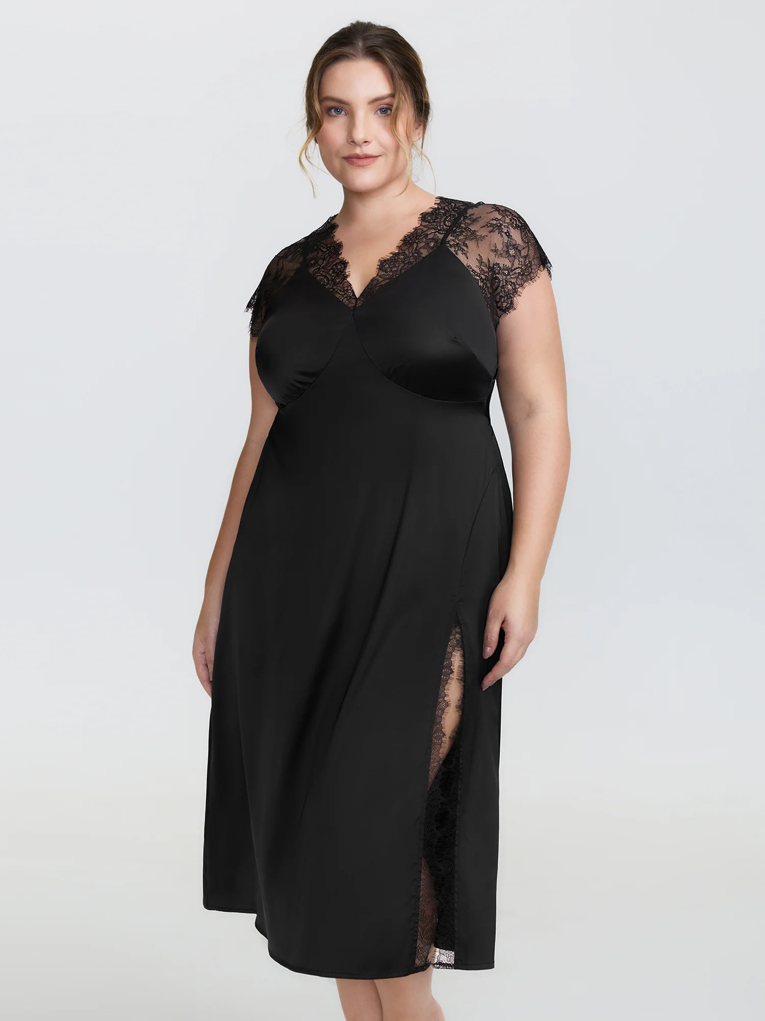 Sheer Lace Trim High Slit Sleep Dress