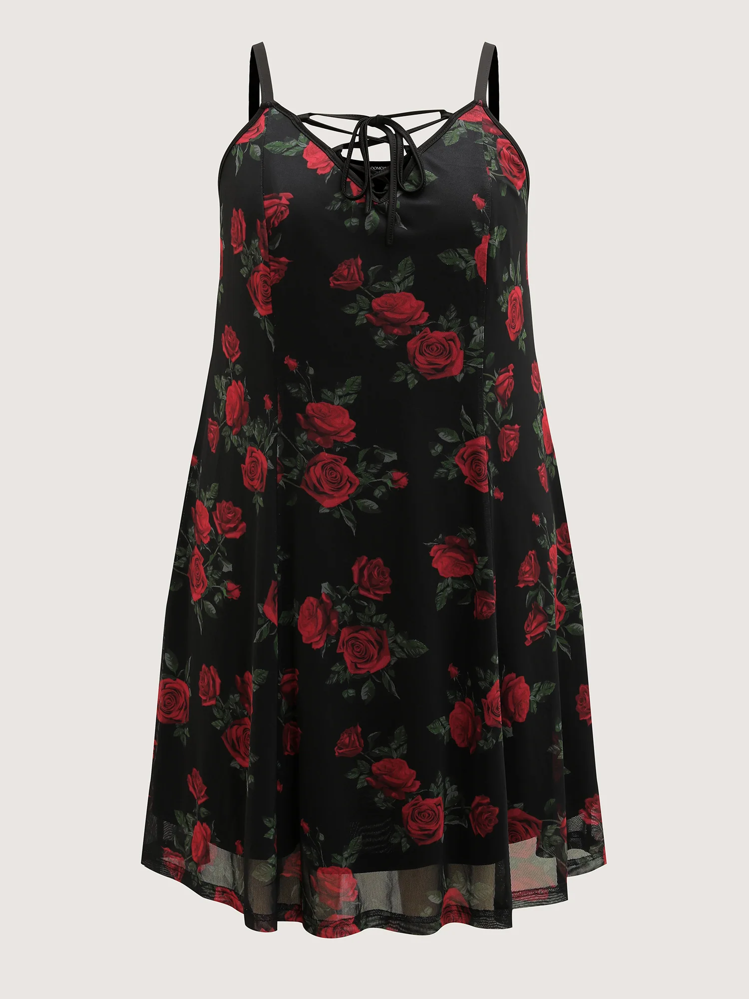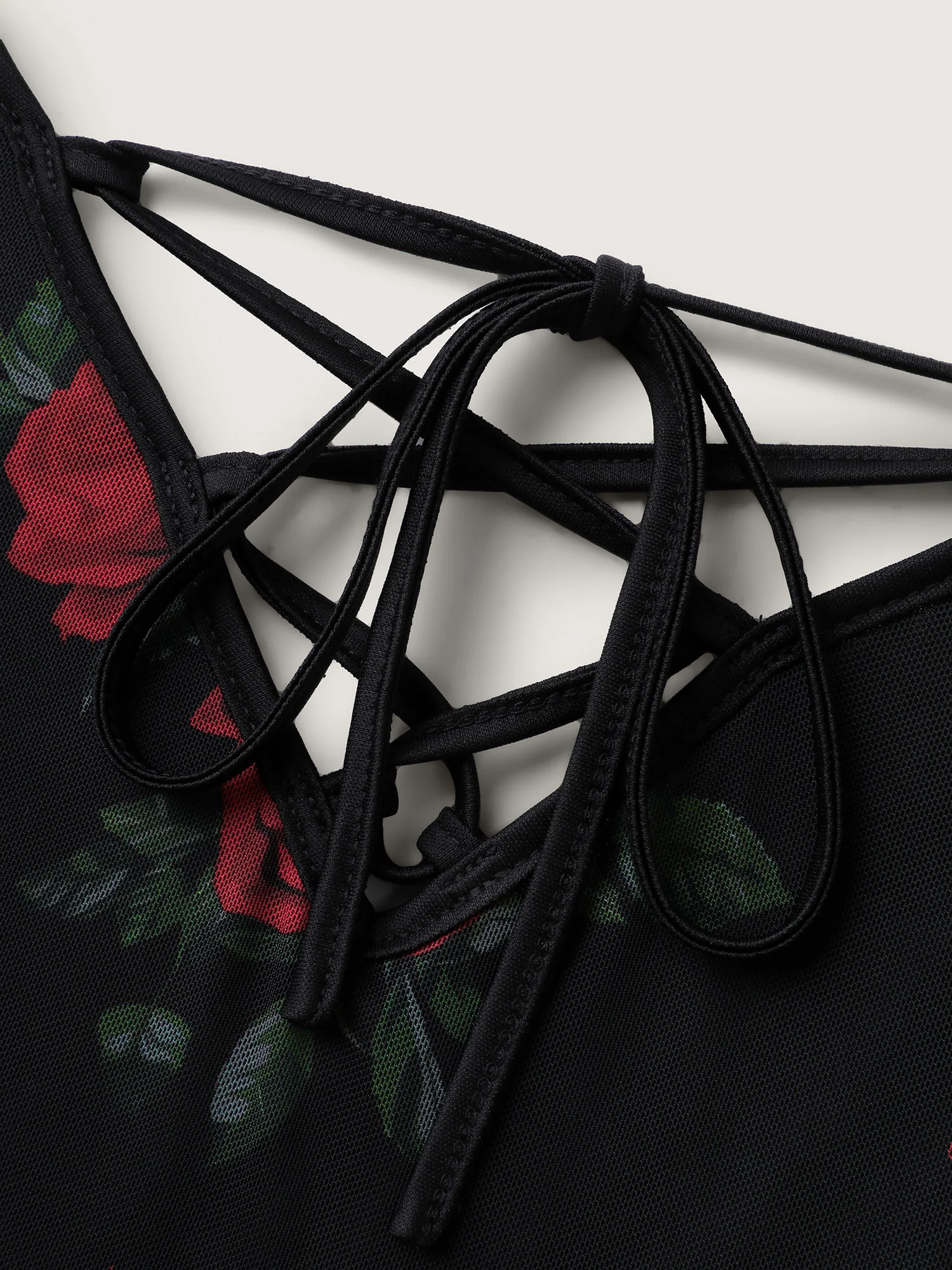 Rose Print Neck-Ties Flowy Sleep Dress
