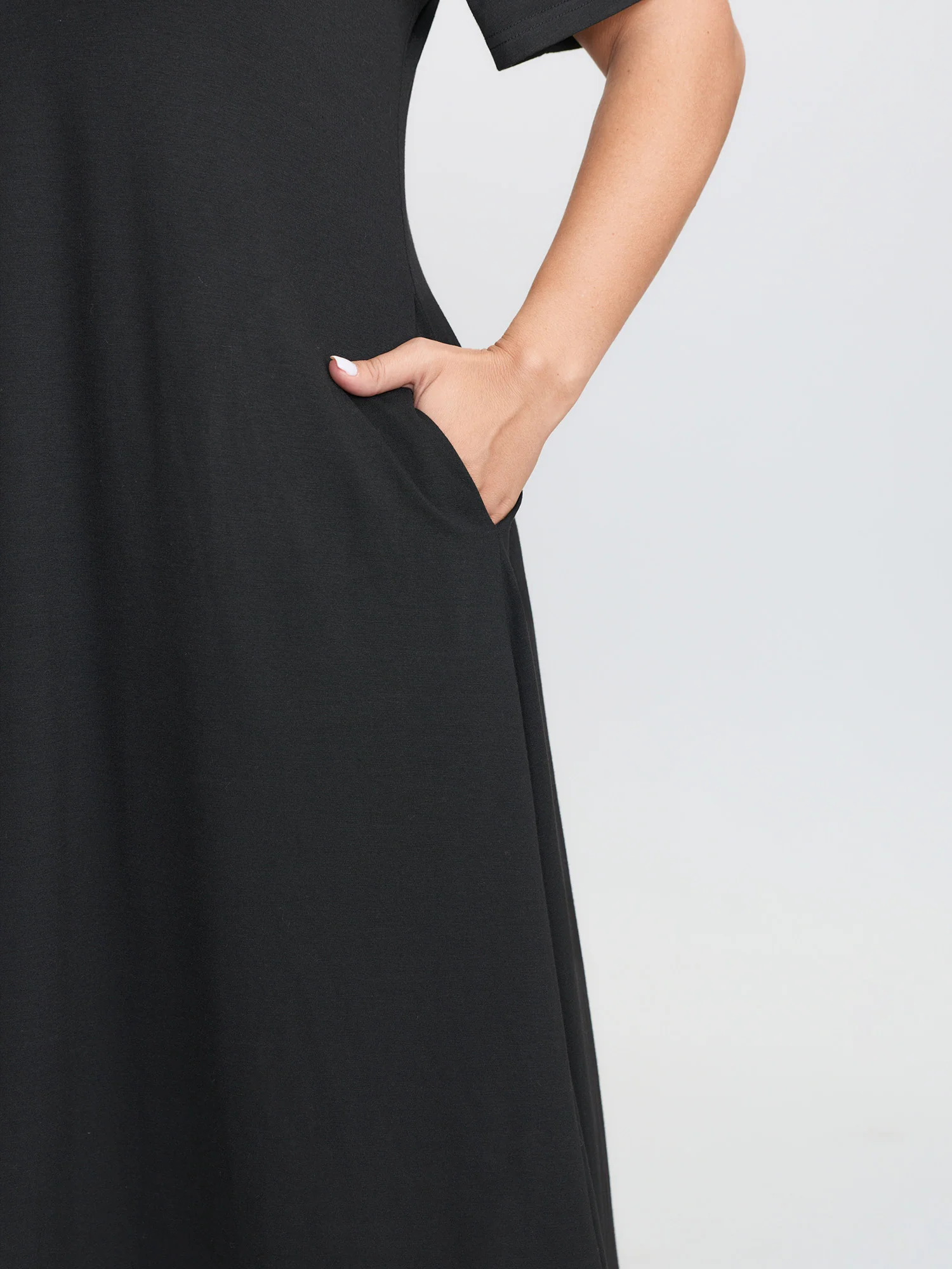 Solid Pocket Cold Shoulder Dress