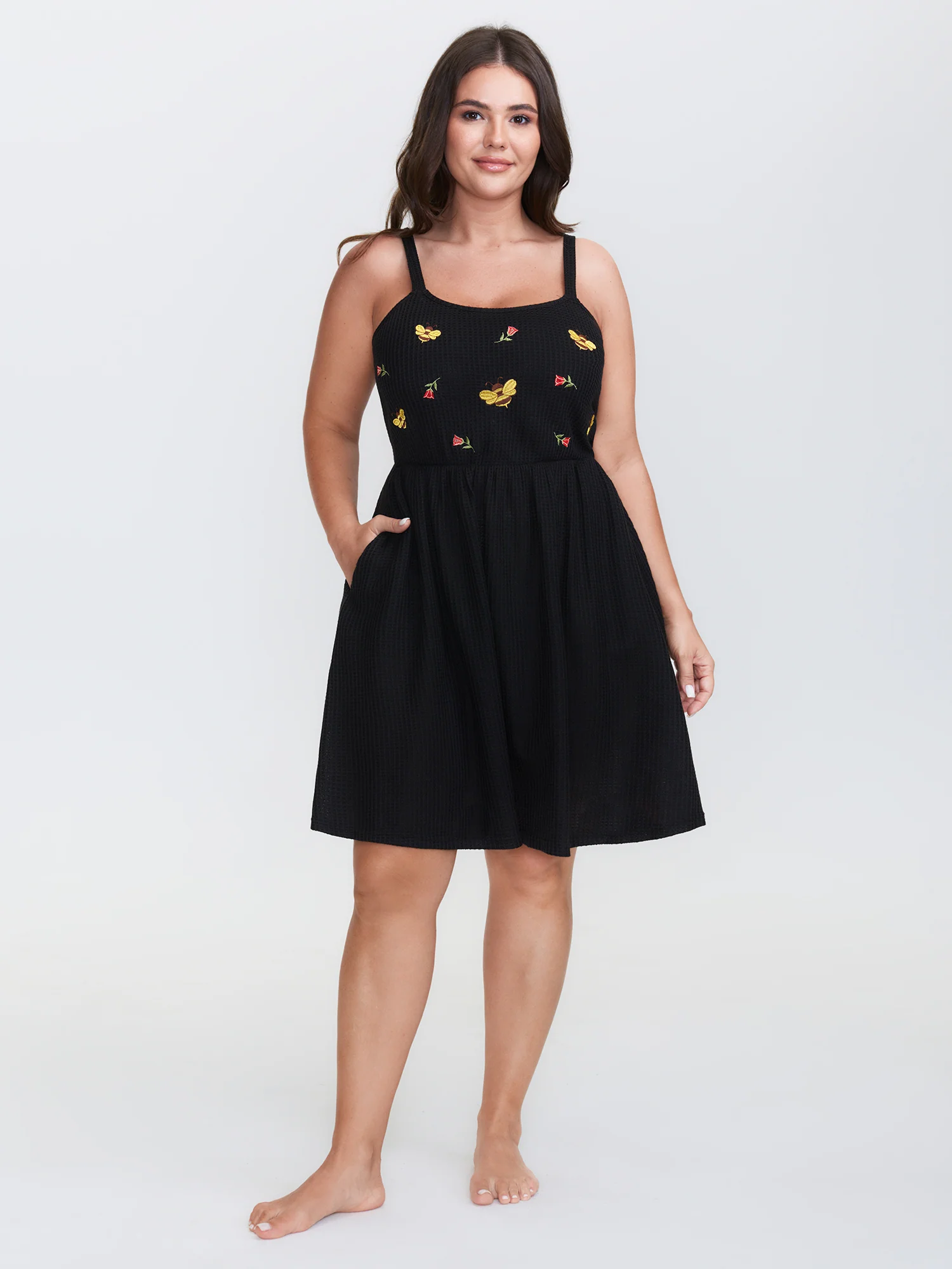 Bee Embroidery Textured Cami Lounge Dress