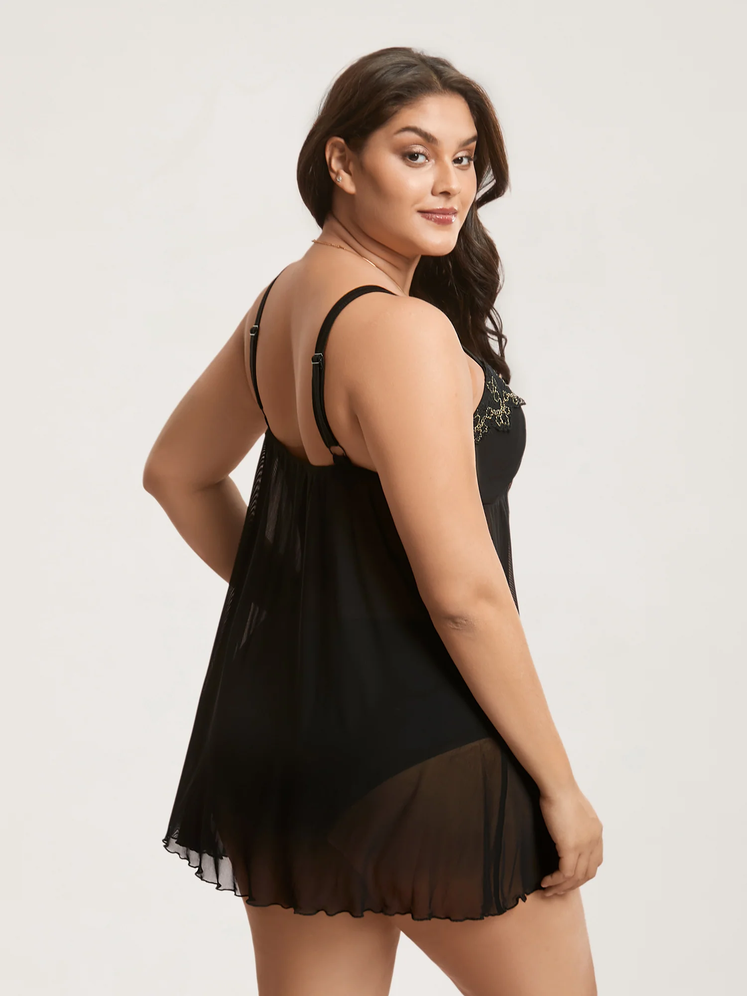 Satin Sheer Lace Adjustable Sleep Dress