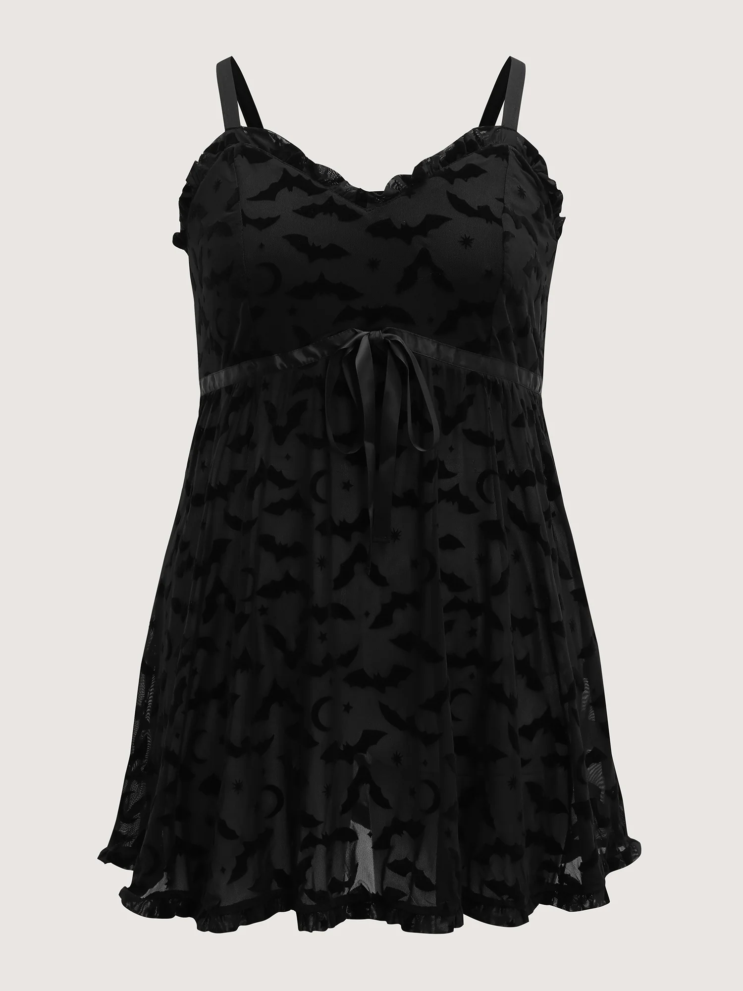 Bat Flocked Mesh Ruffled Sleep Dress