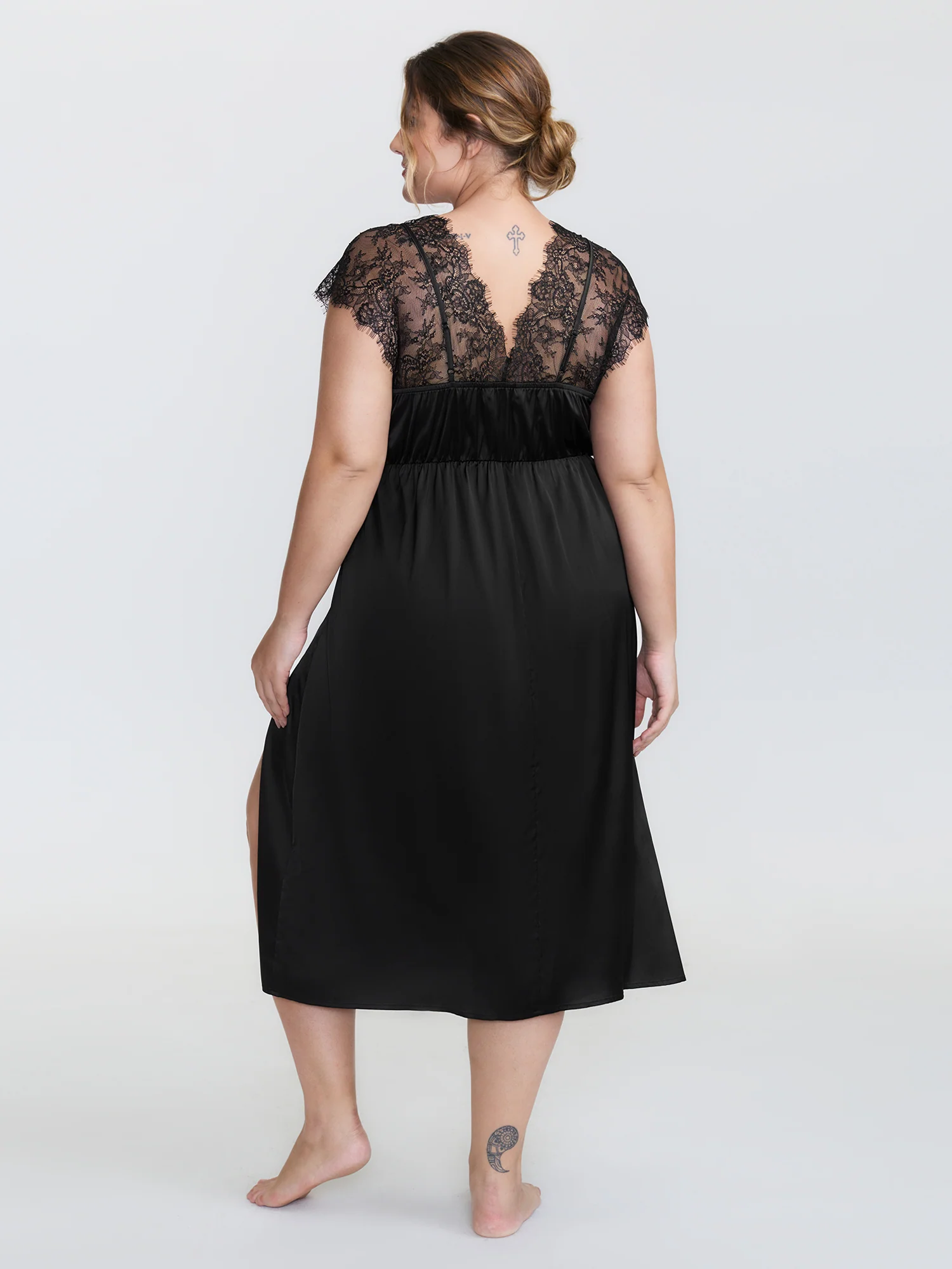 Satin Lace Trim Cut-Out Sleep Dress