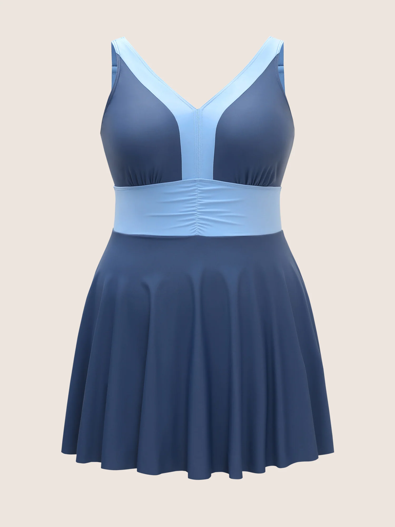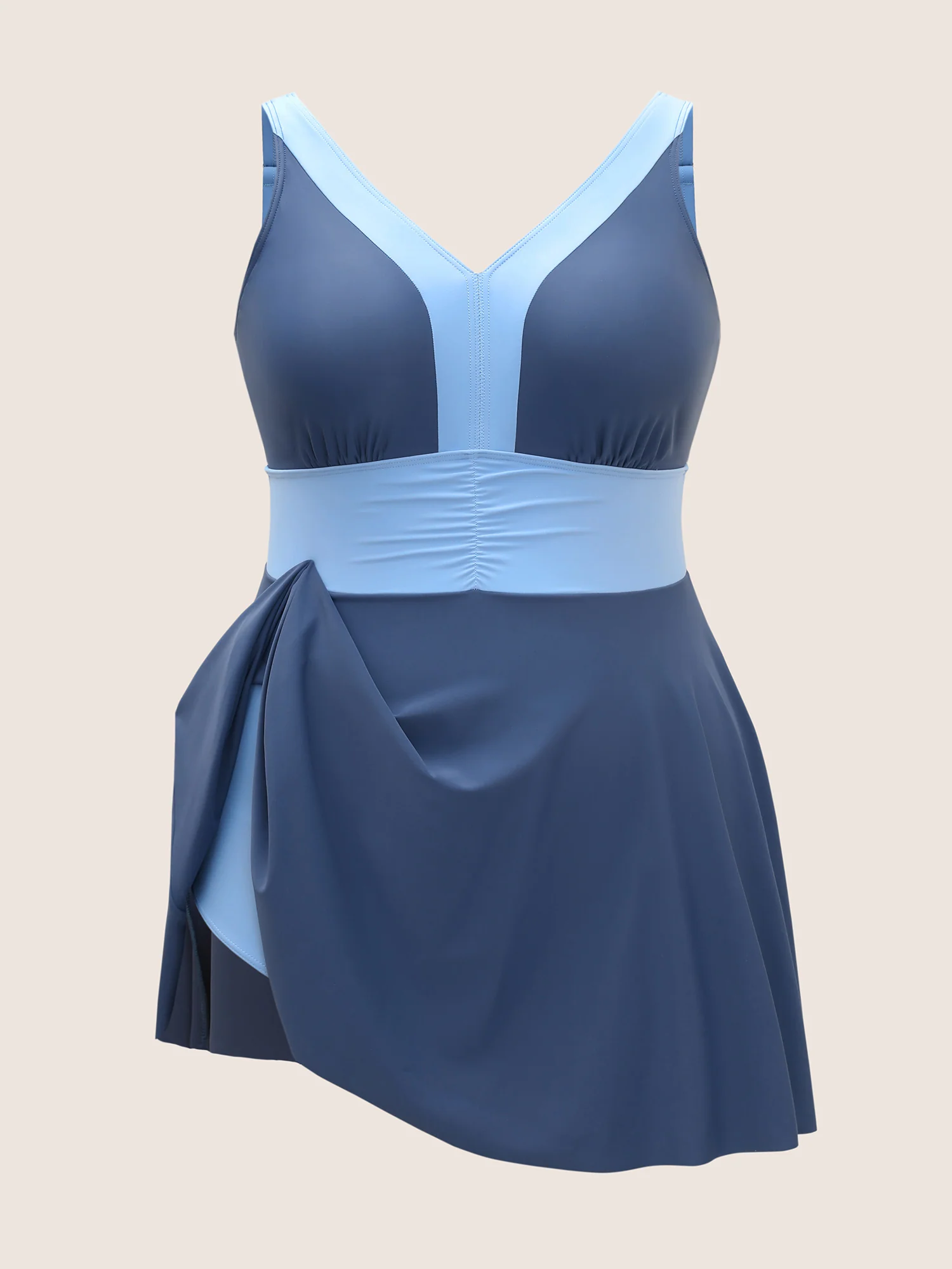 Two Tone Patchwork Gathered Swim Dress