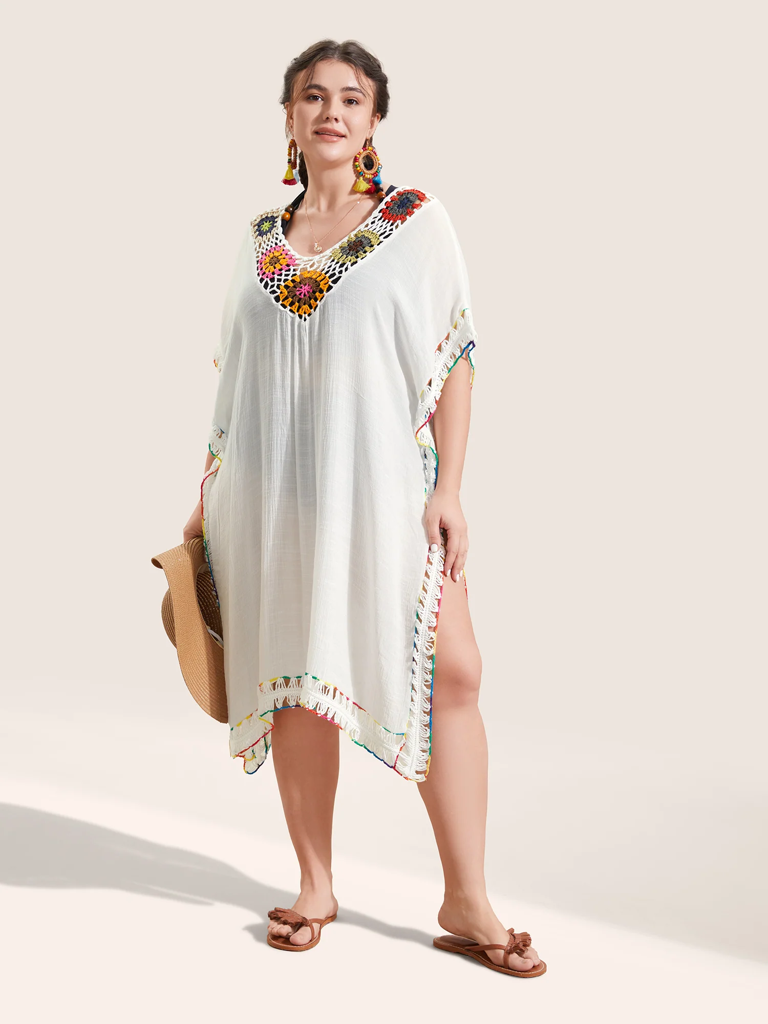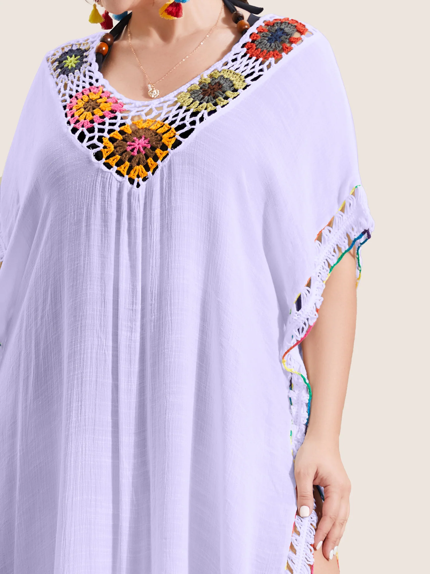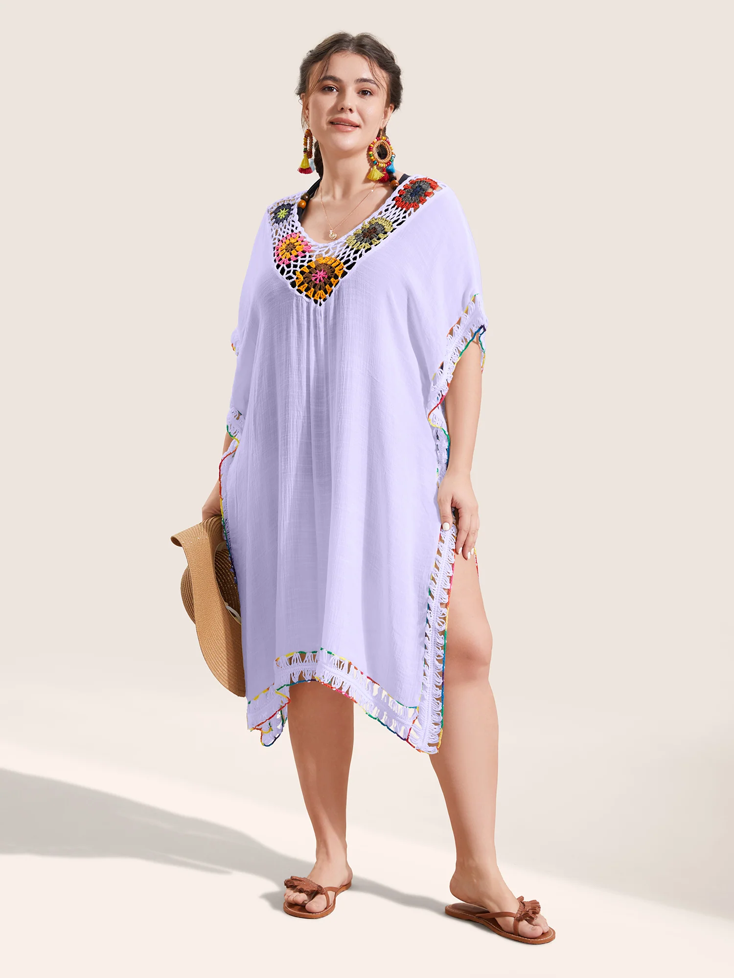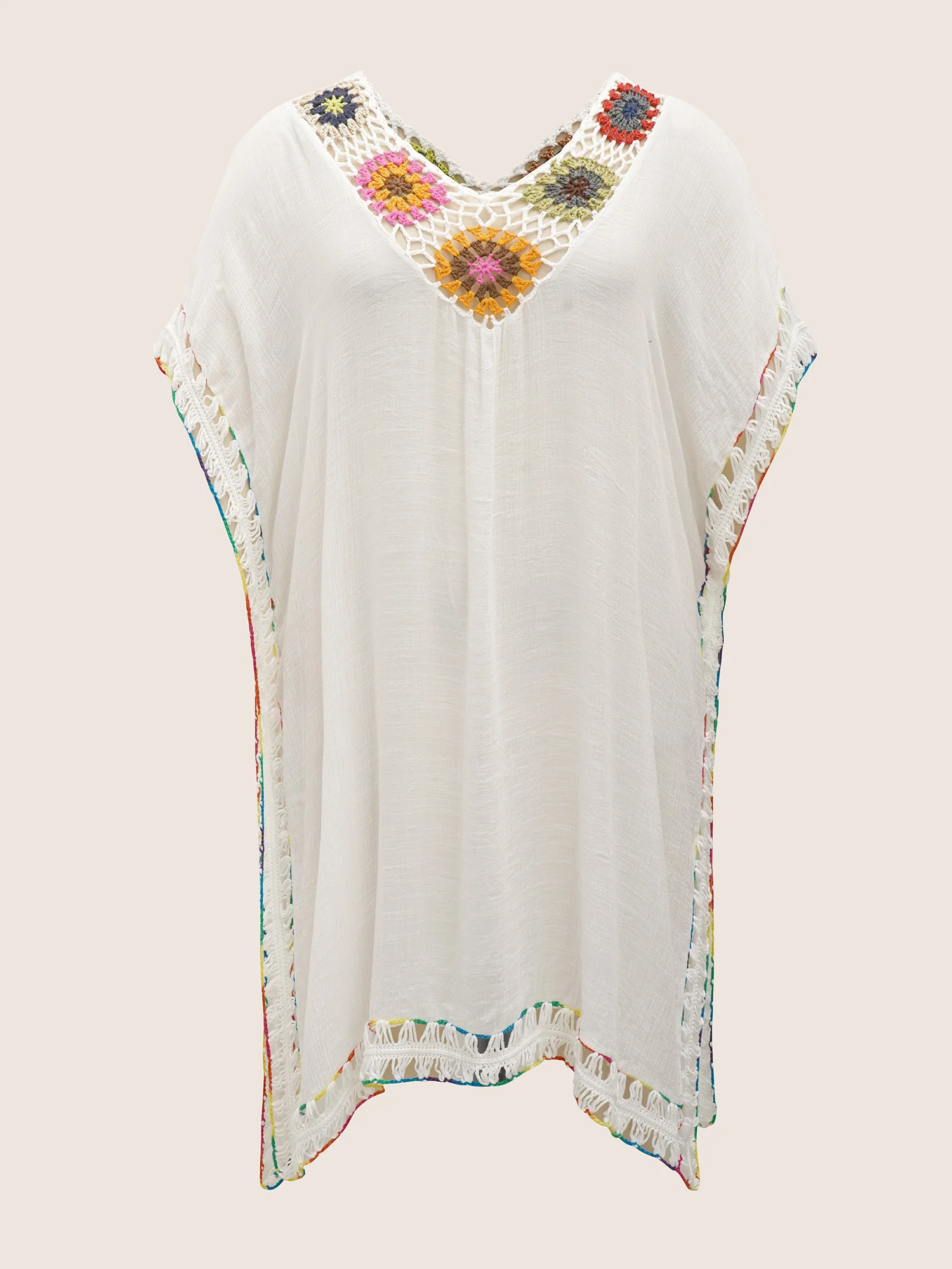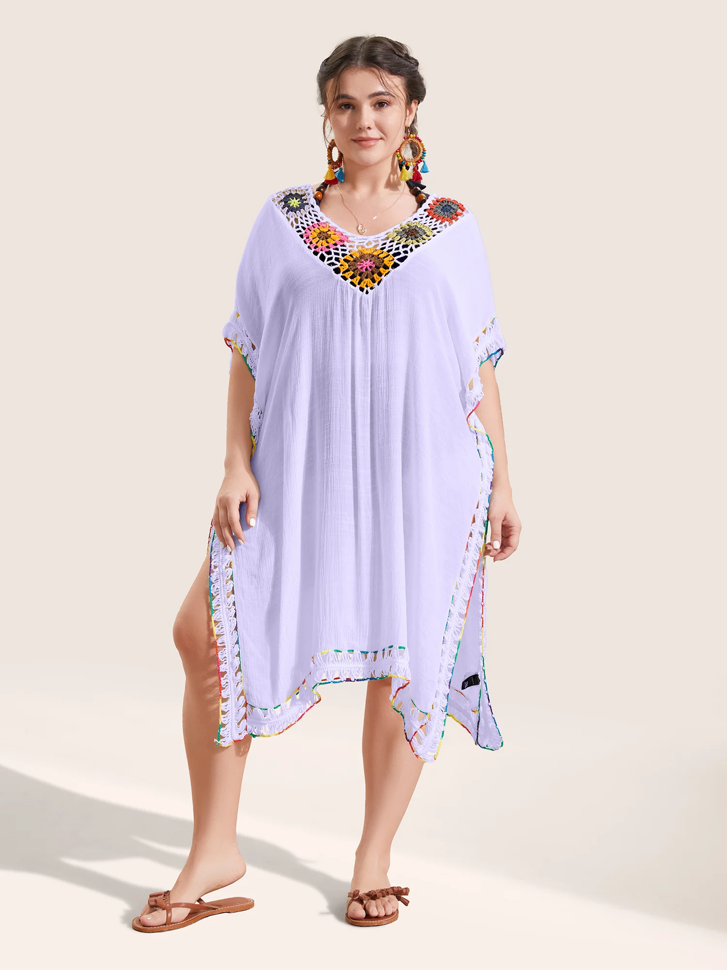 Colored Crochet Slit Hem Swim Cover Up