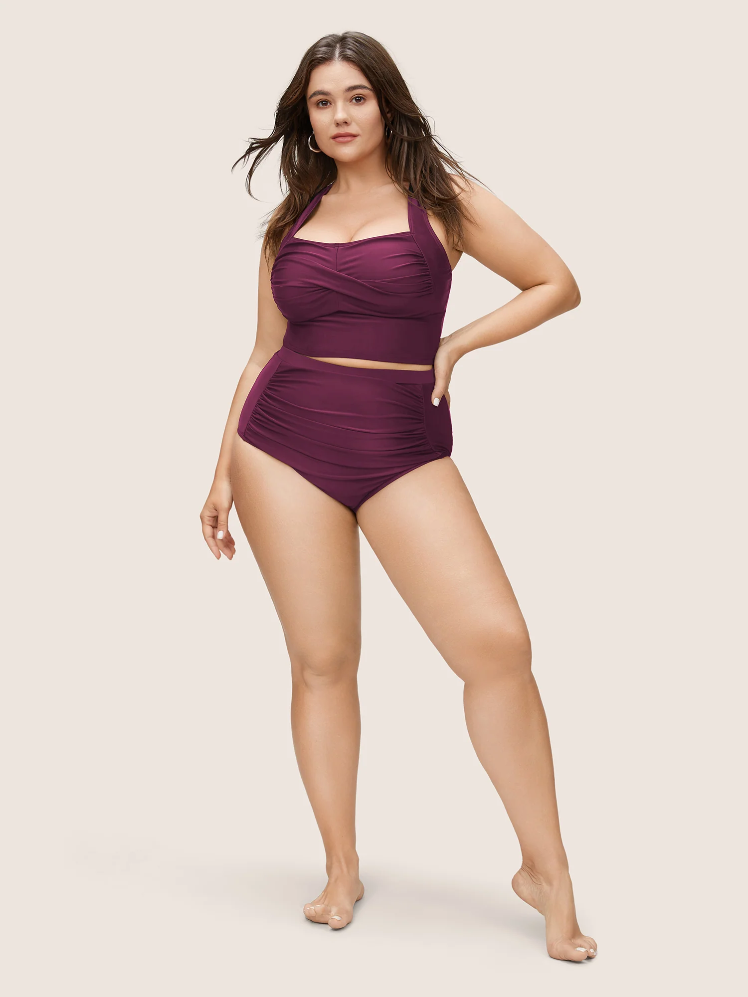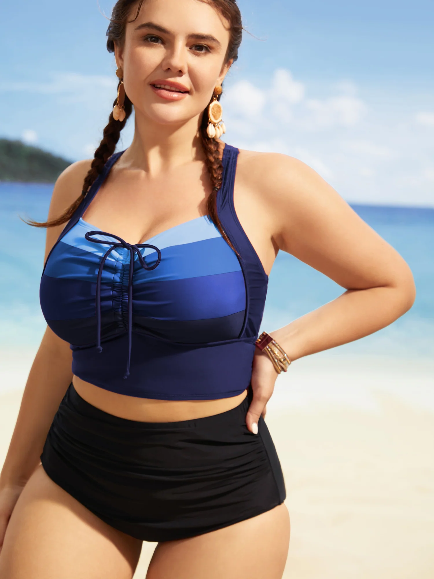 Side Drawstrings Plain Swim Top