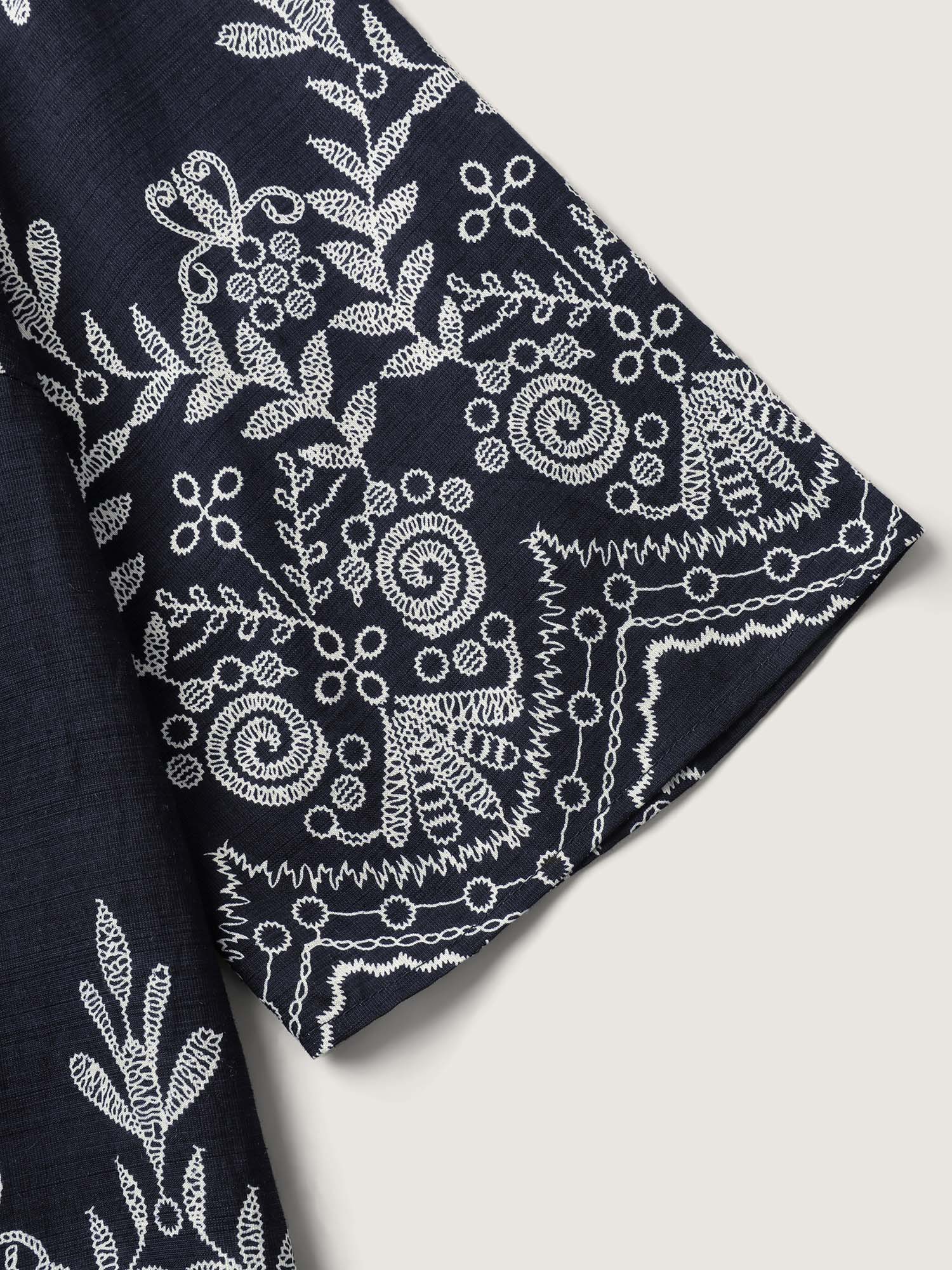 Boho Print Lace Neck Blouse