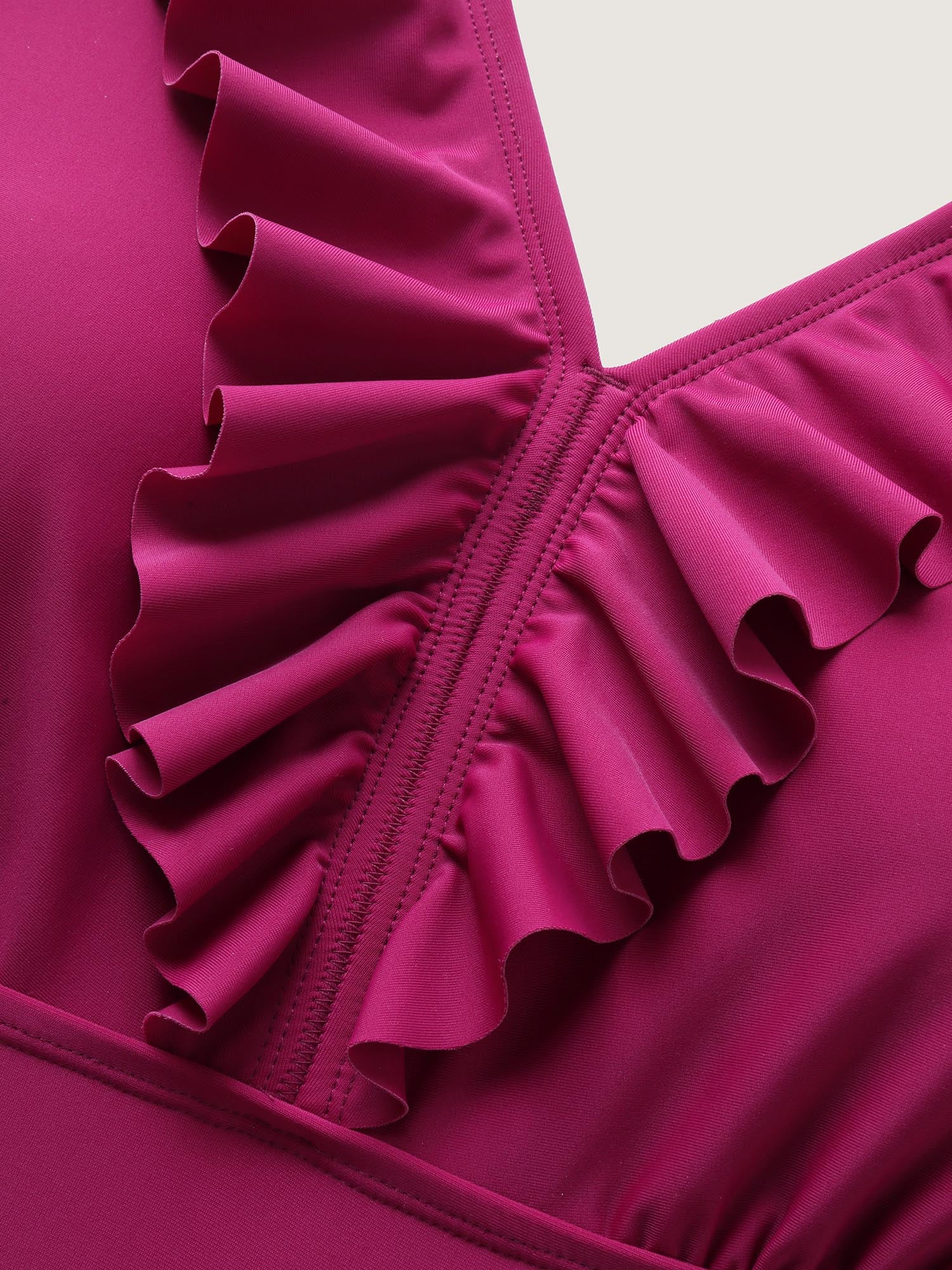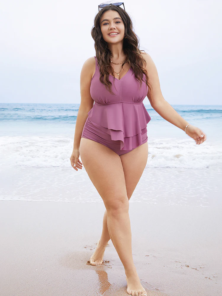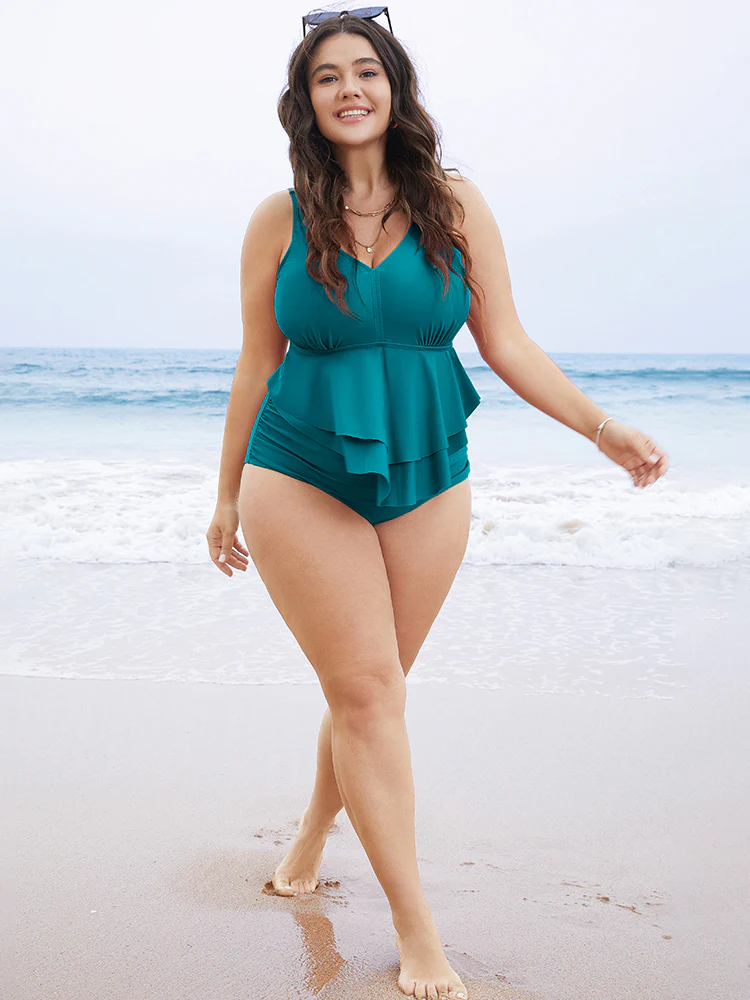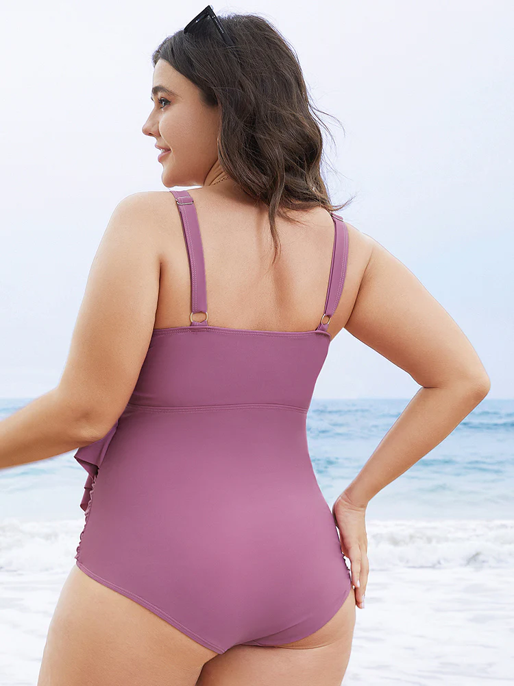 Solid Sculpt Waist Patchwork Ruffle Tiered One Piece Swimsuit