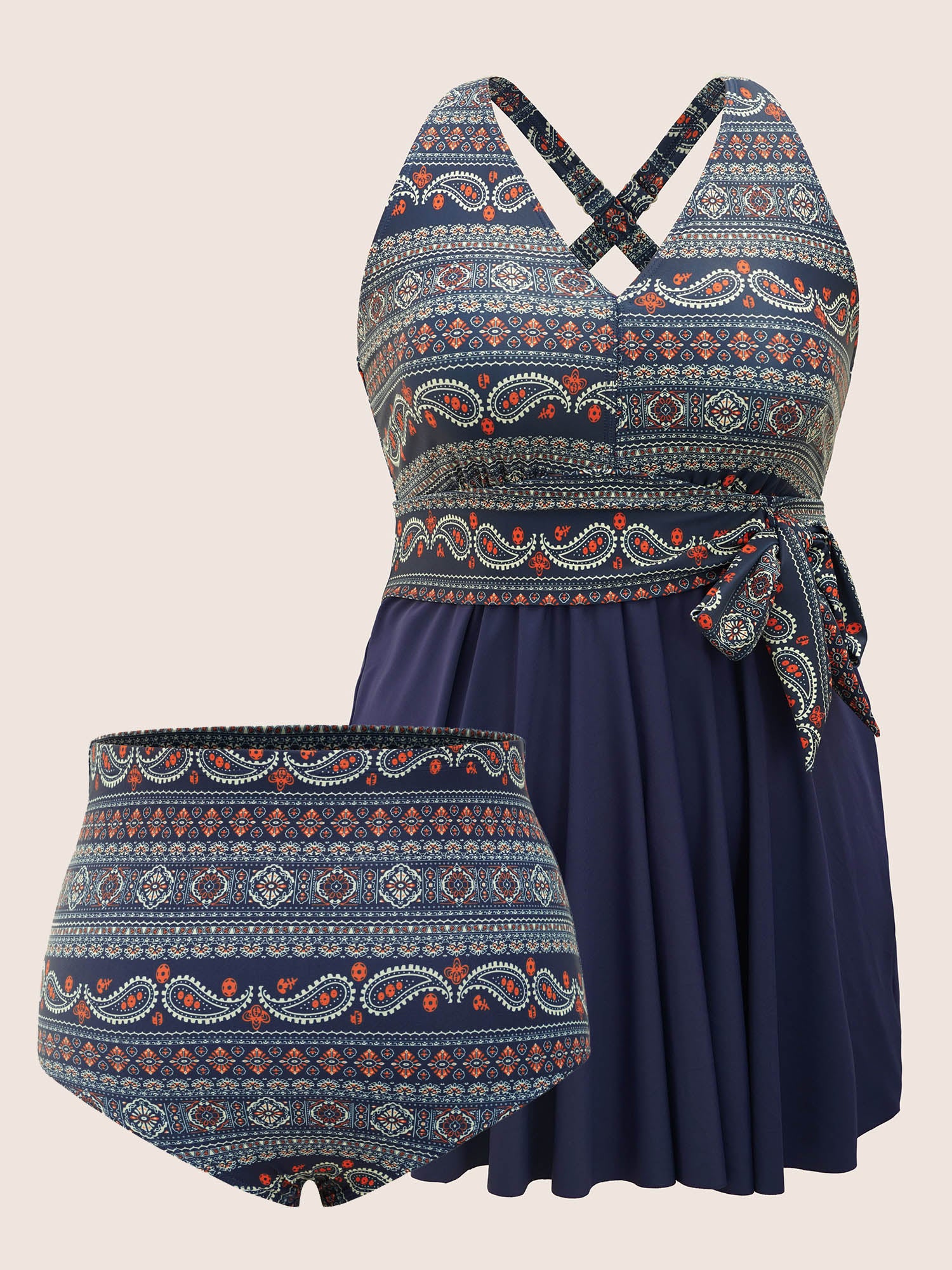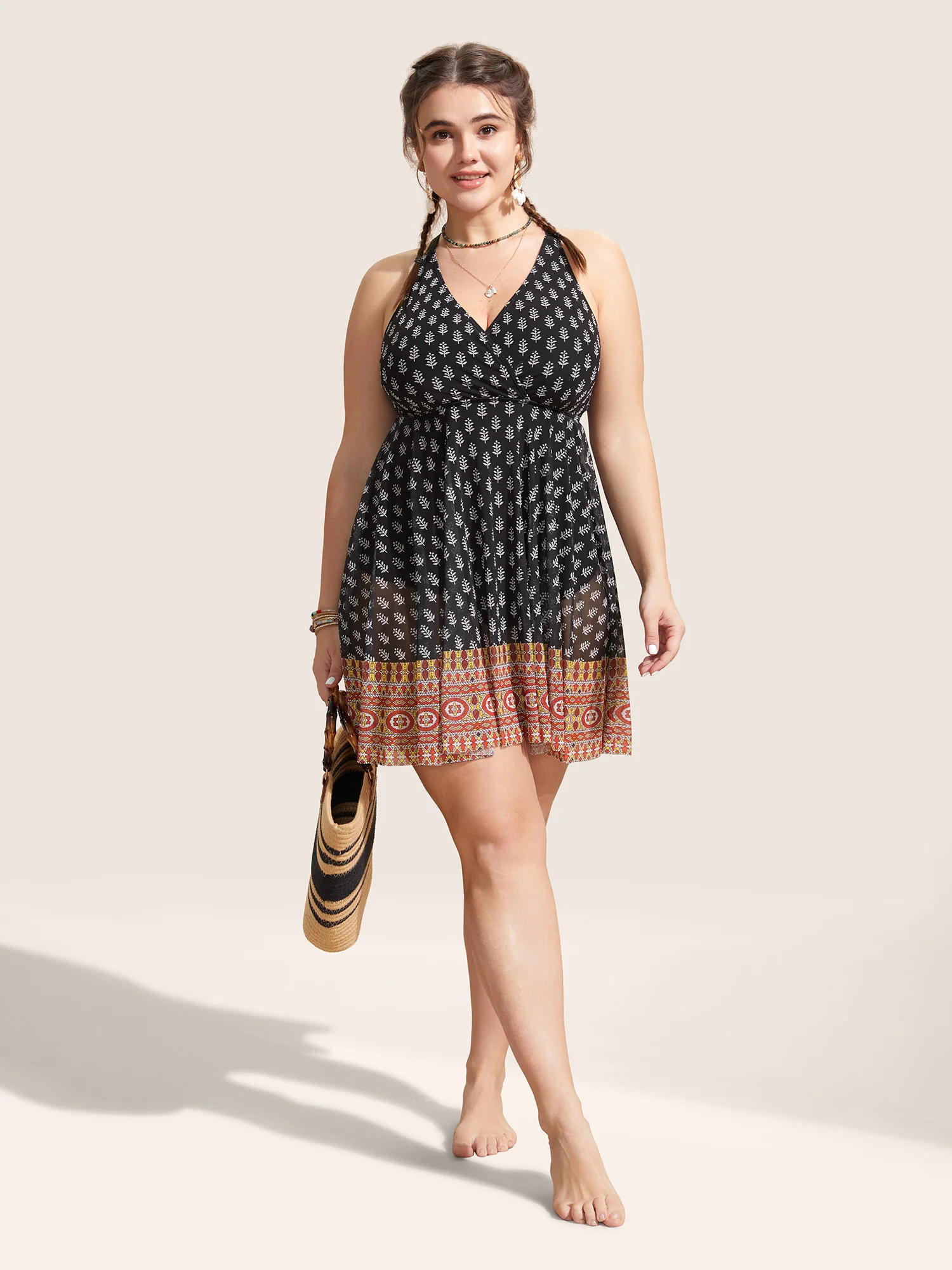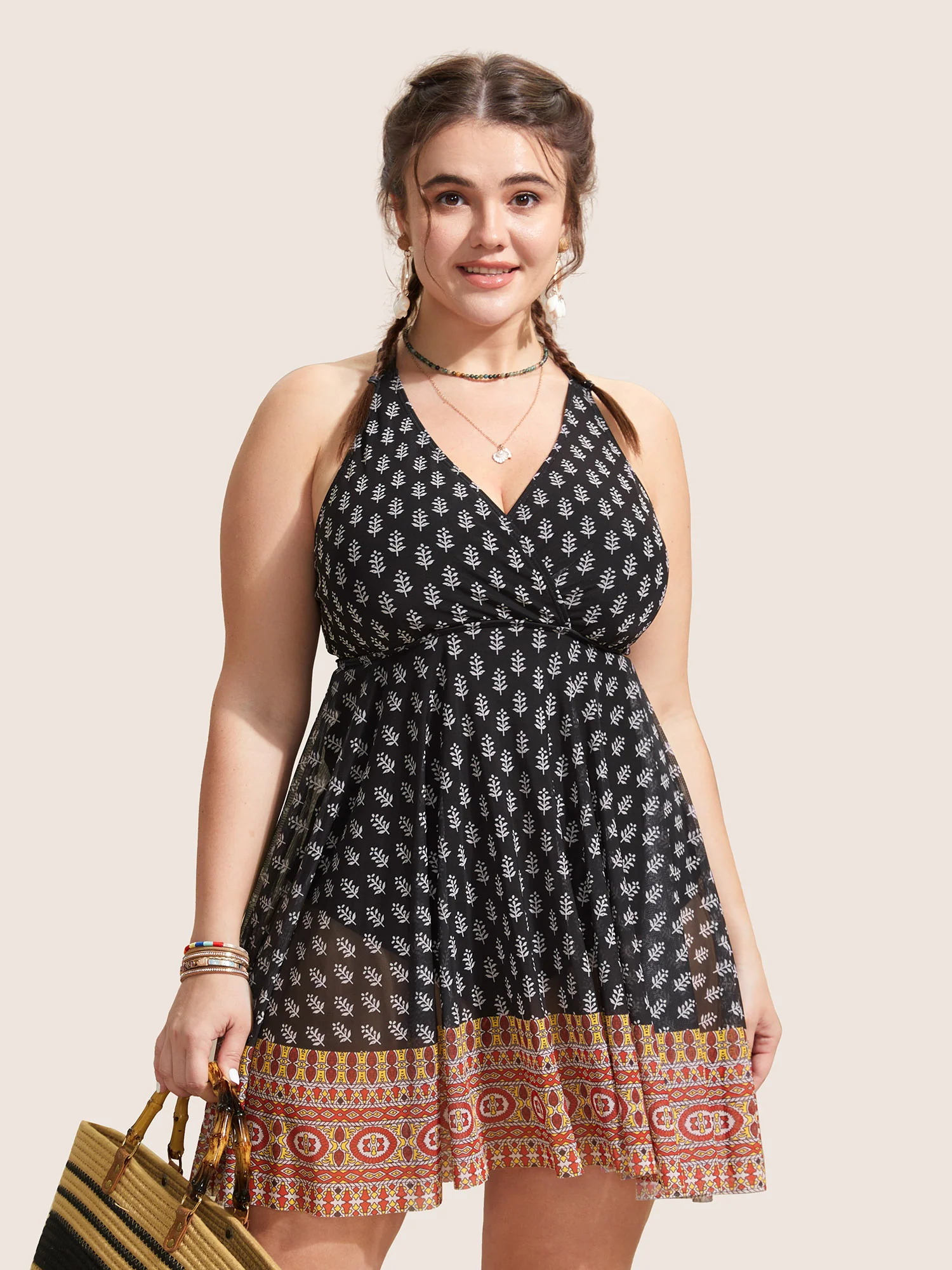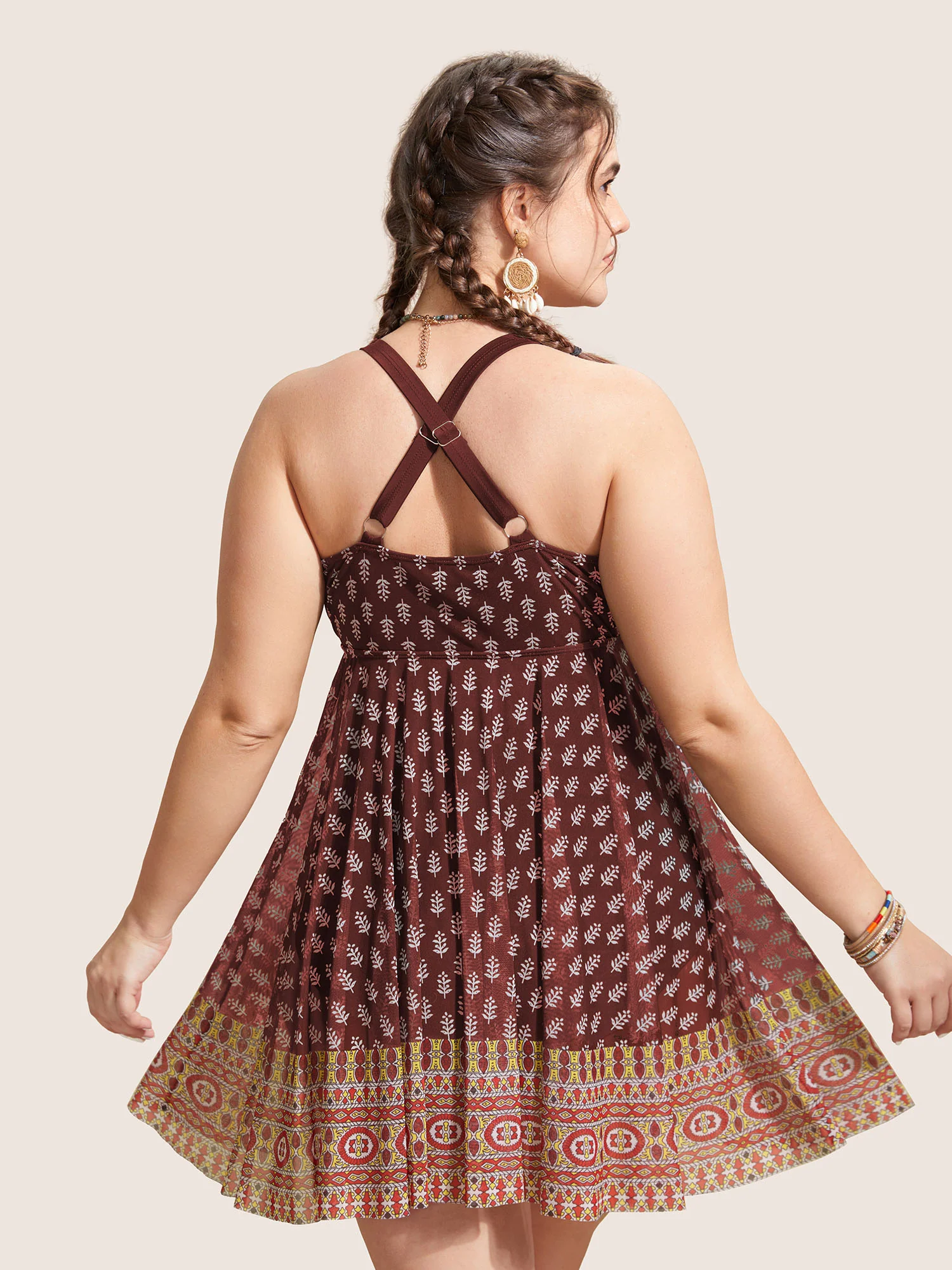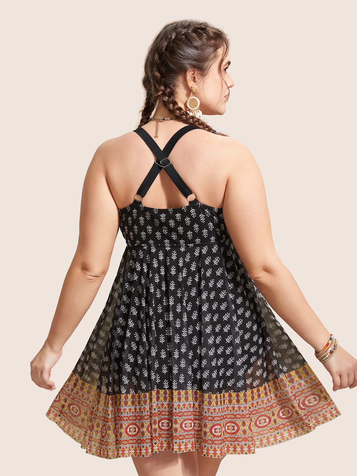 Boho Print Twist Front Swim Dress