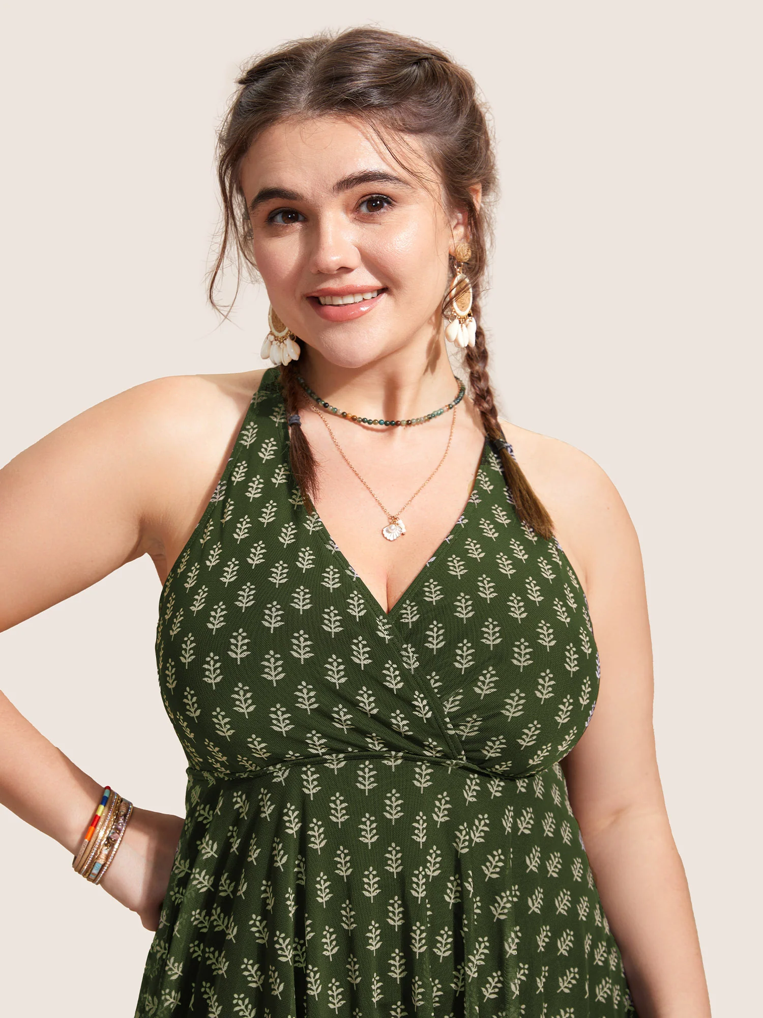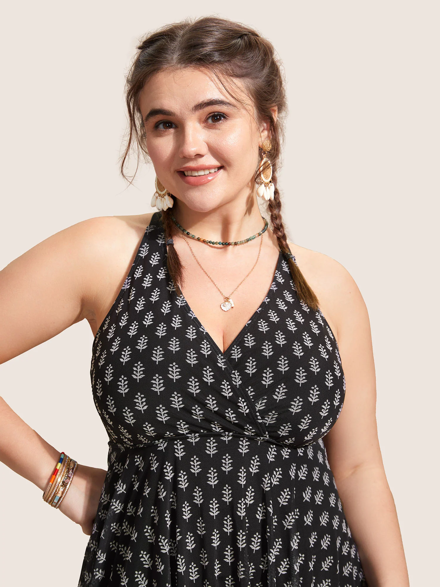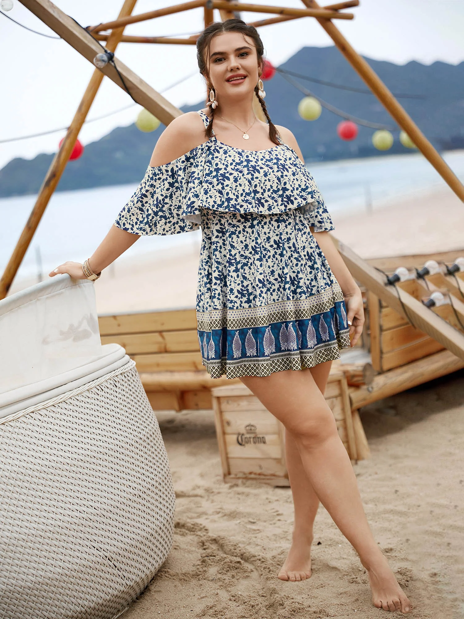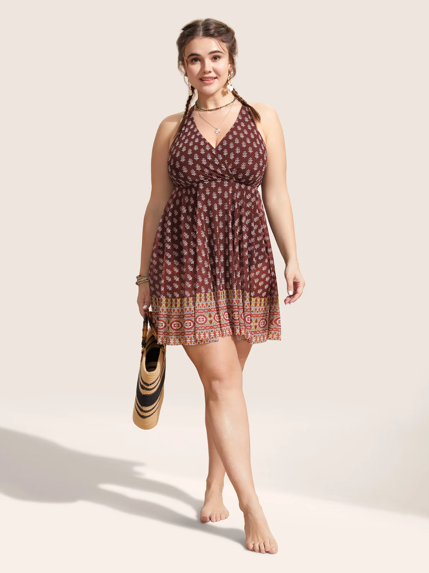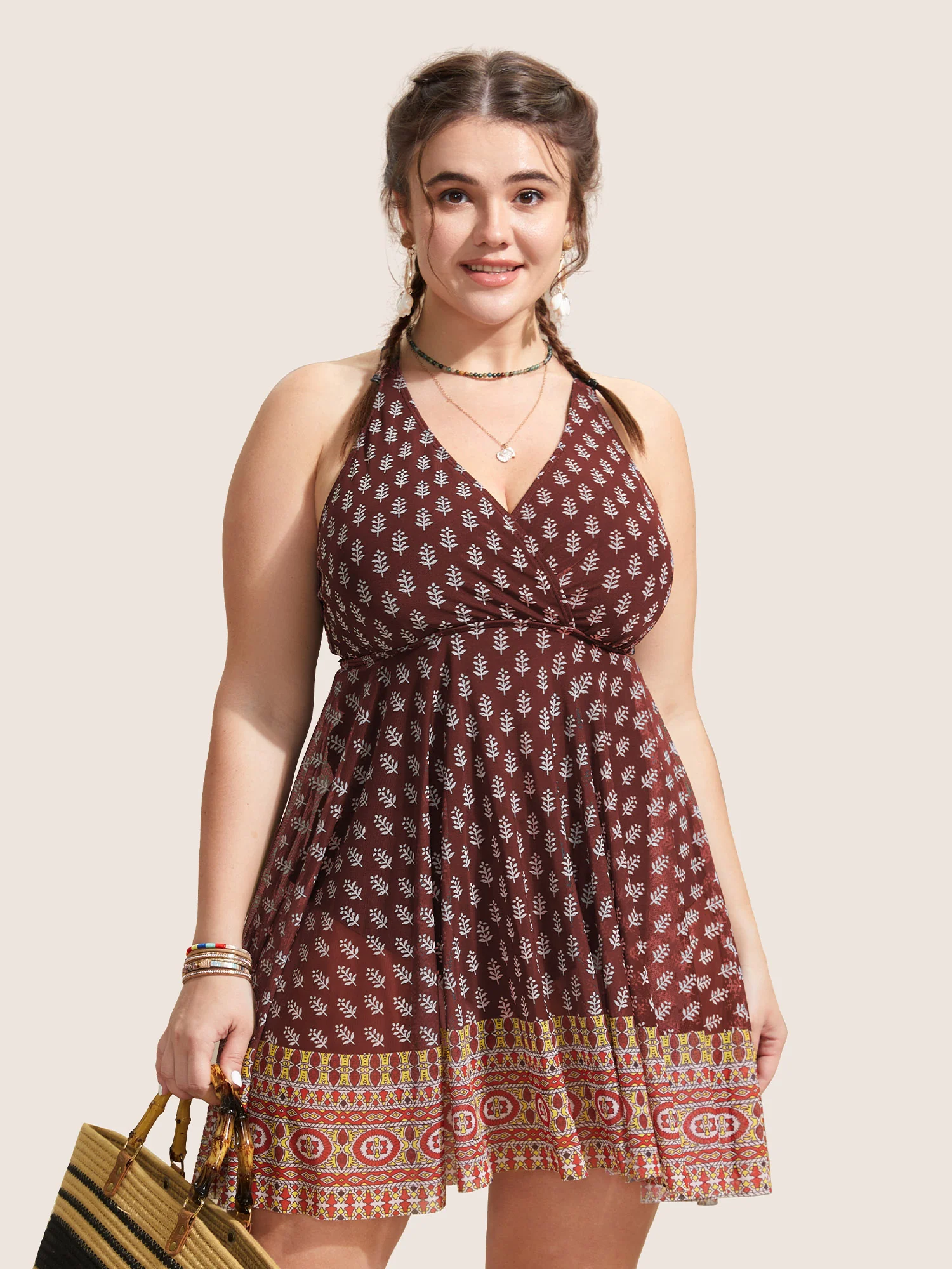 Boho Print Twist Front Swim Dress