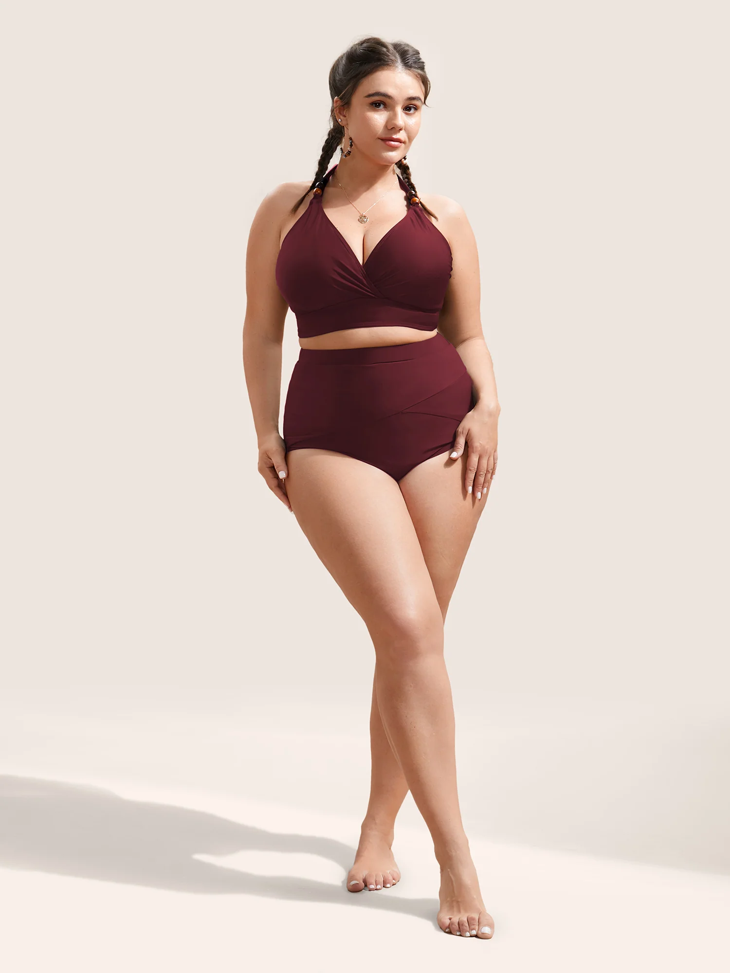 Plain Textured Wrap Tie Knot Swim Top