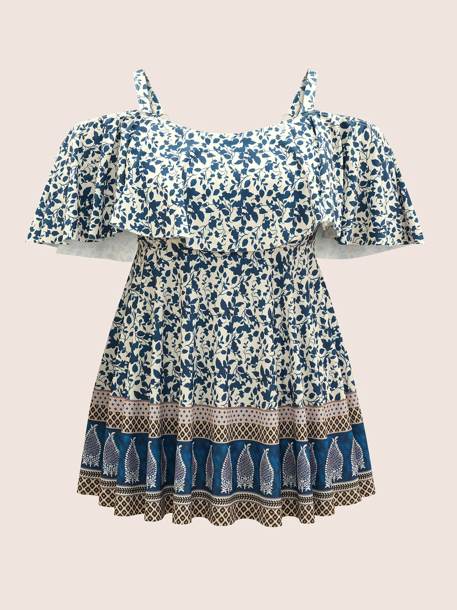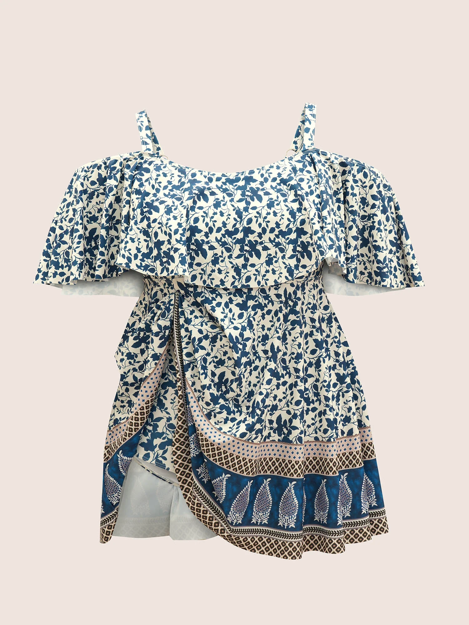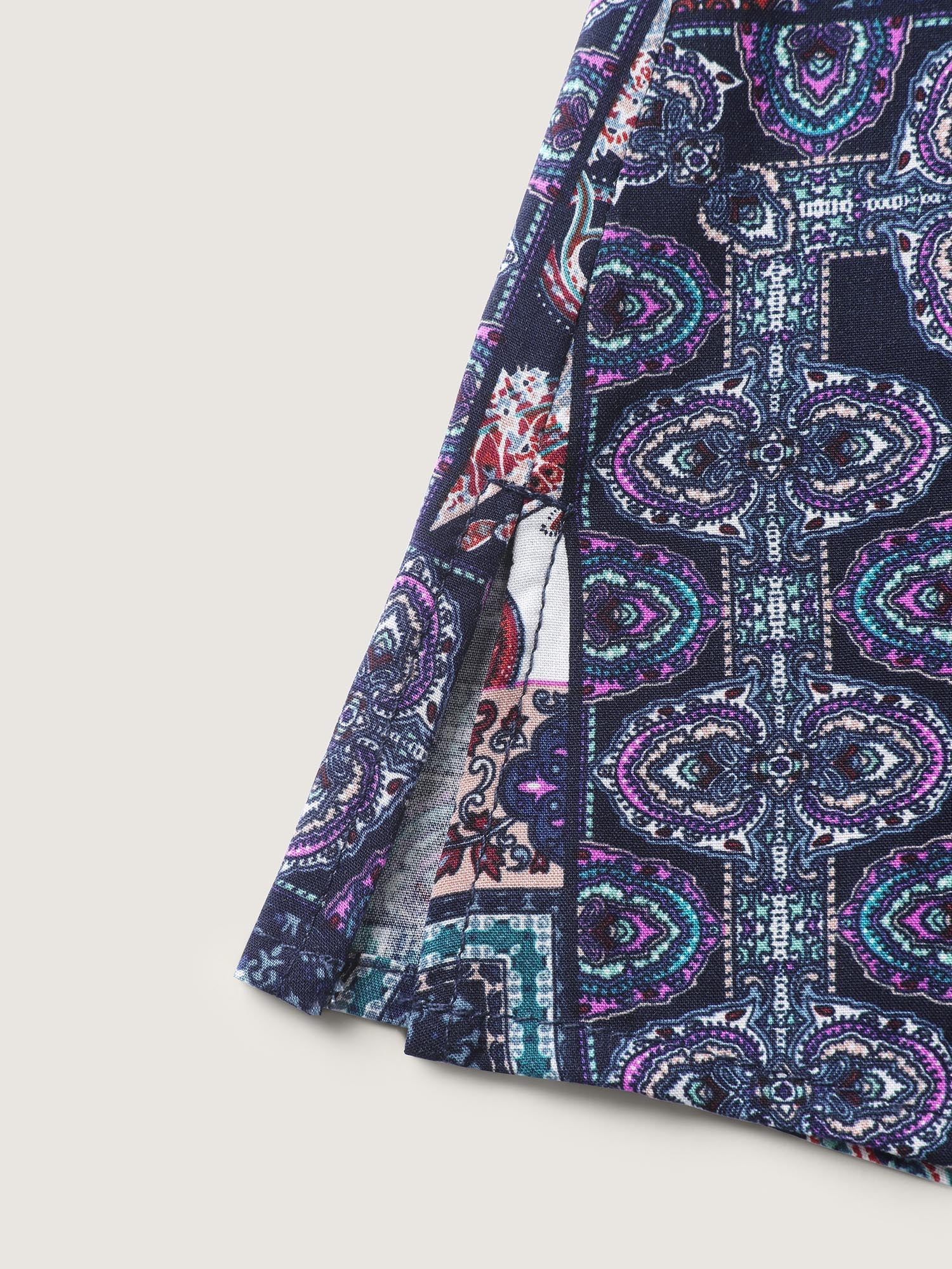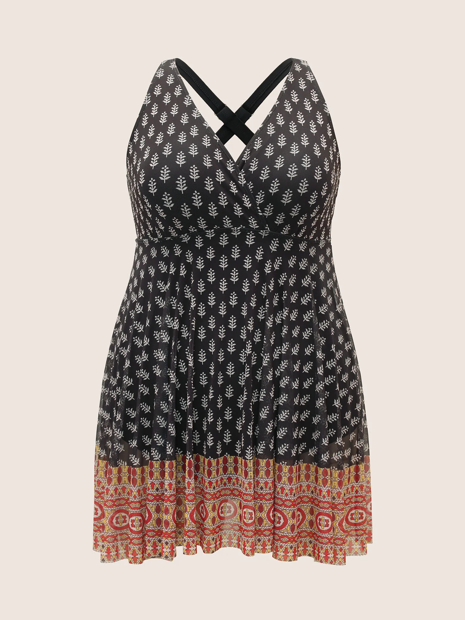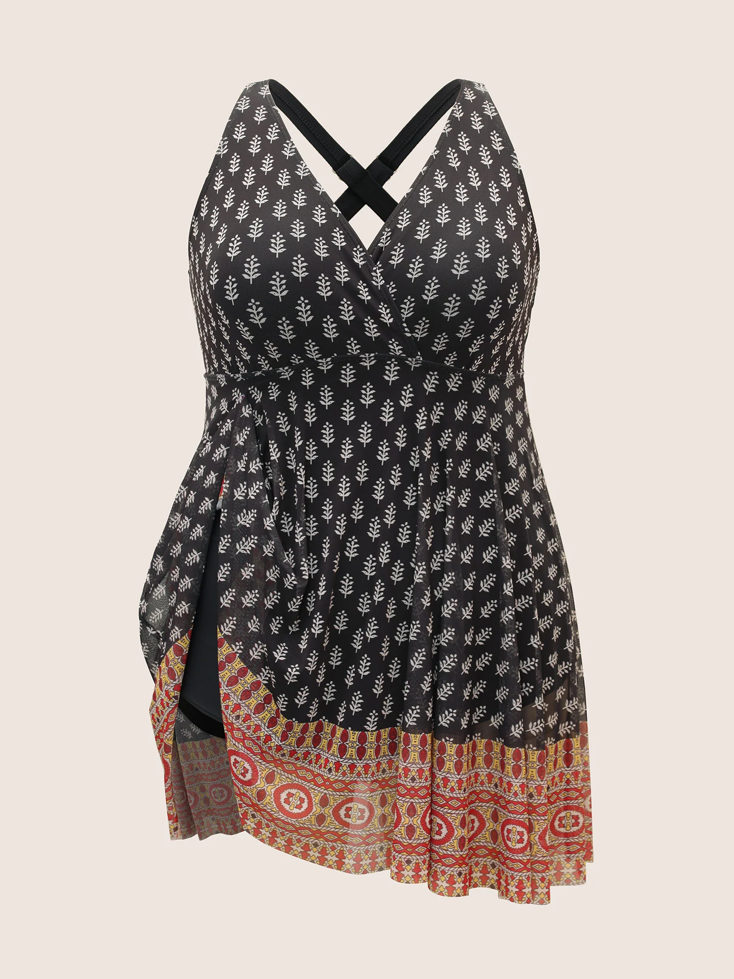 Overlap Collar Boho Print Patchwork Swim Dress