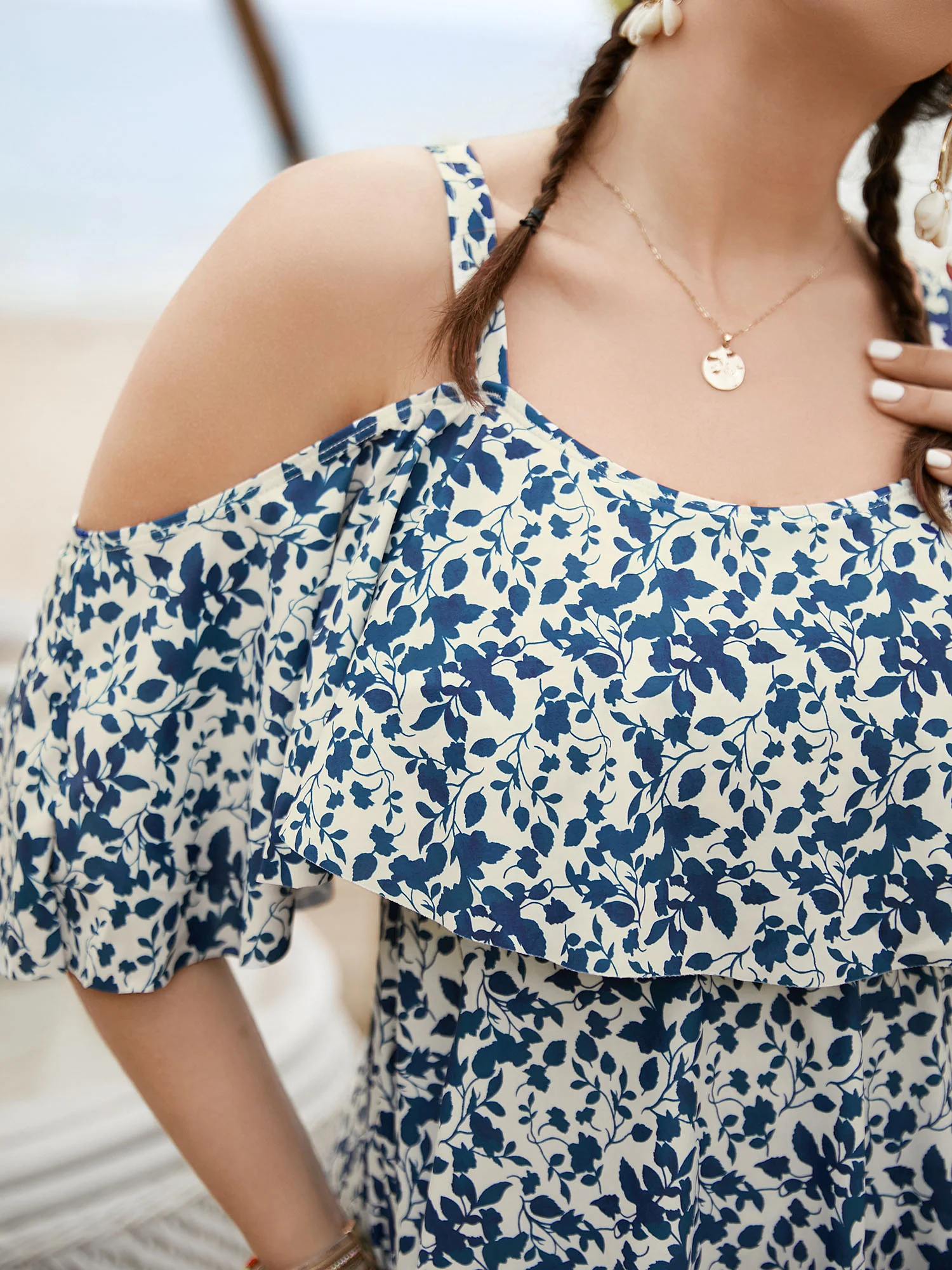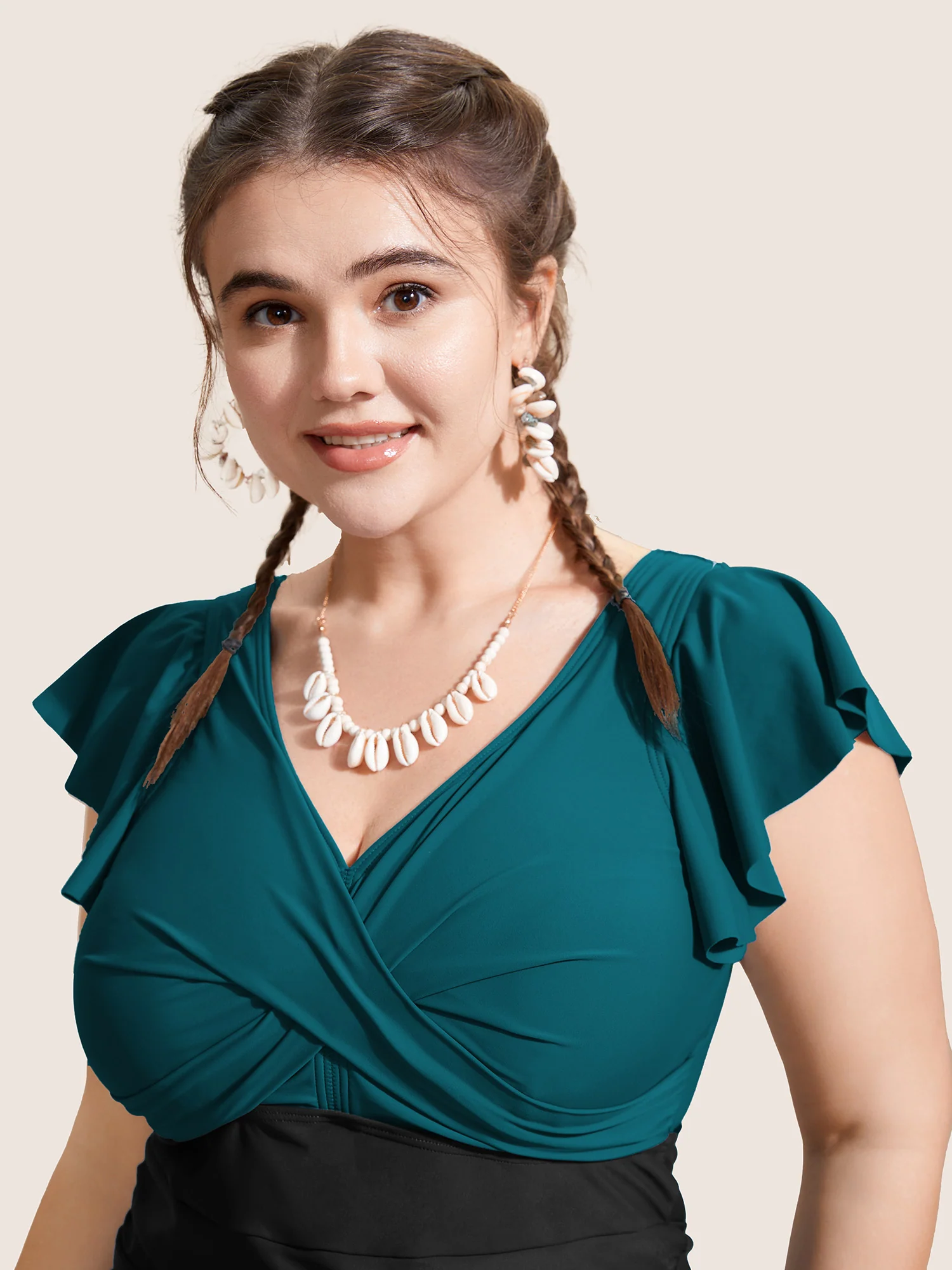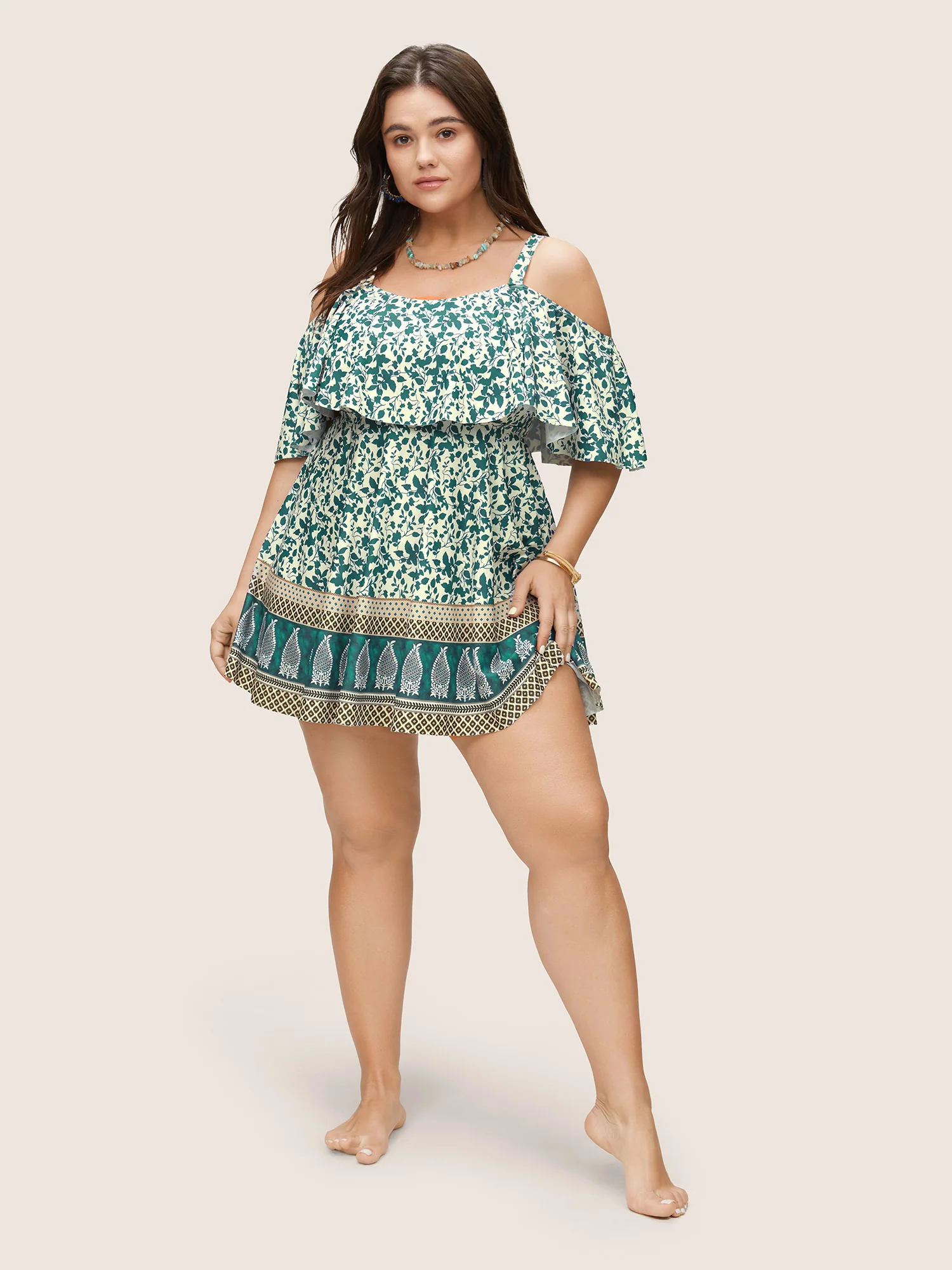 Lotus Leaf Design Flowy Swim Top