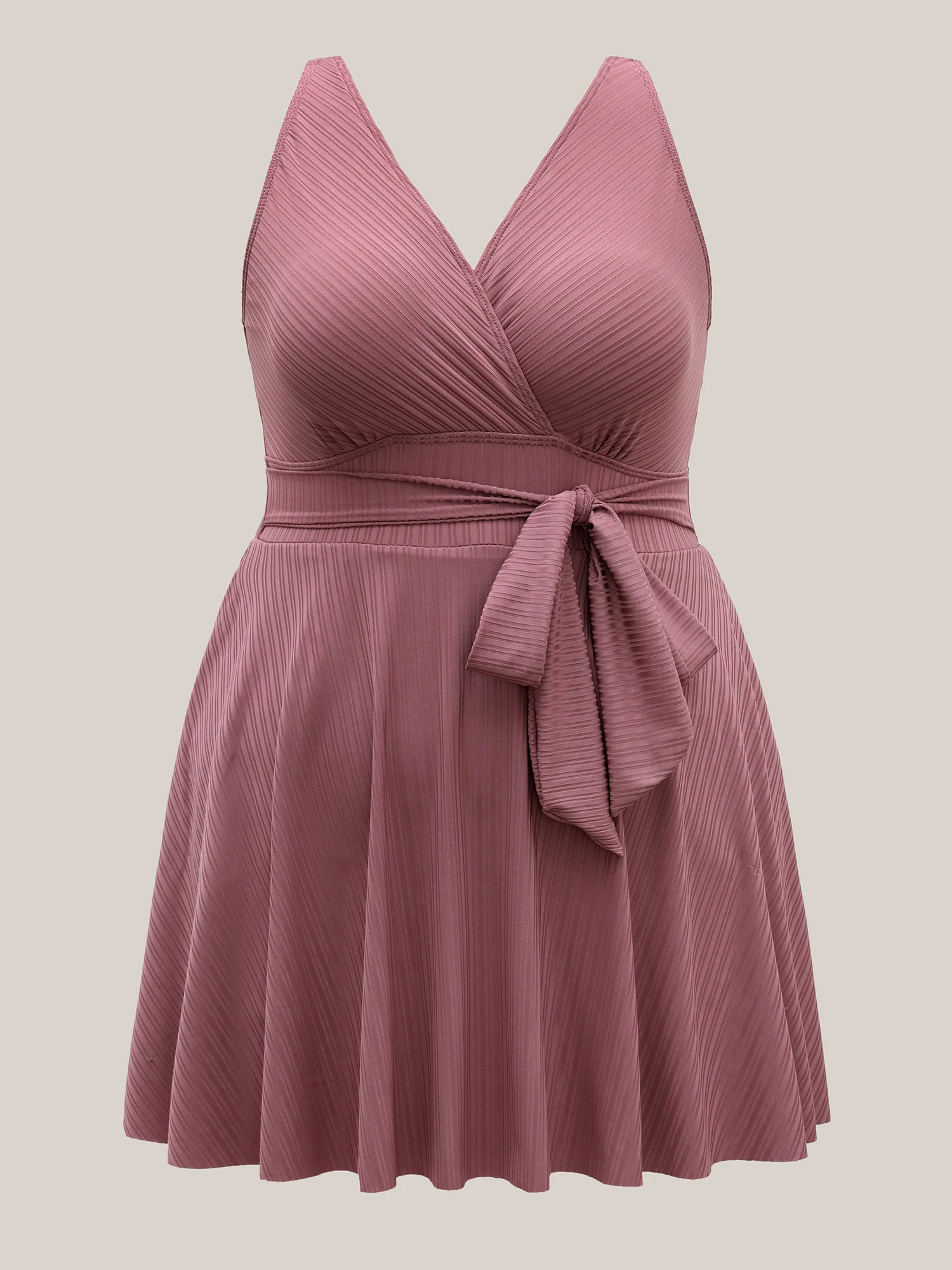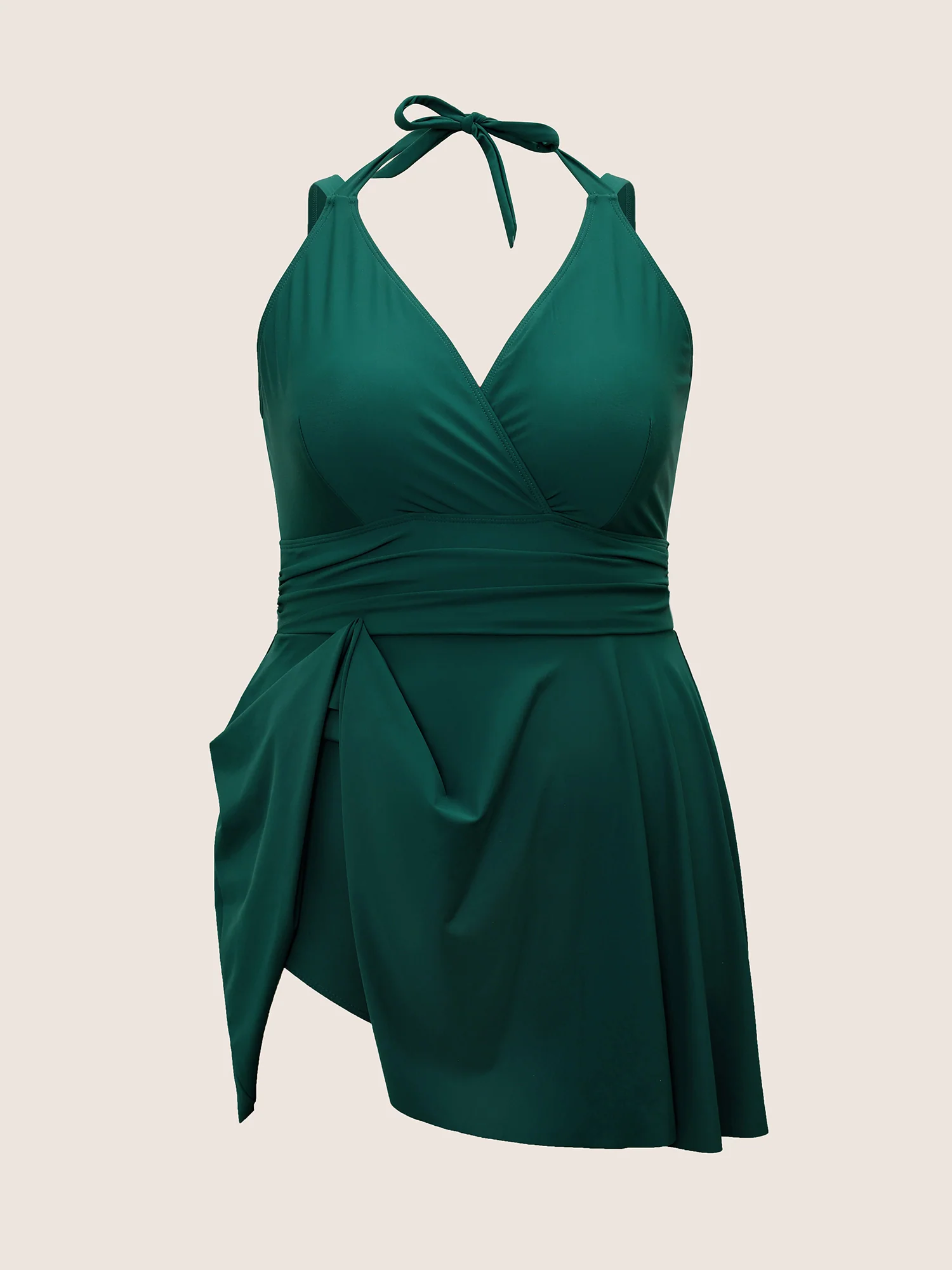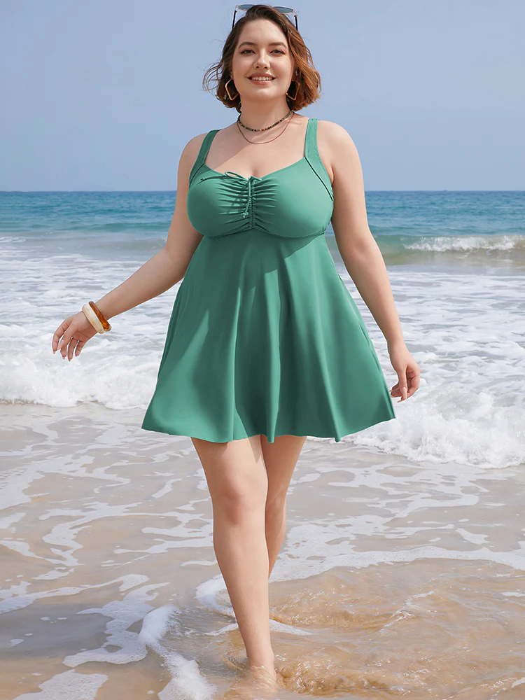Anti-Float Tie Twist Solid Swim Dress