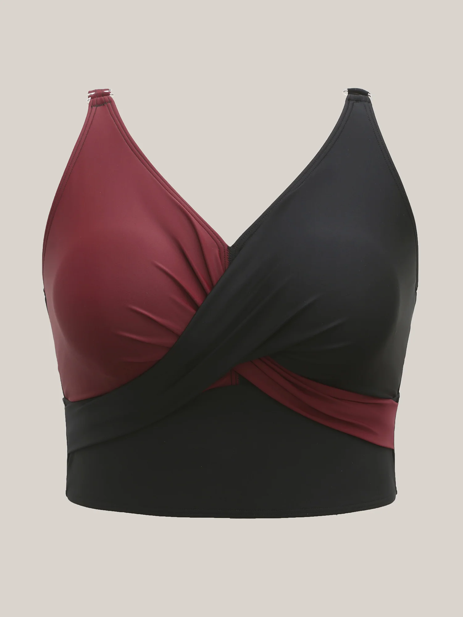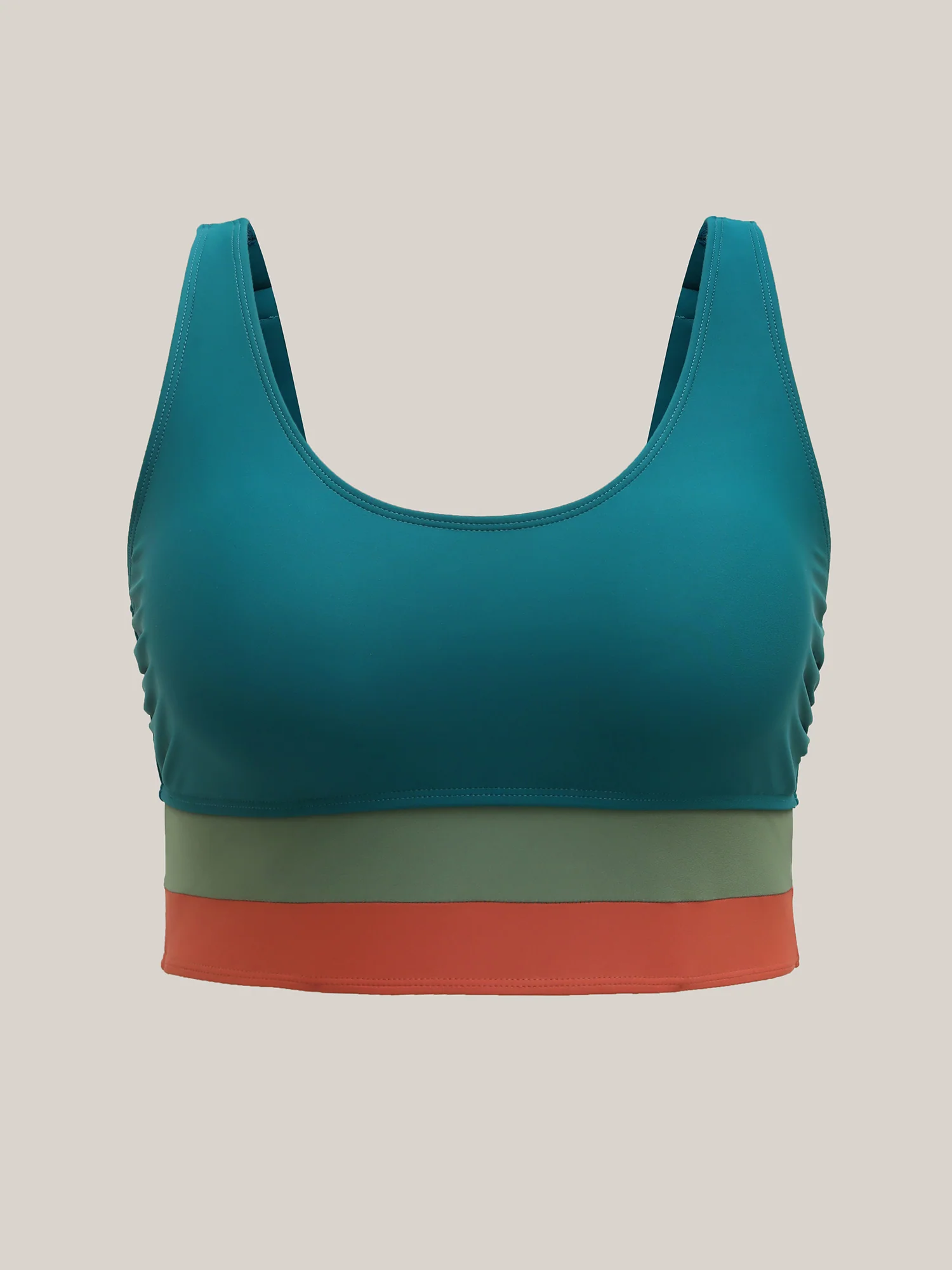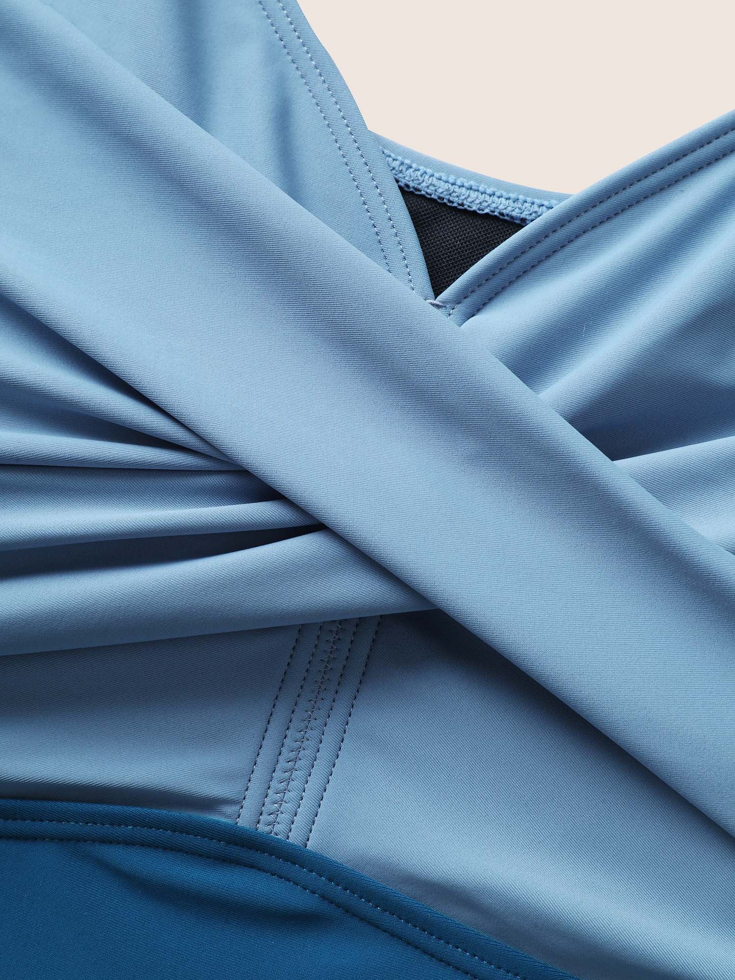 Color Block Twist Front Ruched Swim Top