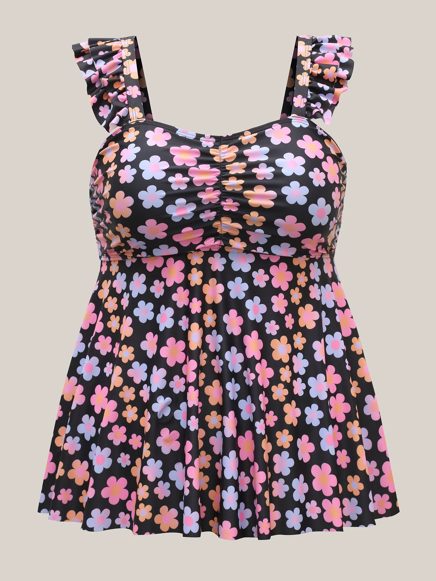 Ruffled Ditsy Floral Print Swim Top