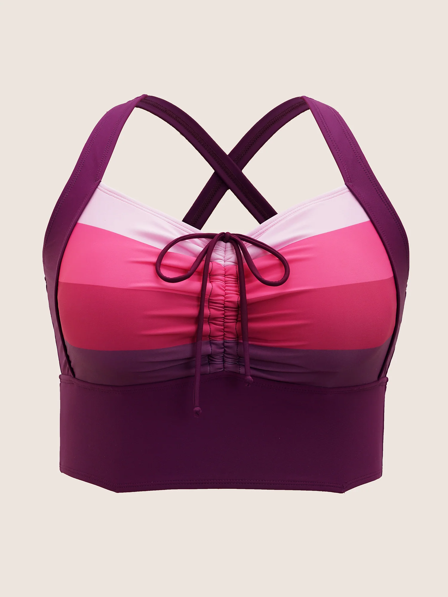 Colorblock Contrast Drawstring Gathered Swim Top