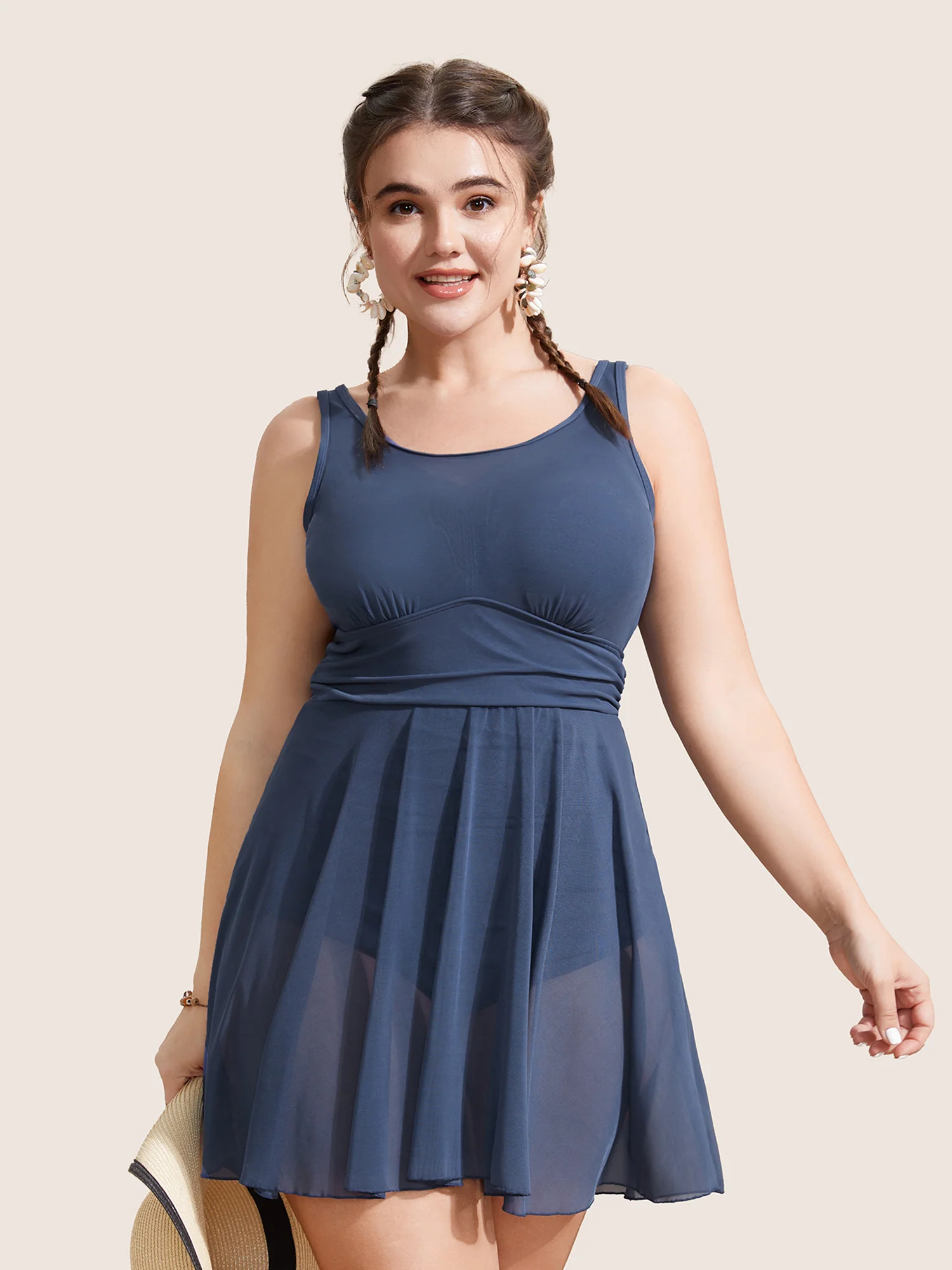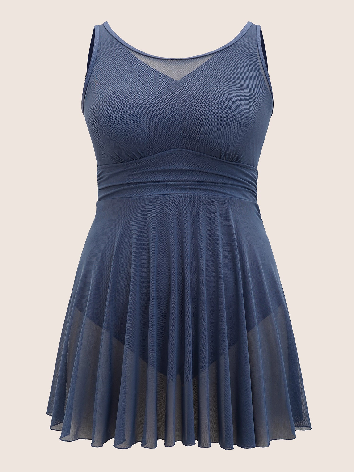 See Through Patchwork Gathered Swim Dress