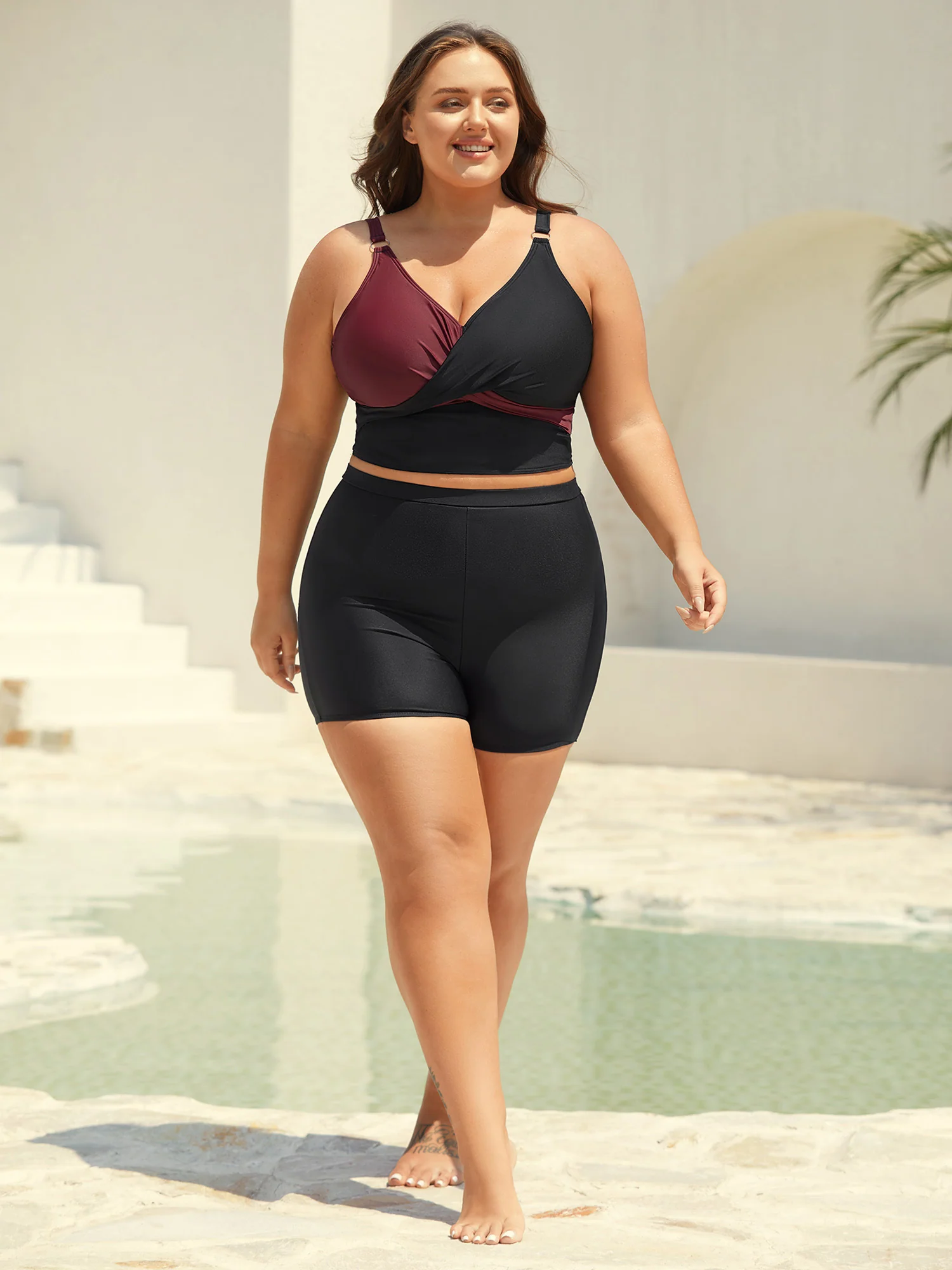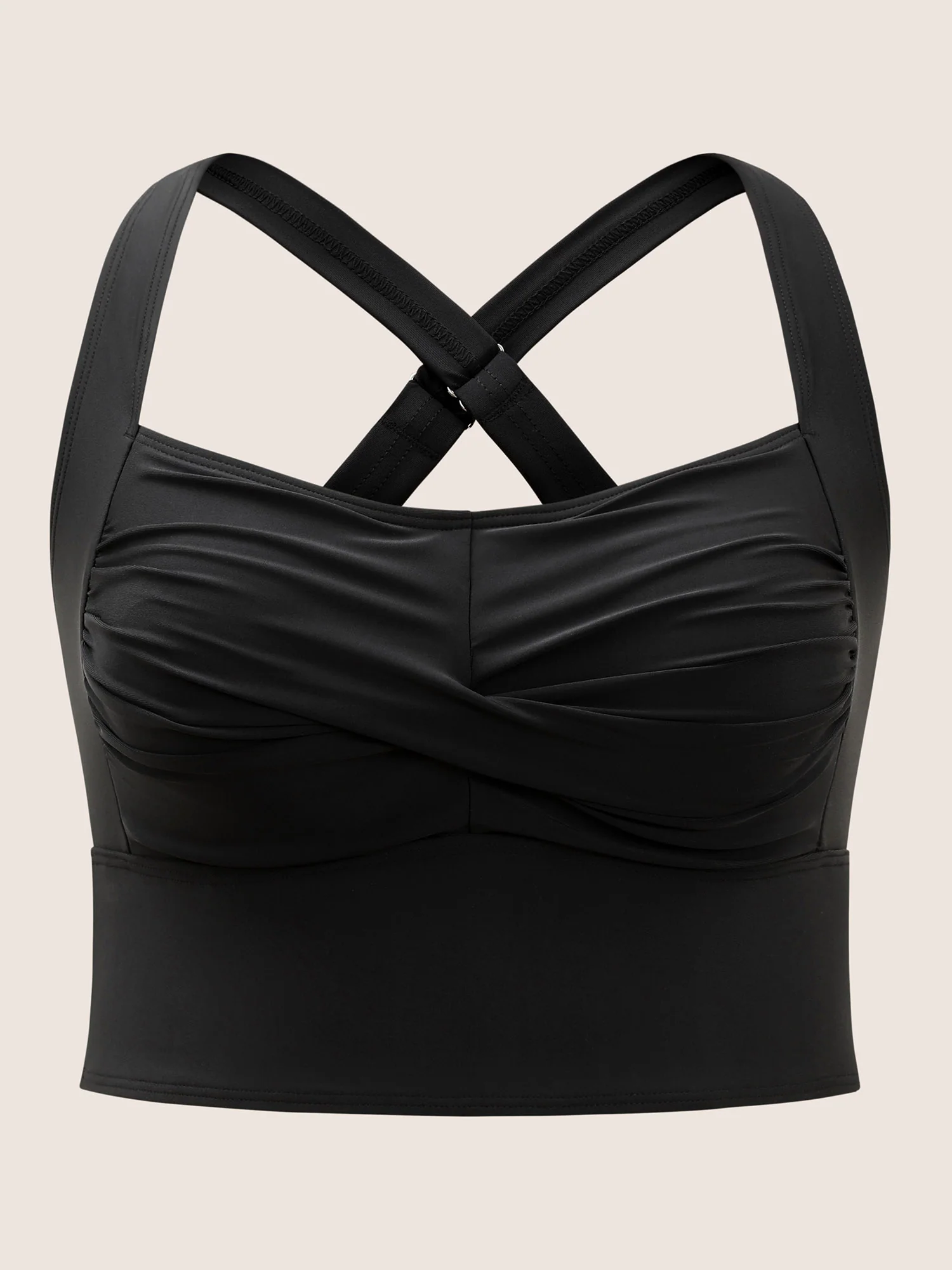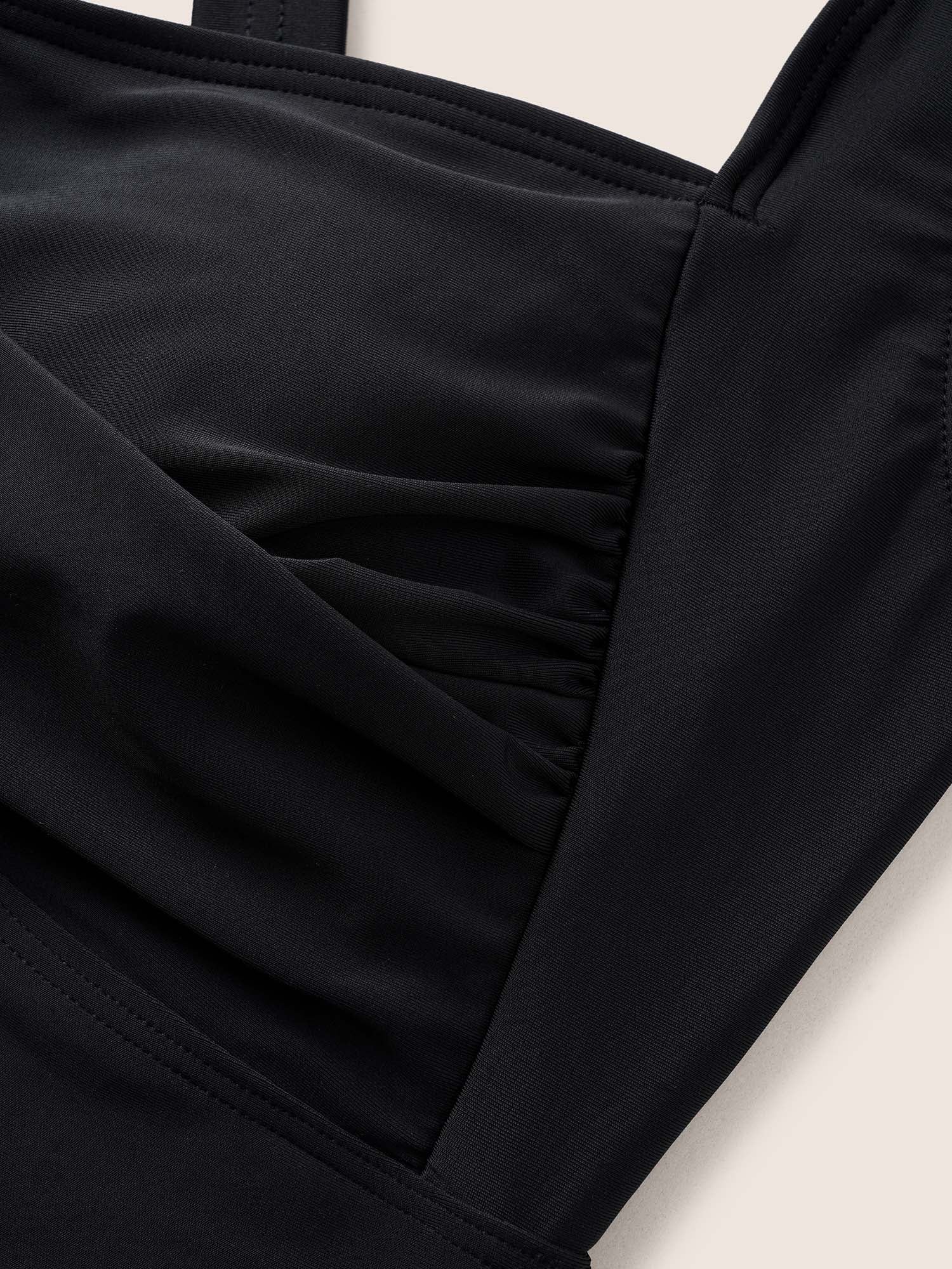 Solid Crossover Square Neck Adjustable Straps Swim Top