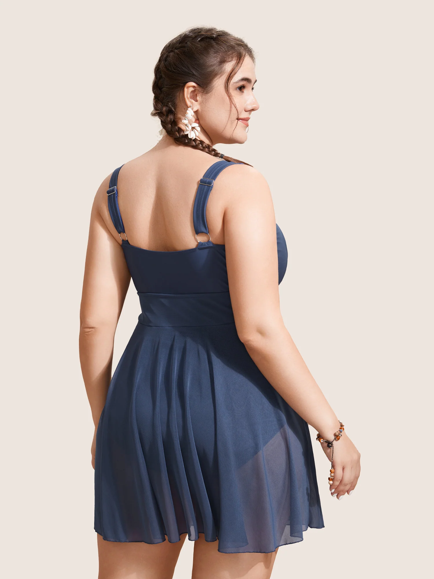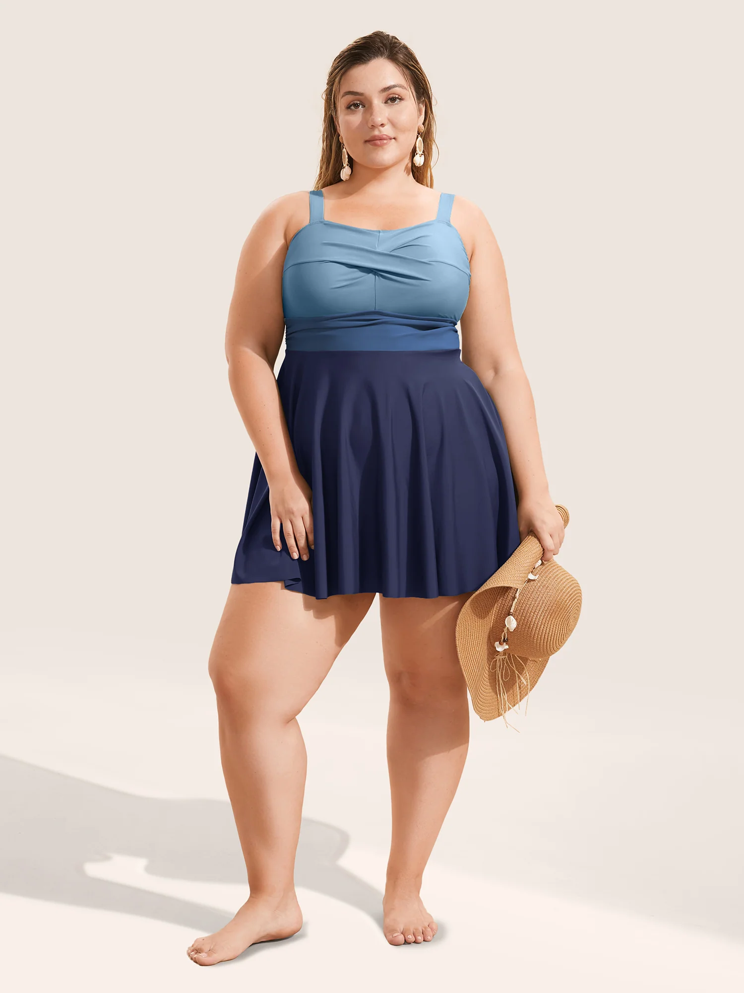 Twist Front Patchwork Adjustable Straps Swim Dress