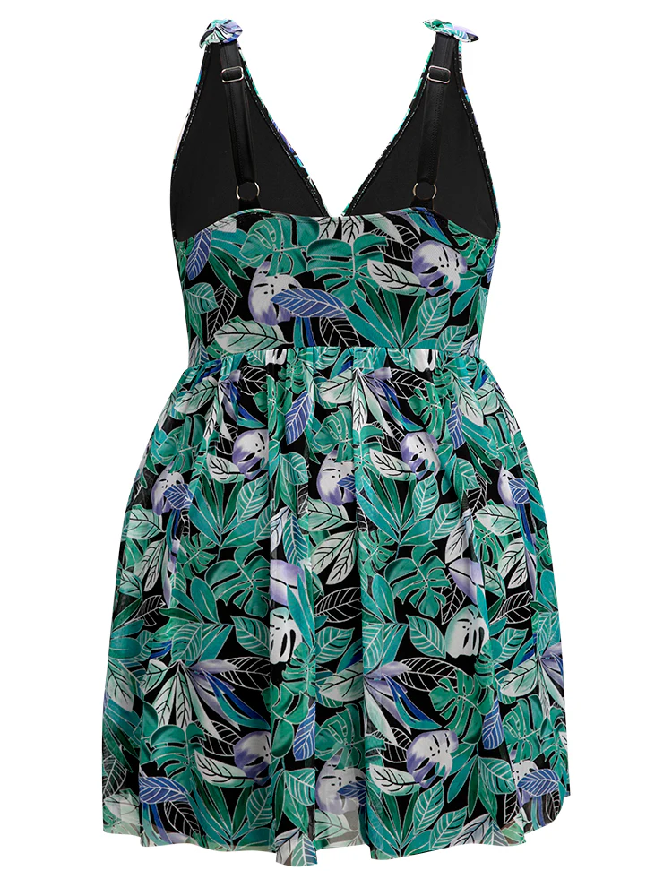 Leafy Print Fit and Flare Swim Dress