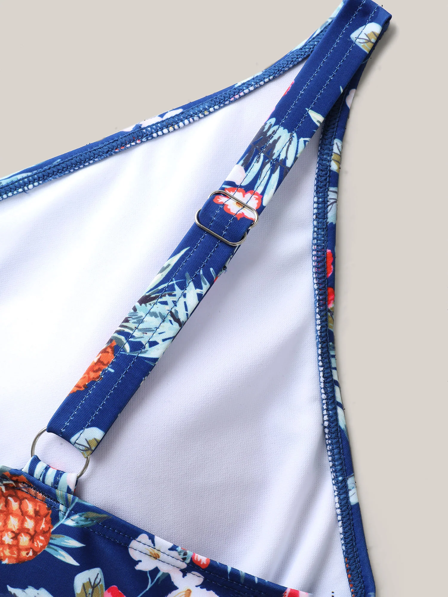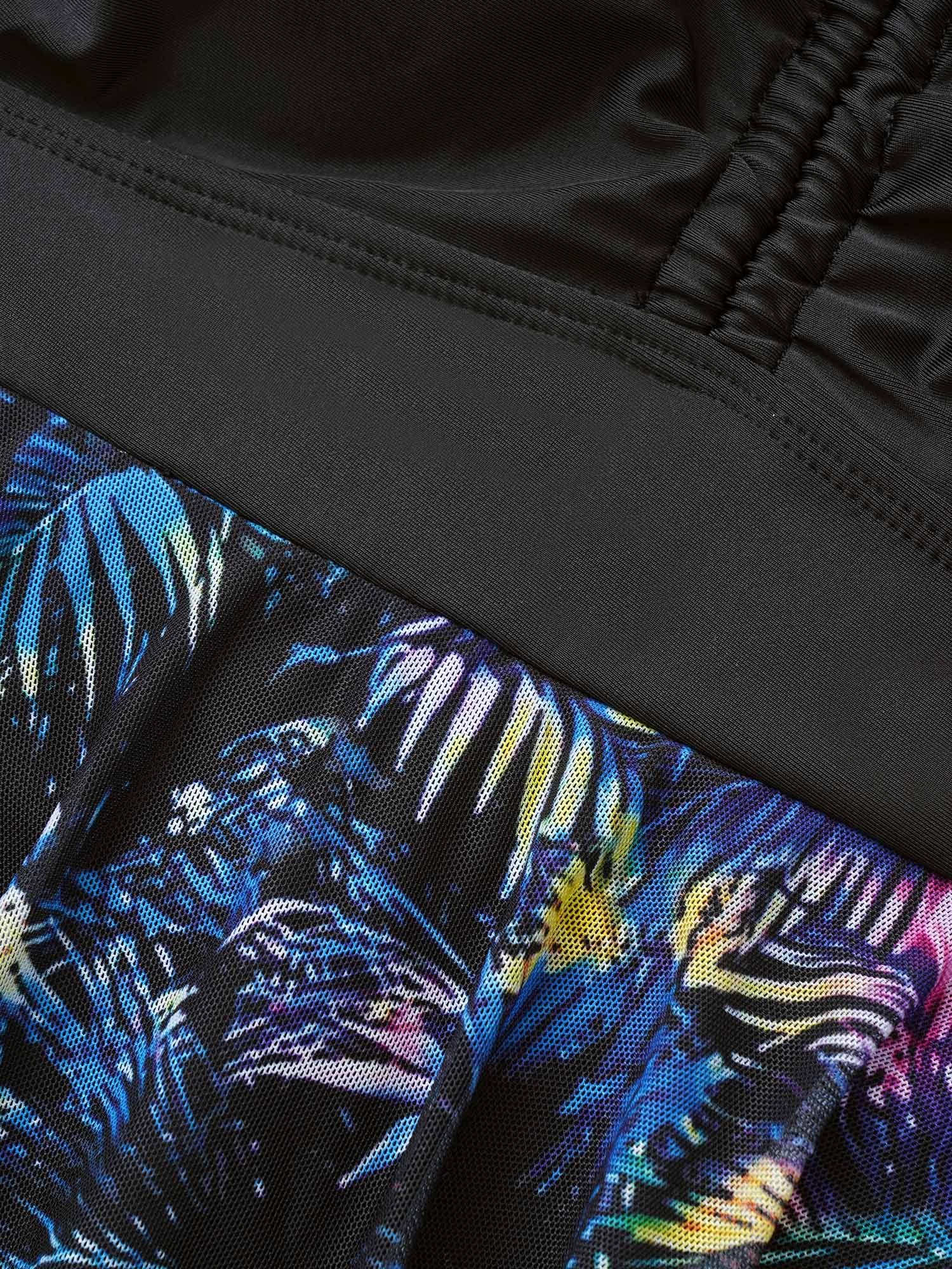 Tropical Print Ruched Spliced Swim Top