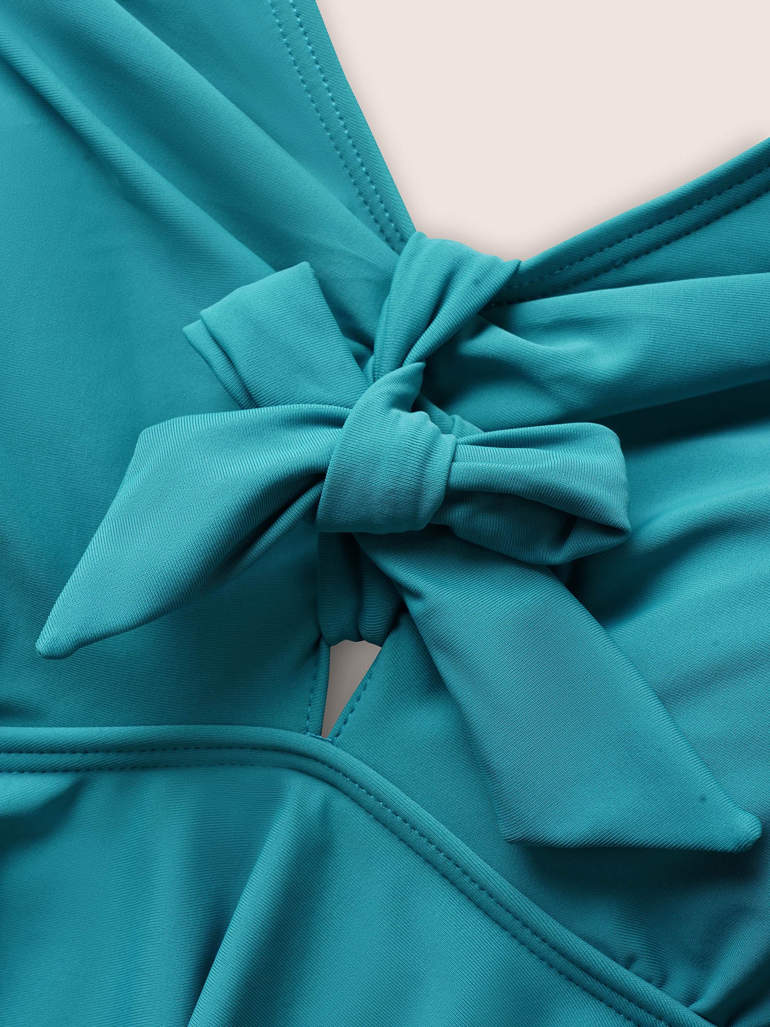 Plain V Neck High Stretch Tie Knot Swim Top