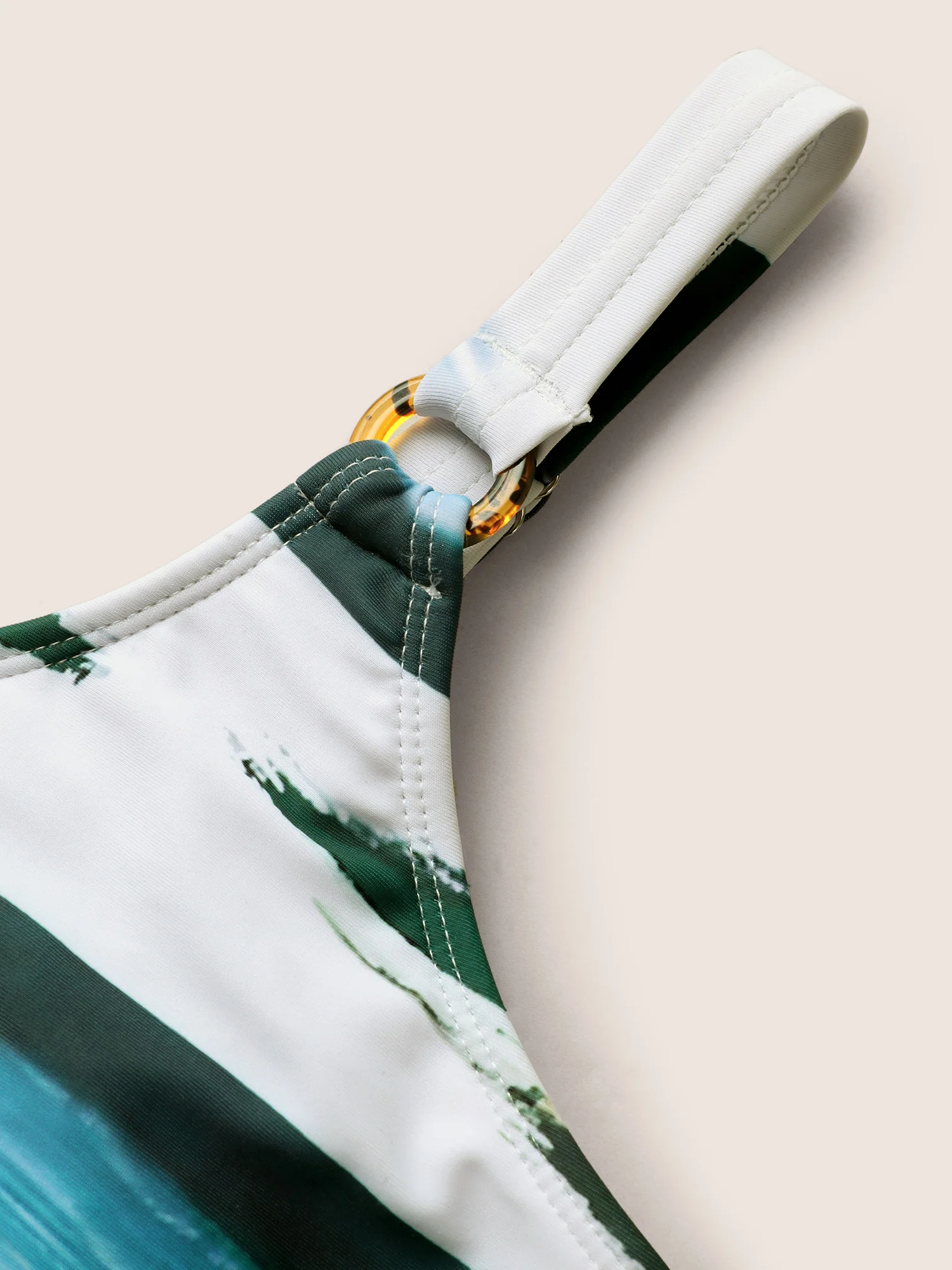 Tie-Dye Like Neck Cut-Out Swim Top