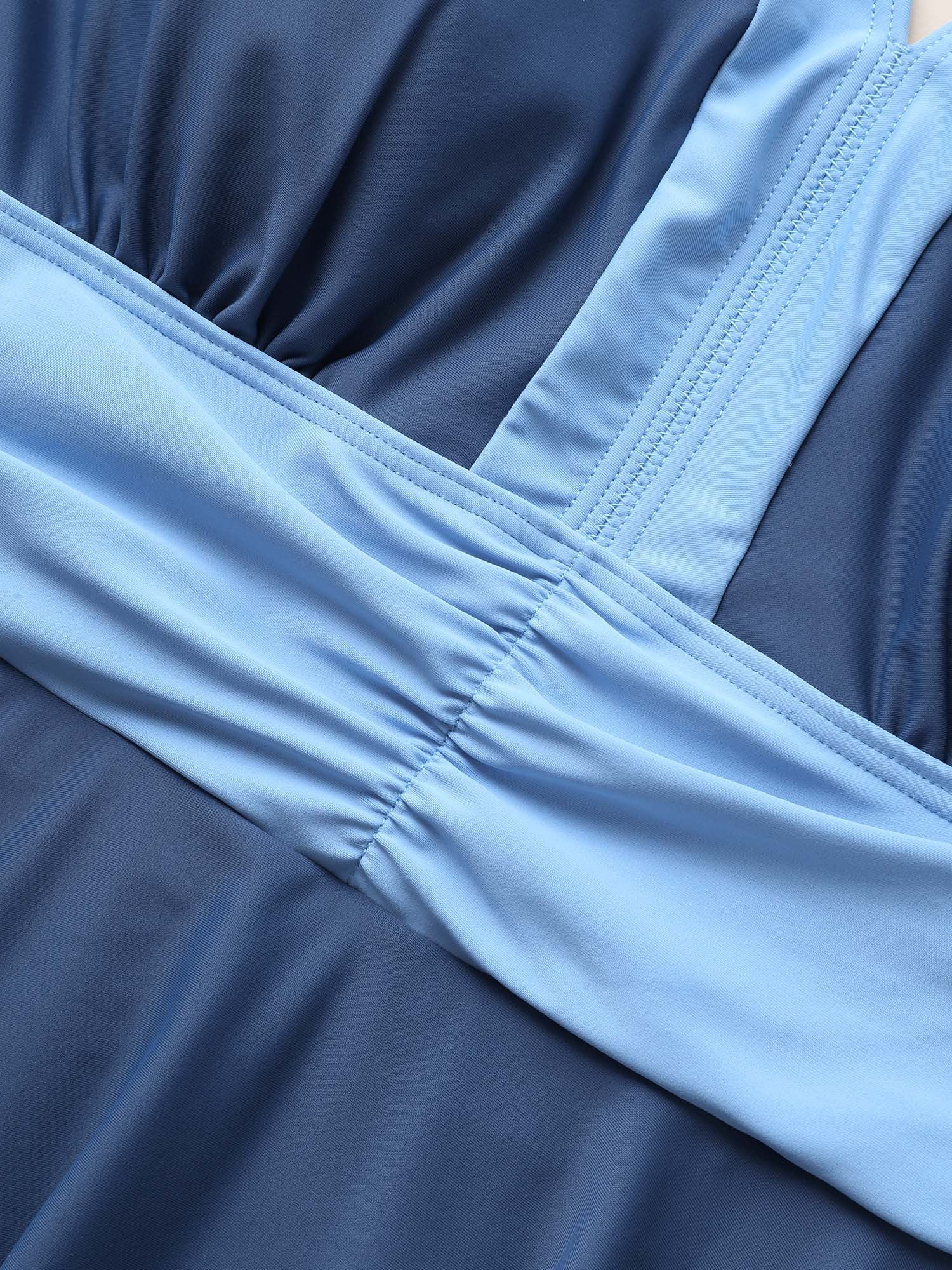 V Neck Color Contrast Swim Dress