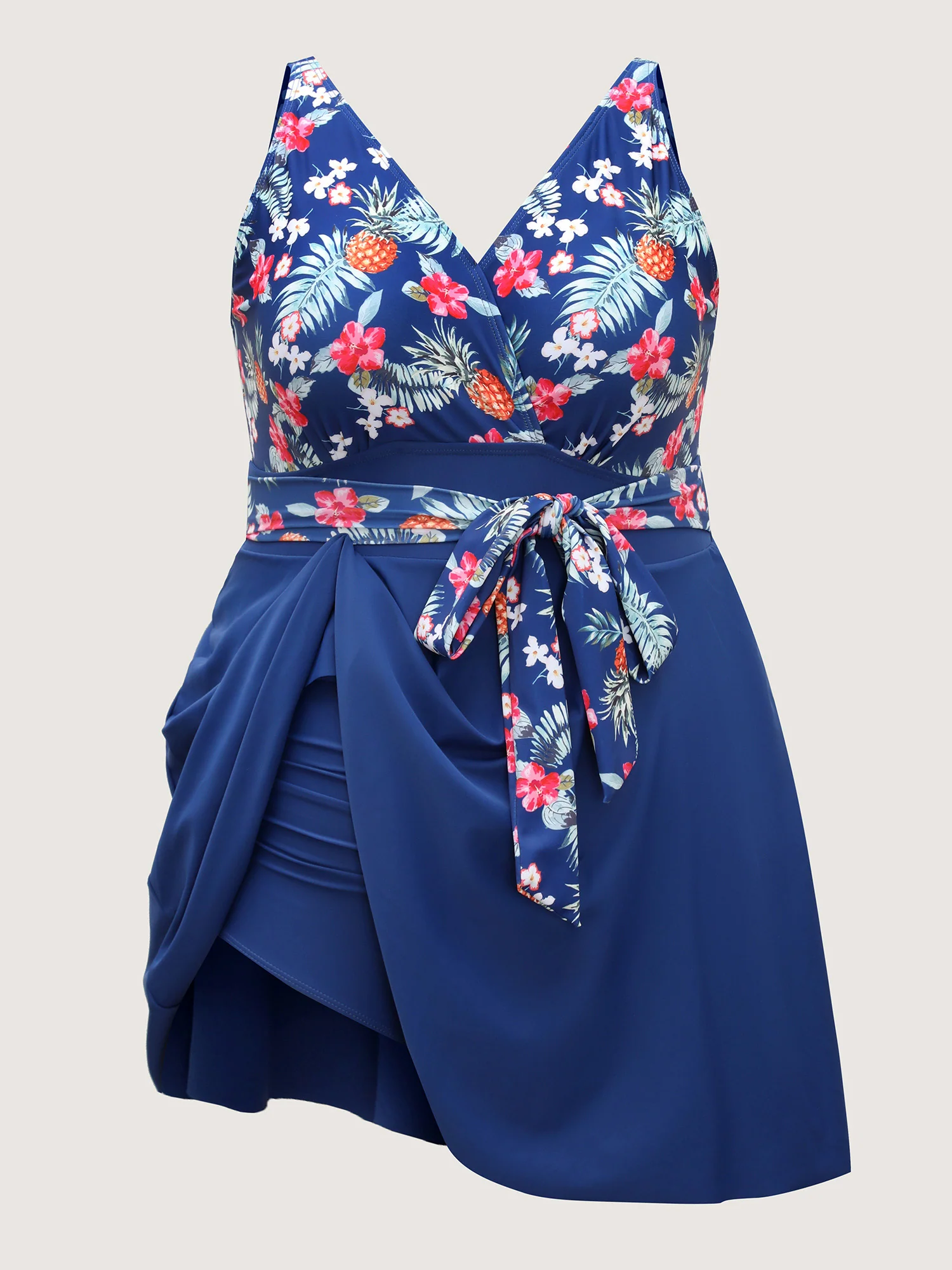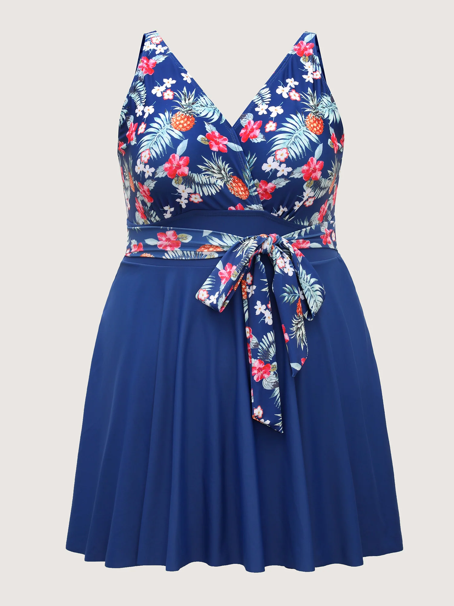 Tropical Floral Print Waist-Tie Swim Dress