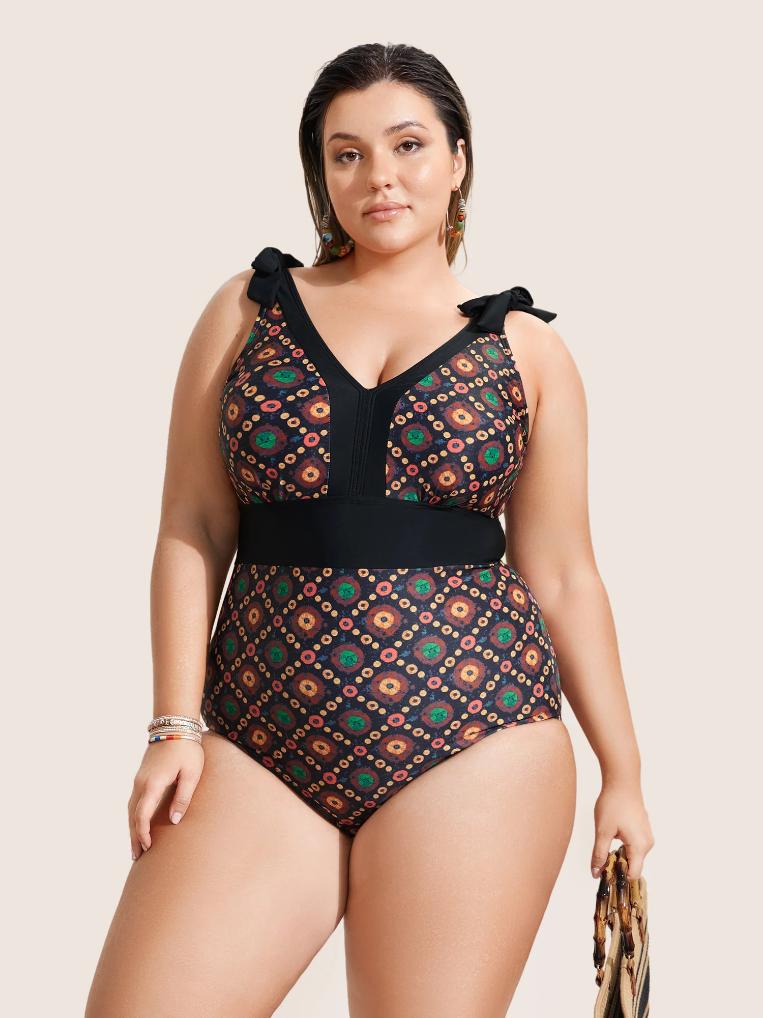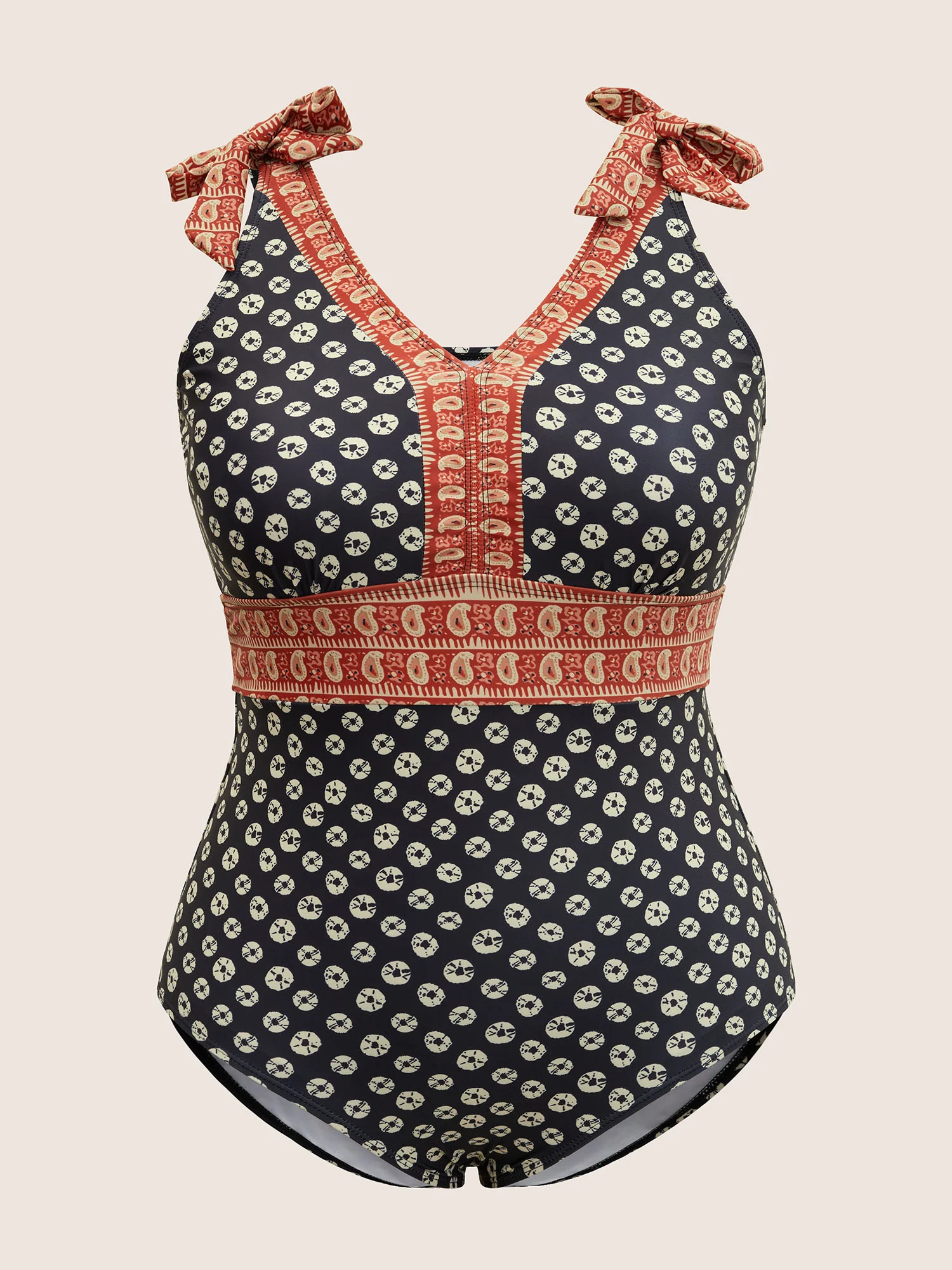 Boho Print Surplice Neck Swim Top