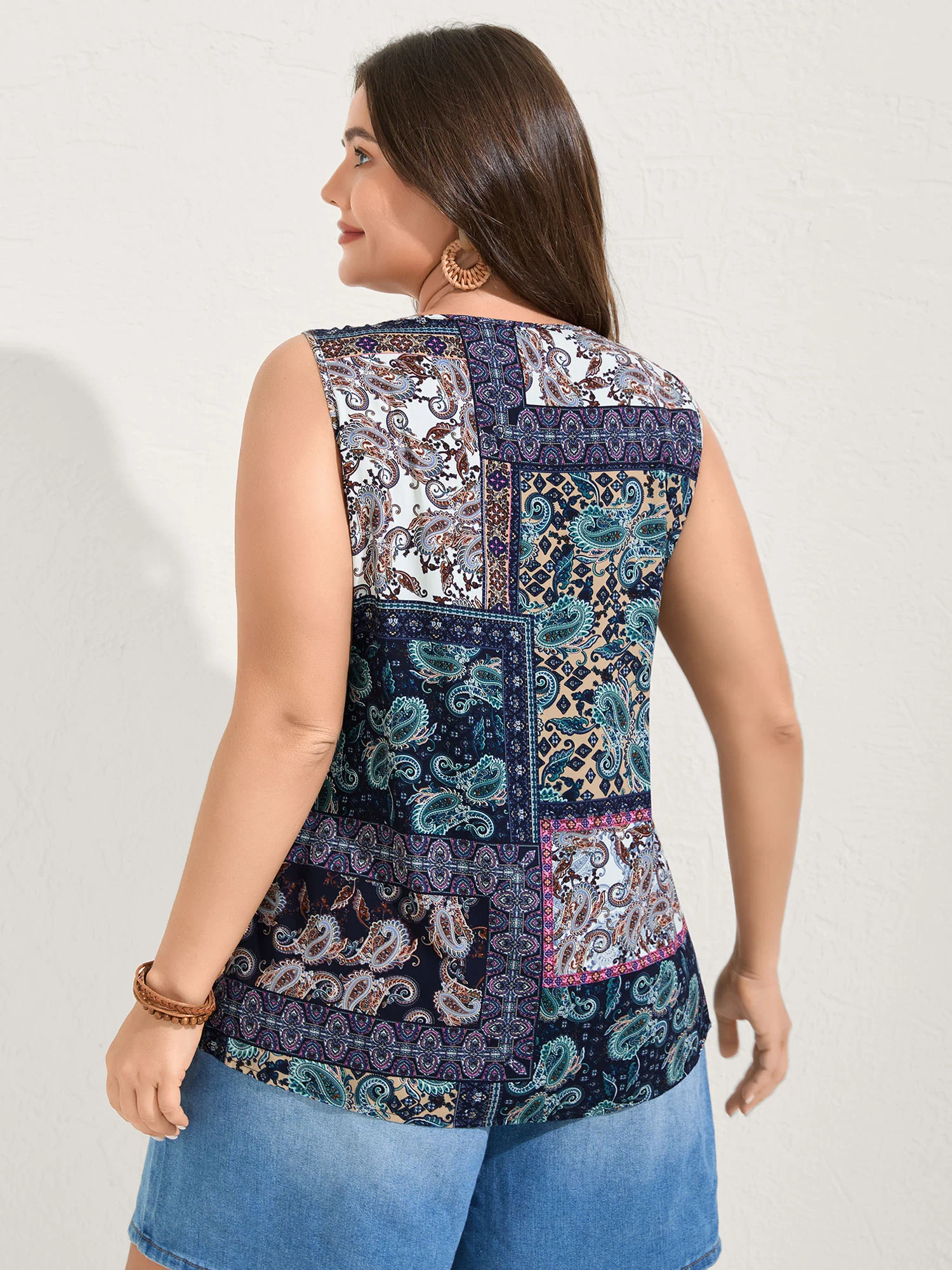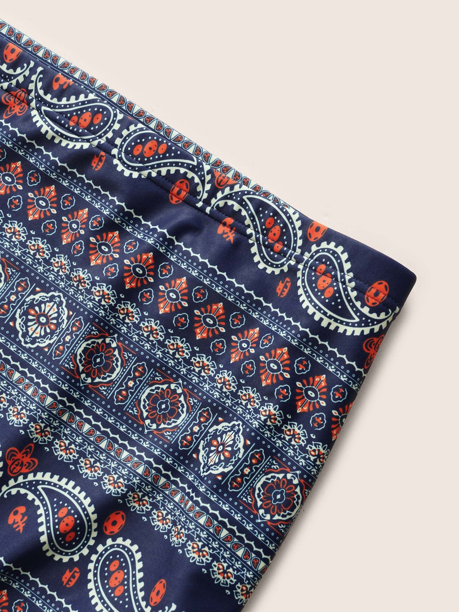Paisley Print Handkerchief Hem Drawstring Swim Top