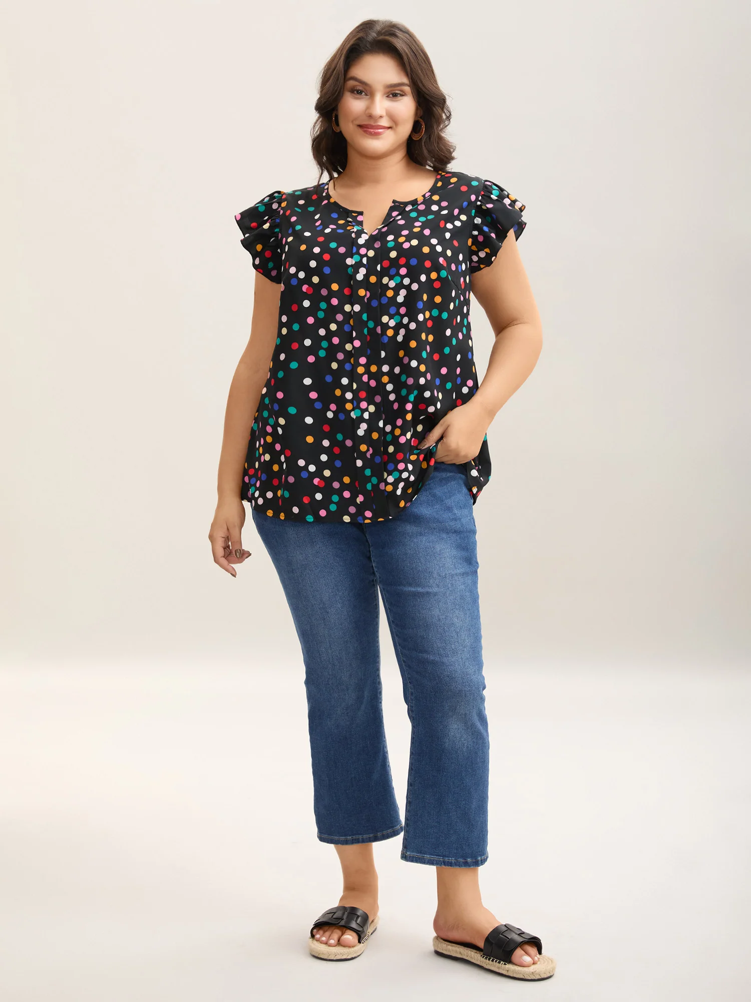 Polka Dot Flutter Sleeve Blouse