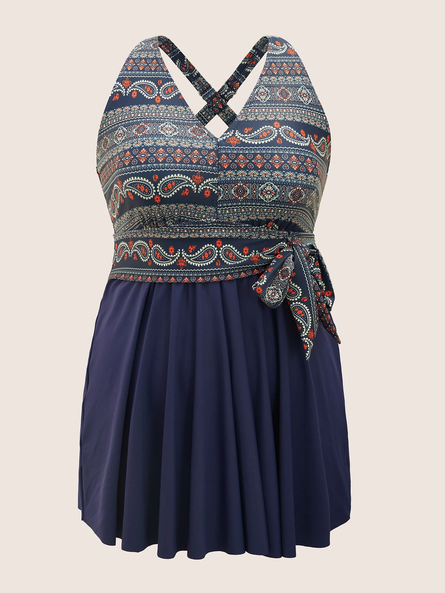Bandana Print Ties Knotted Patchwork Swim Dress