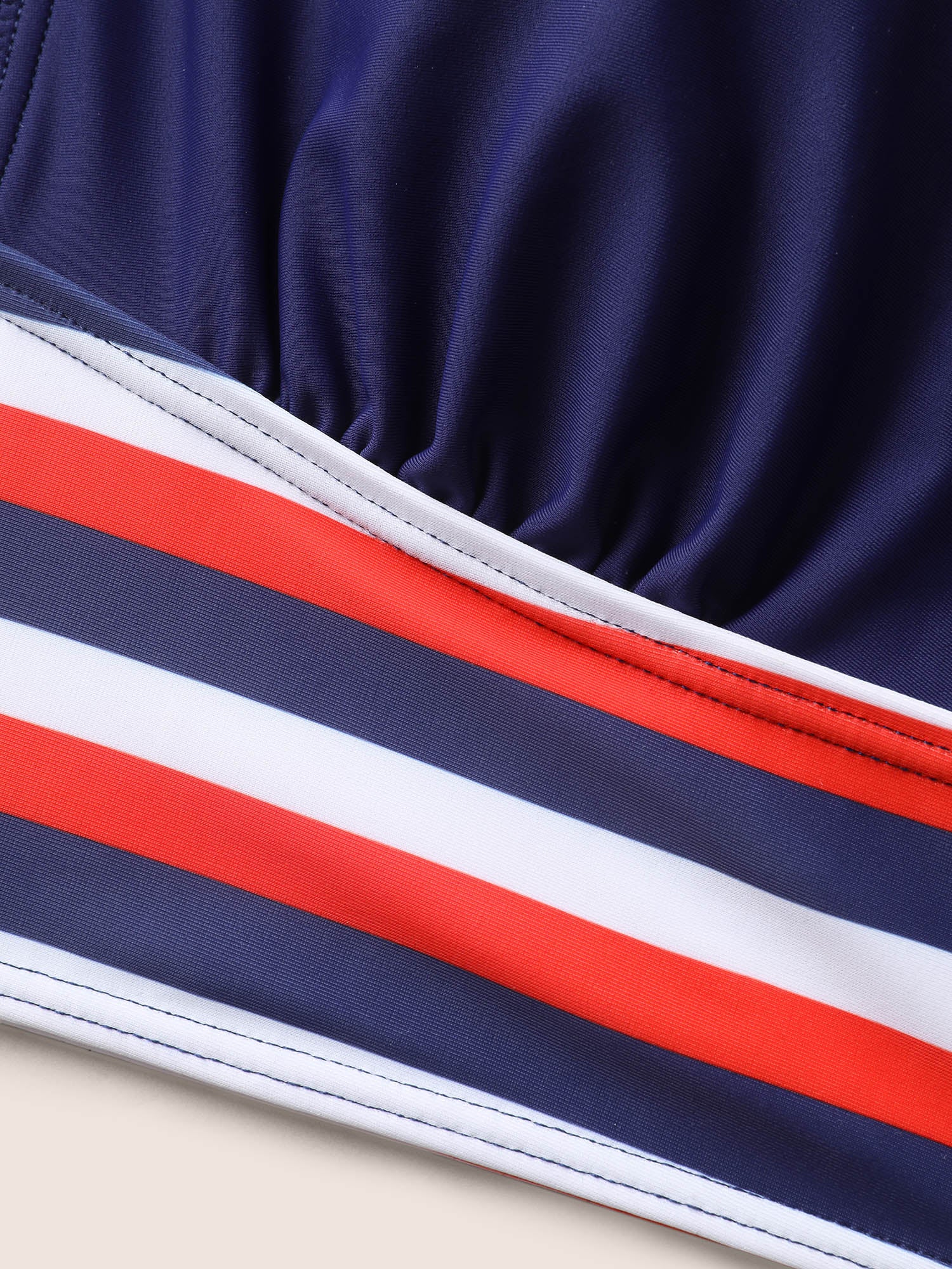 Contrast Striped V Neck Gathered Swim Top