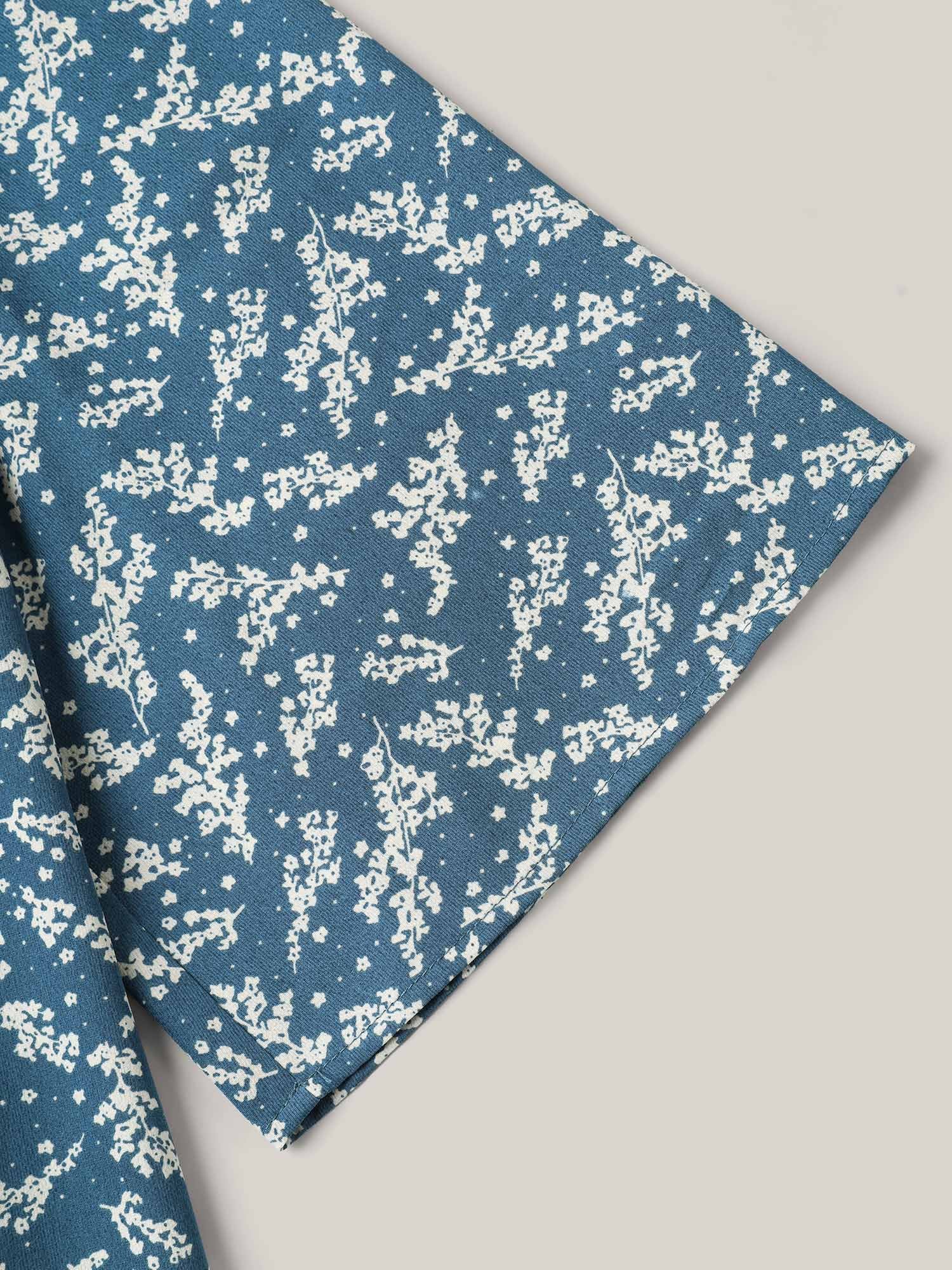 Floral Print Curvy Hem V-Neck Shirt