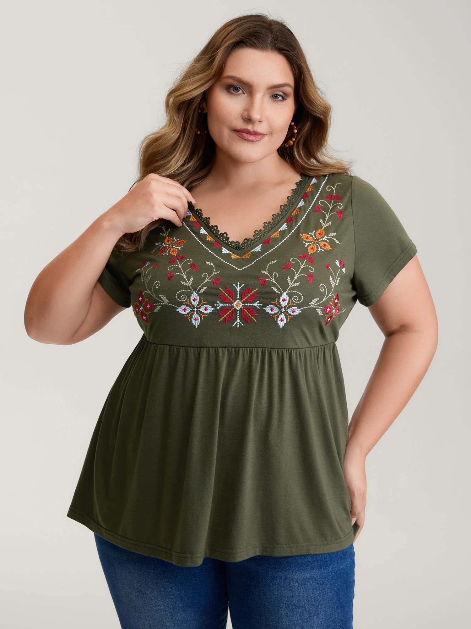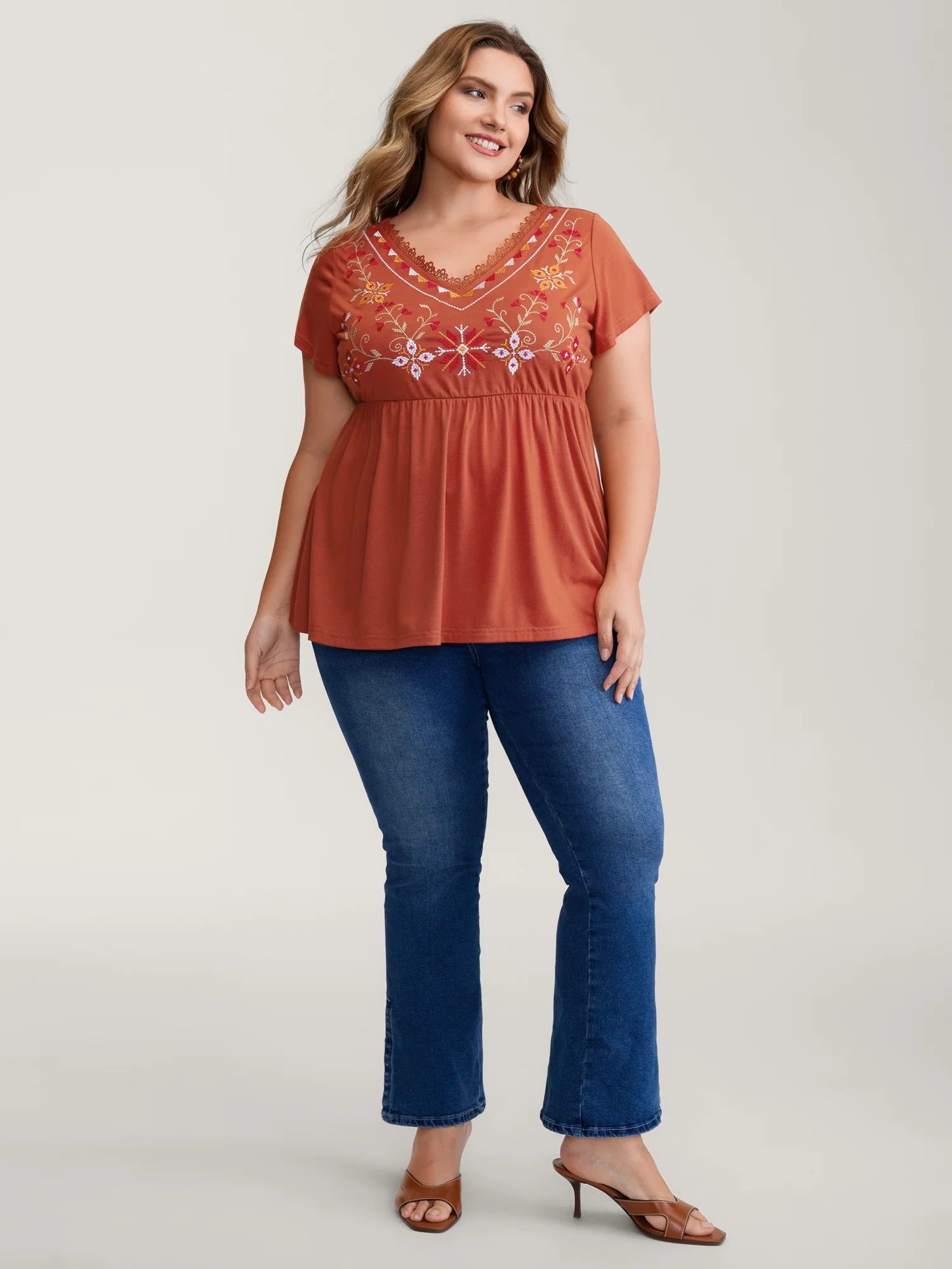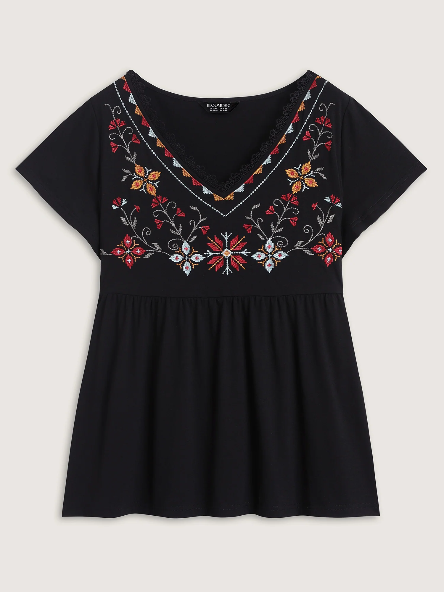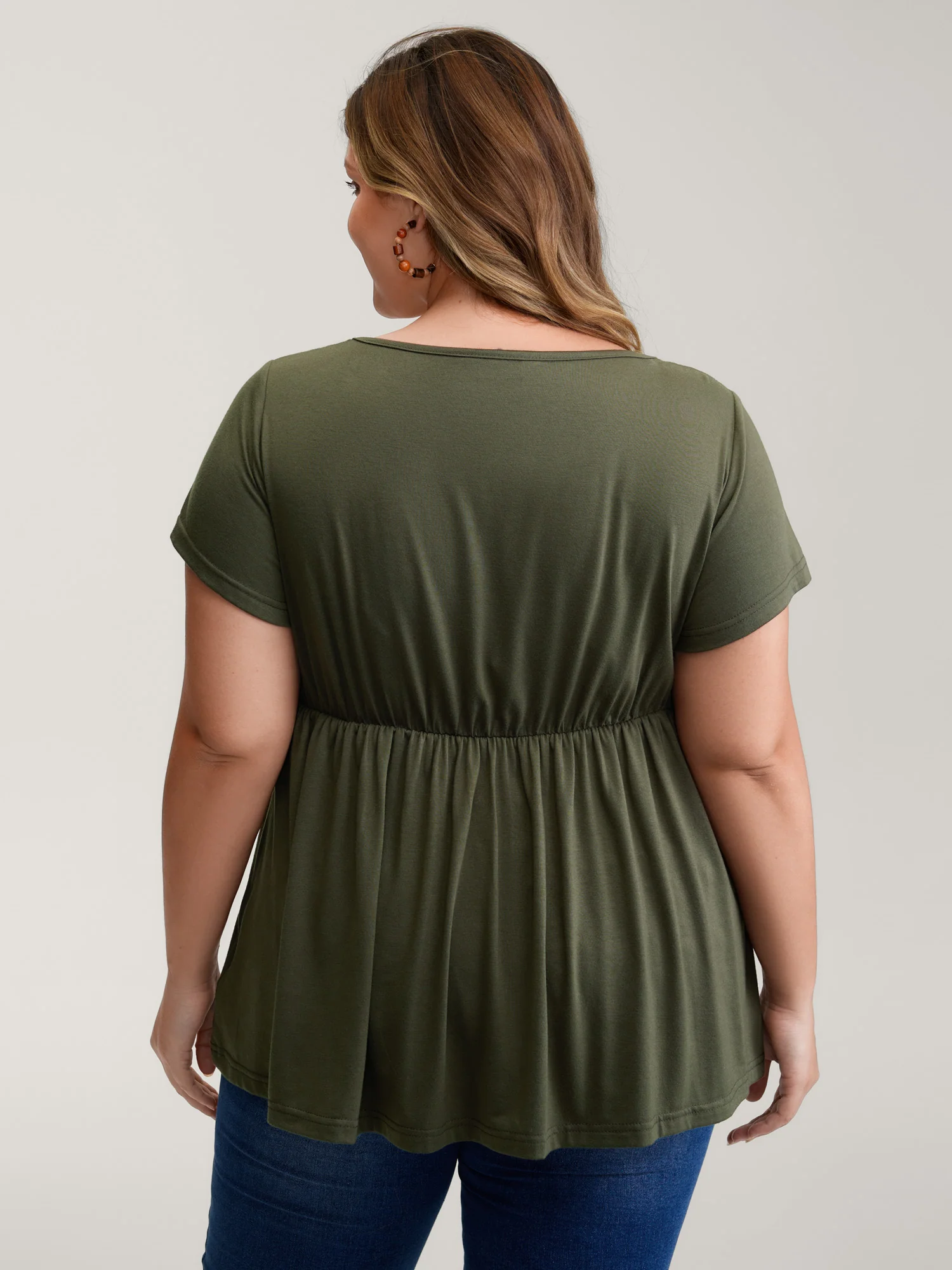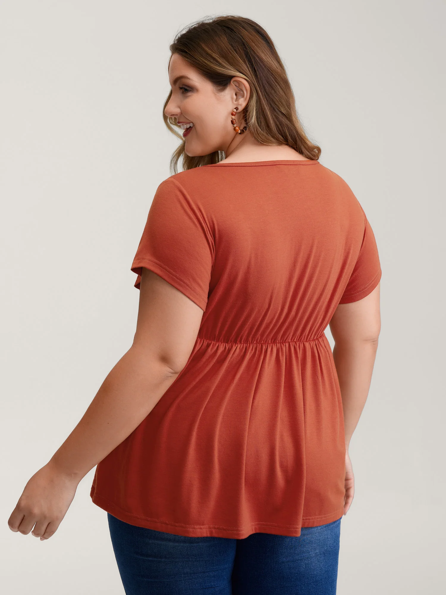 Cotton Vintage Wash Neck Cut-Out T-Shirt
