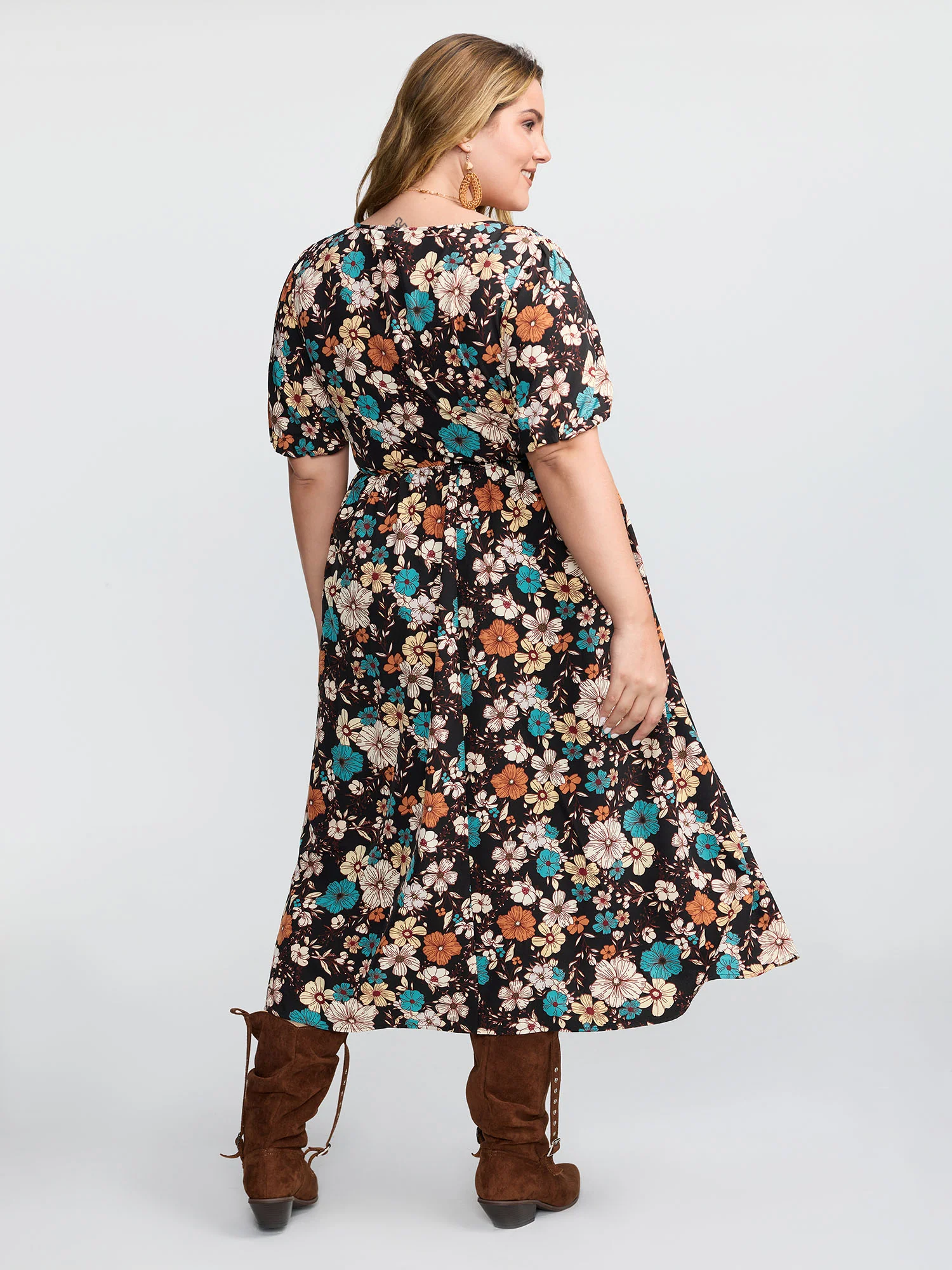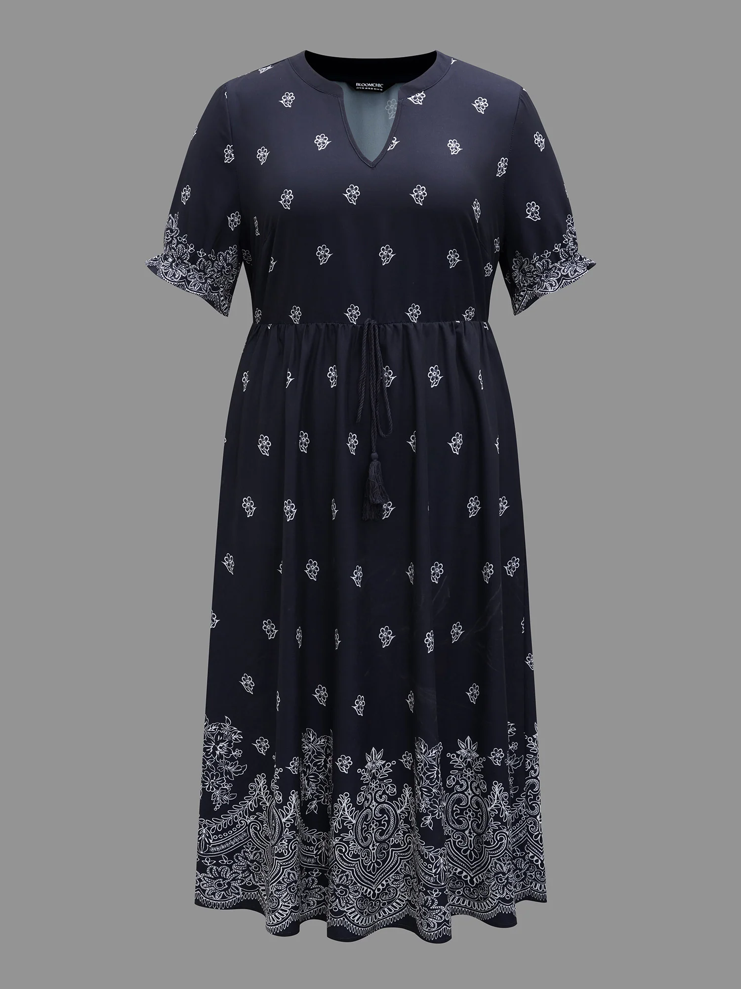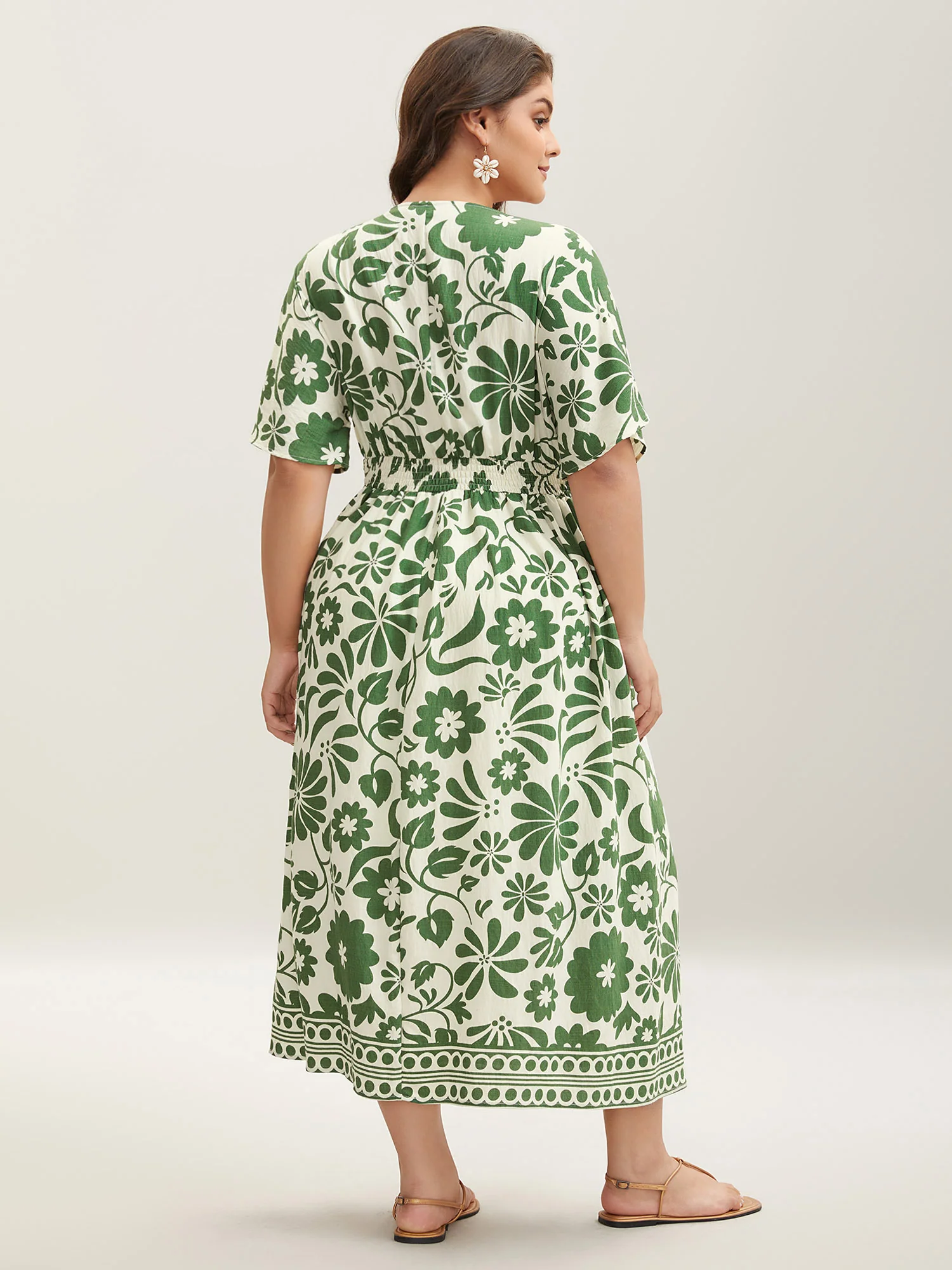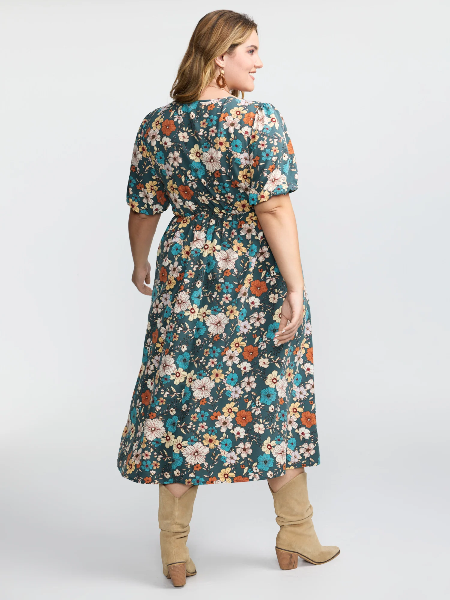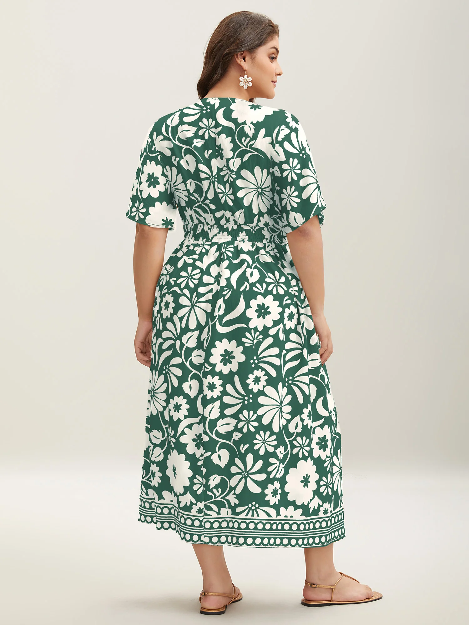 Rayon Stretchy Waist Boho Slit Midi Dress