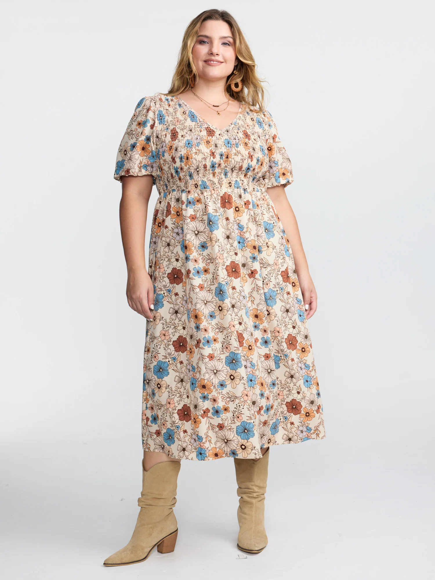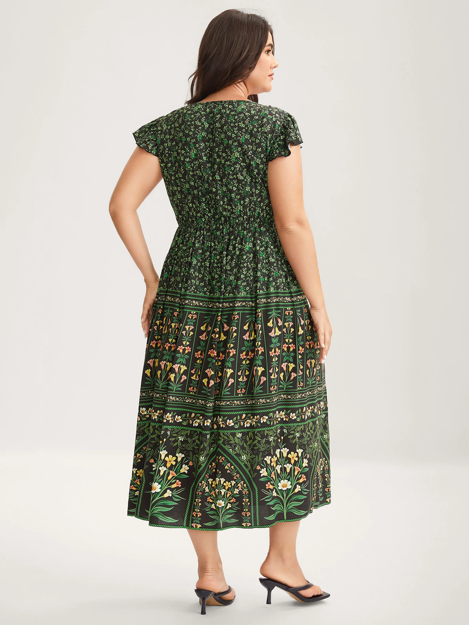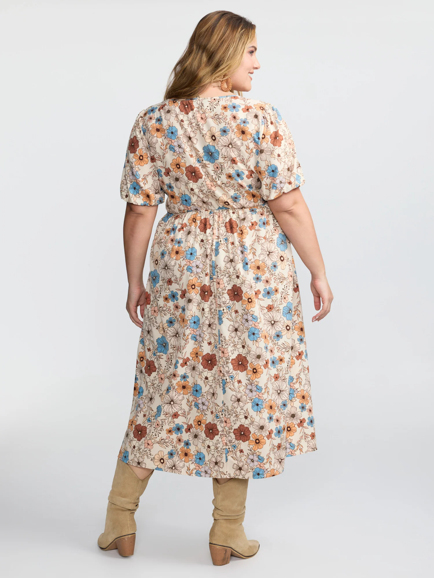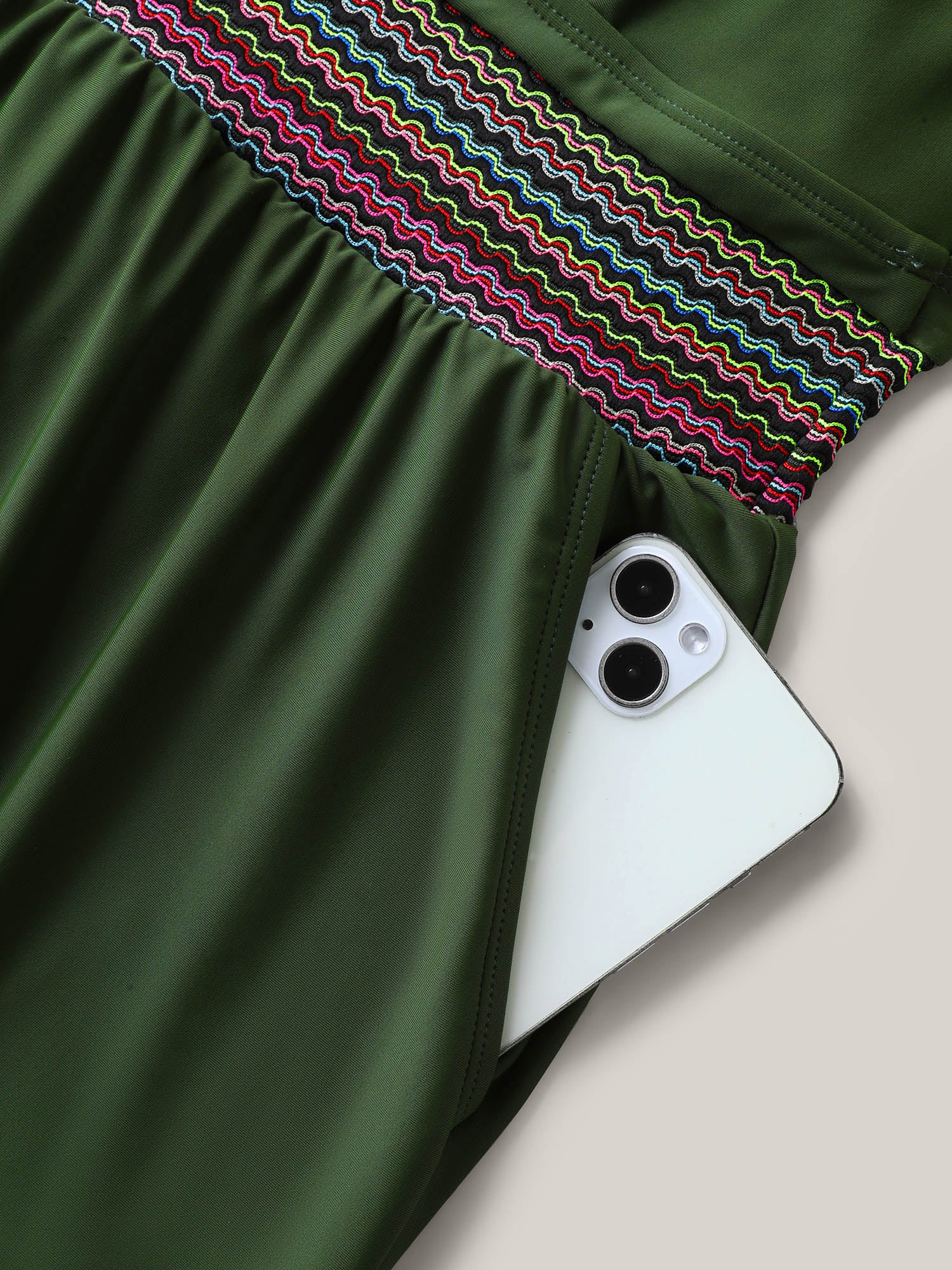 Rayon Stretchy Waist Boho Slit Midi Dress