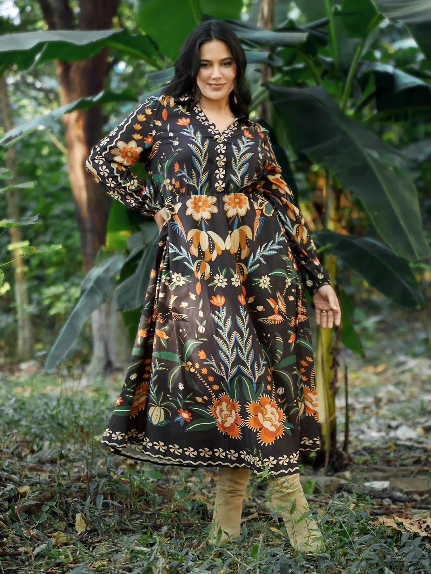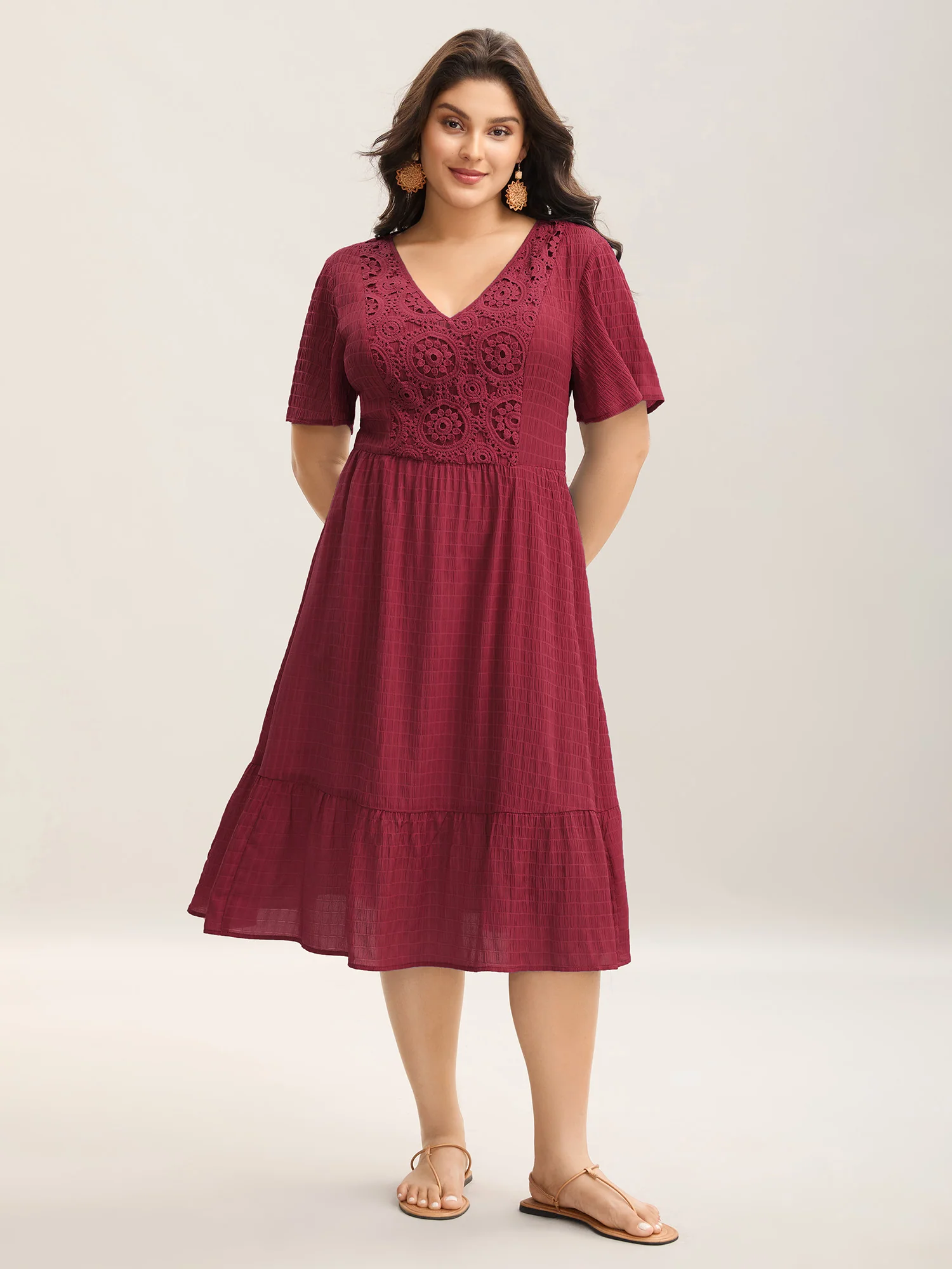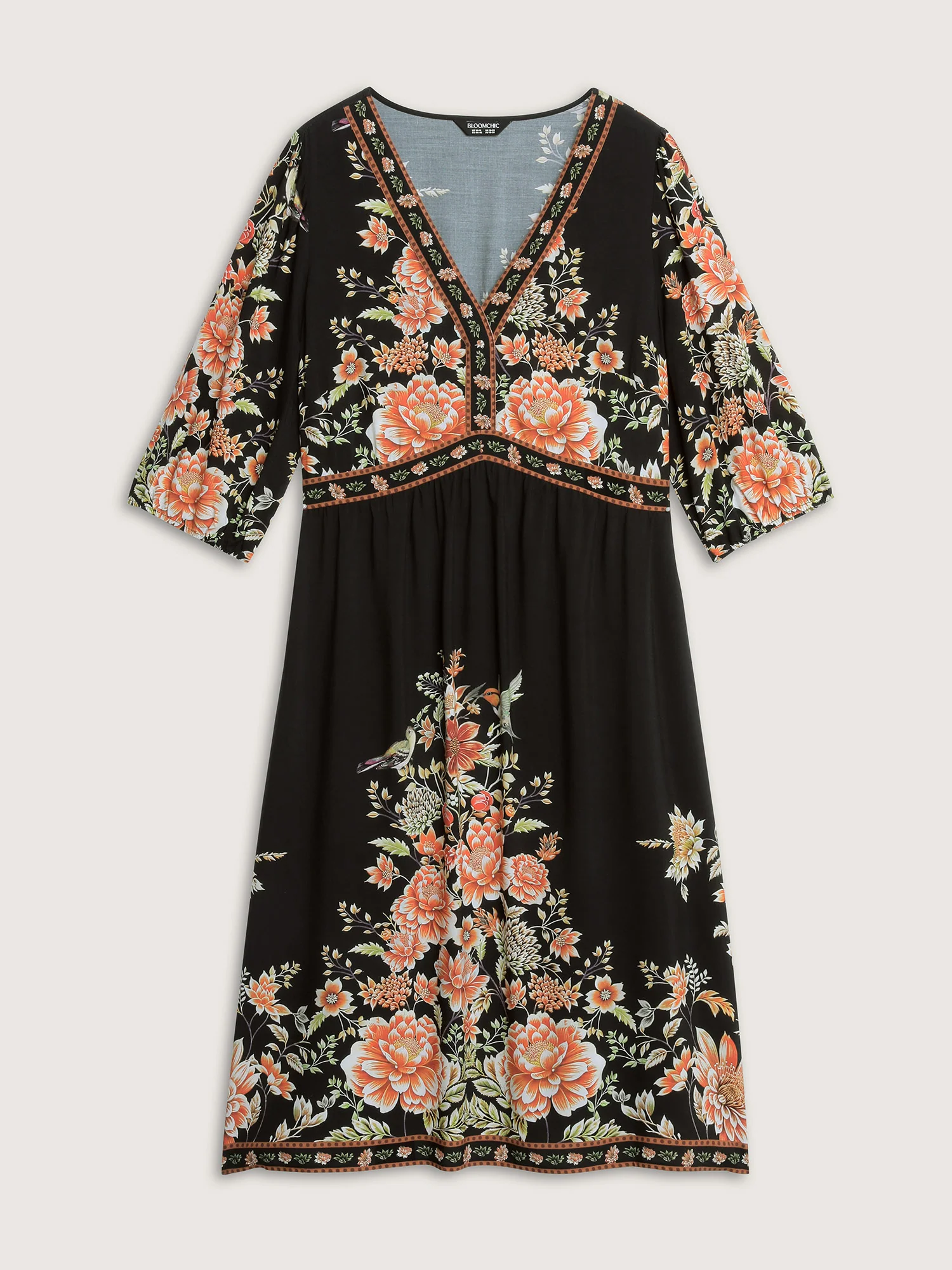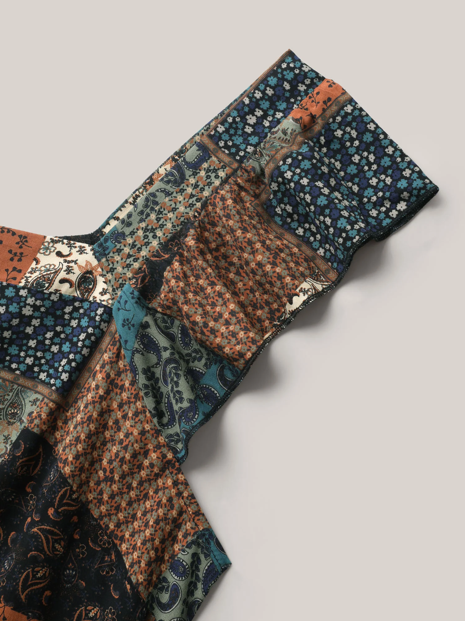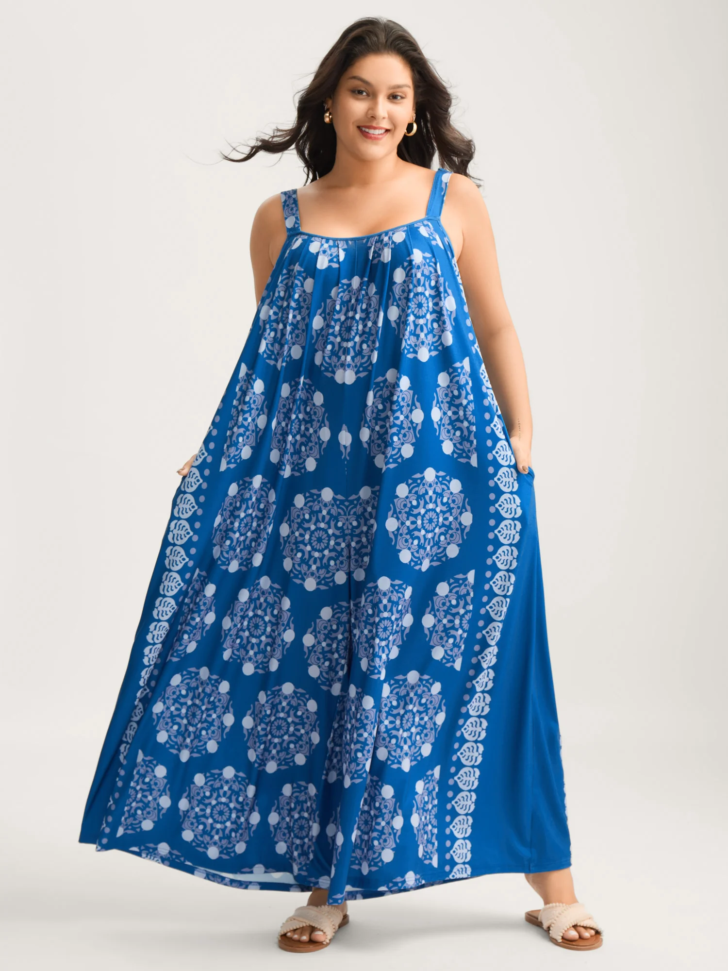 Rayon Stretchy Waist Boho Slit Midi Dress