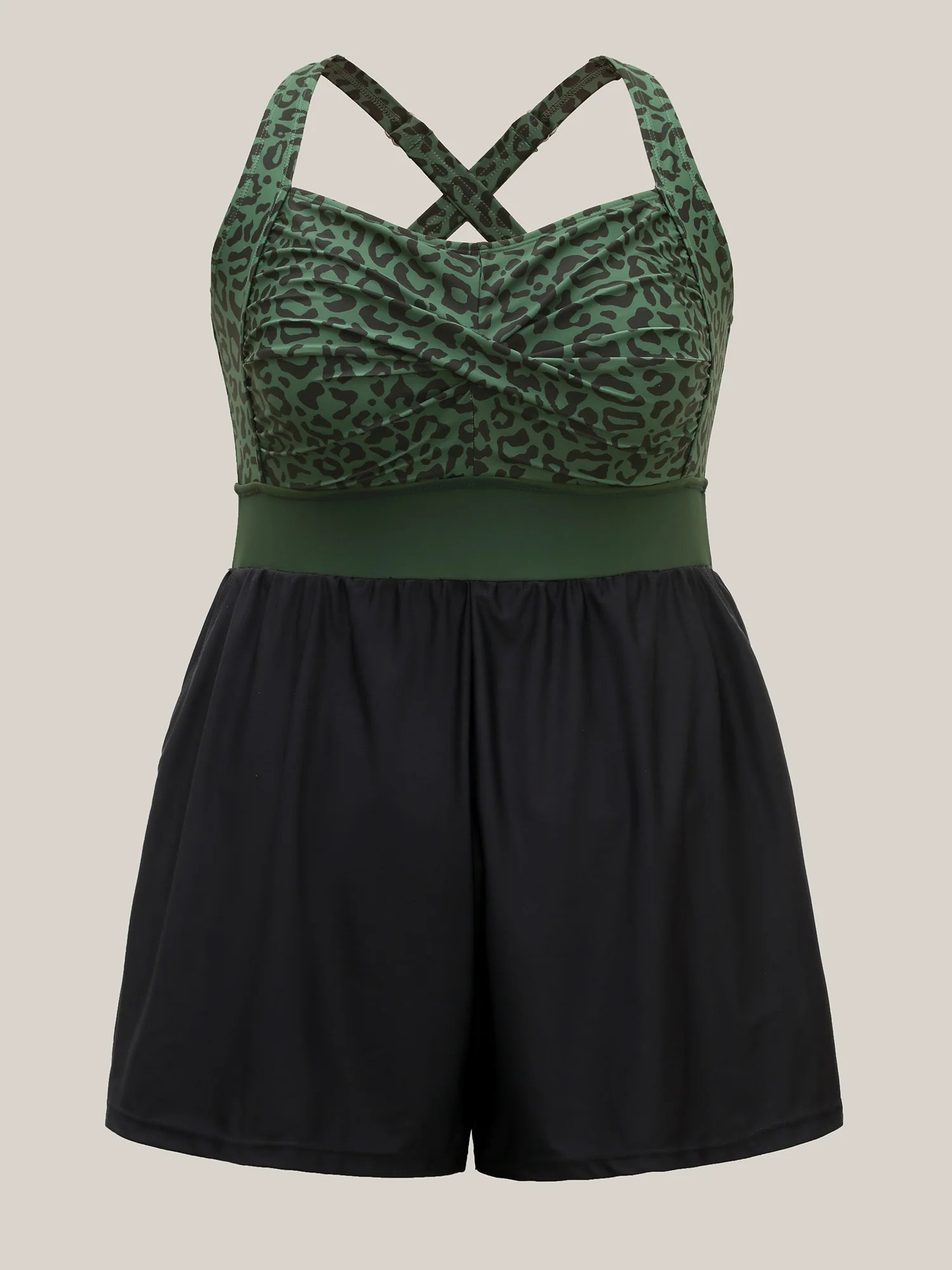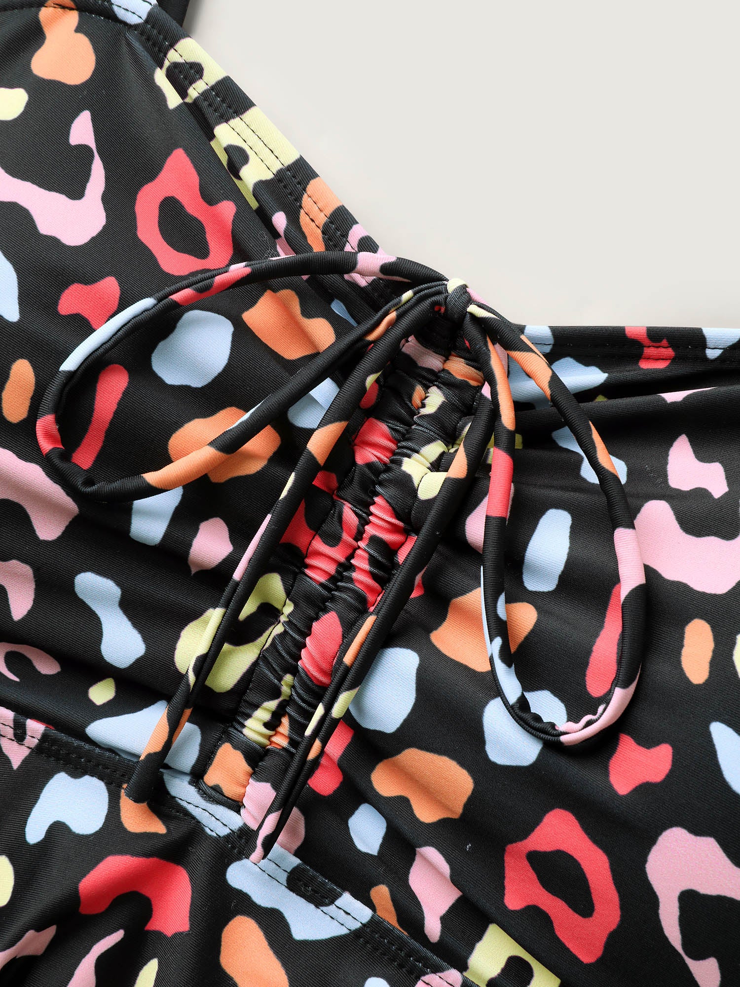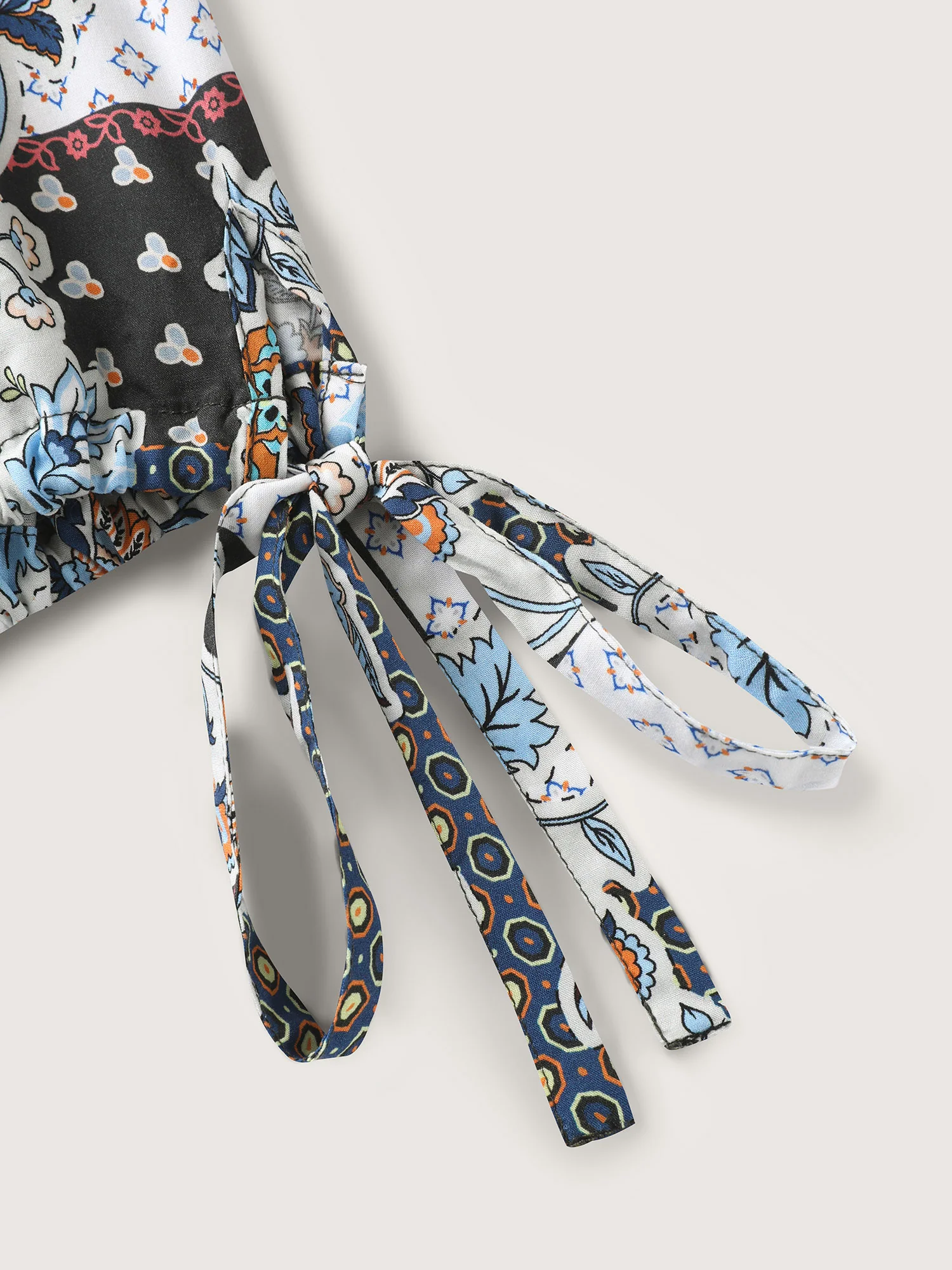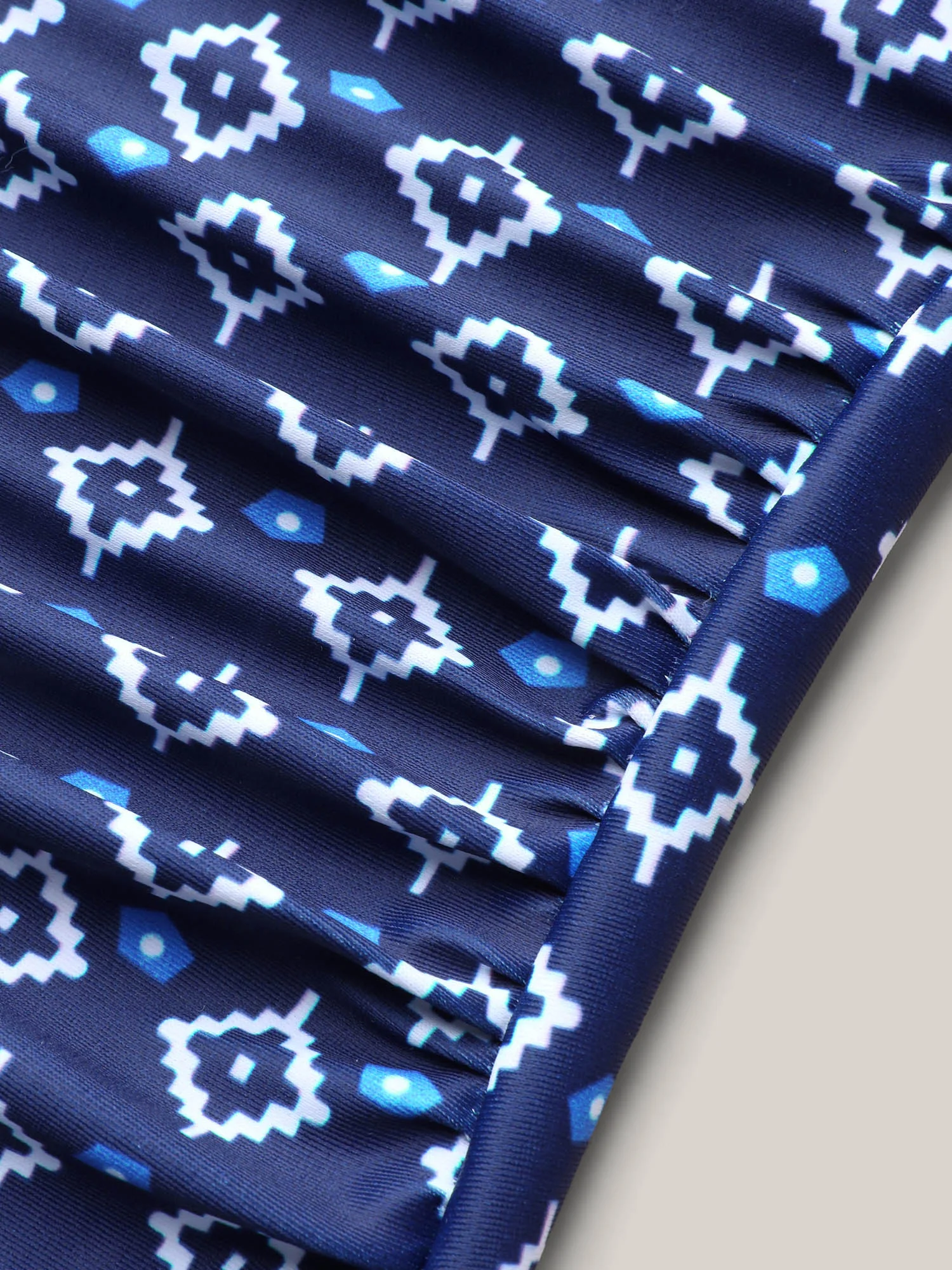 Boho Print Mesh Ruched Crisscross One-Piece Swimsuit