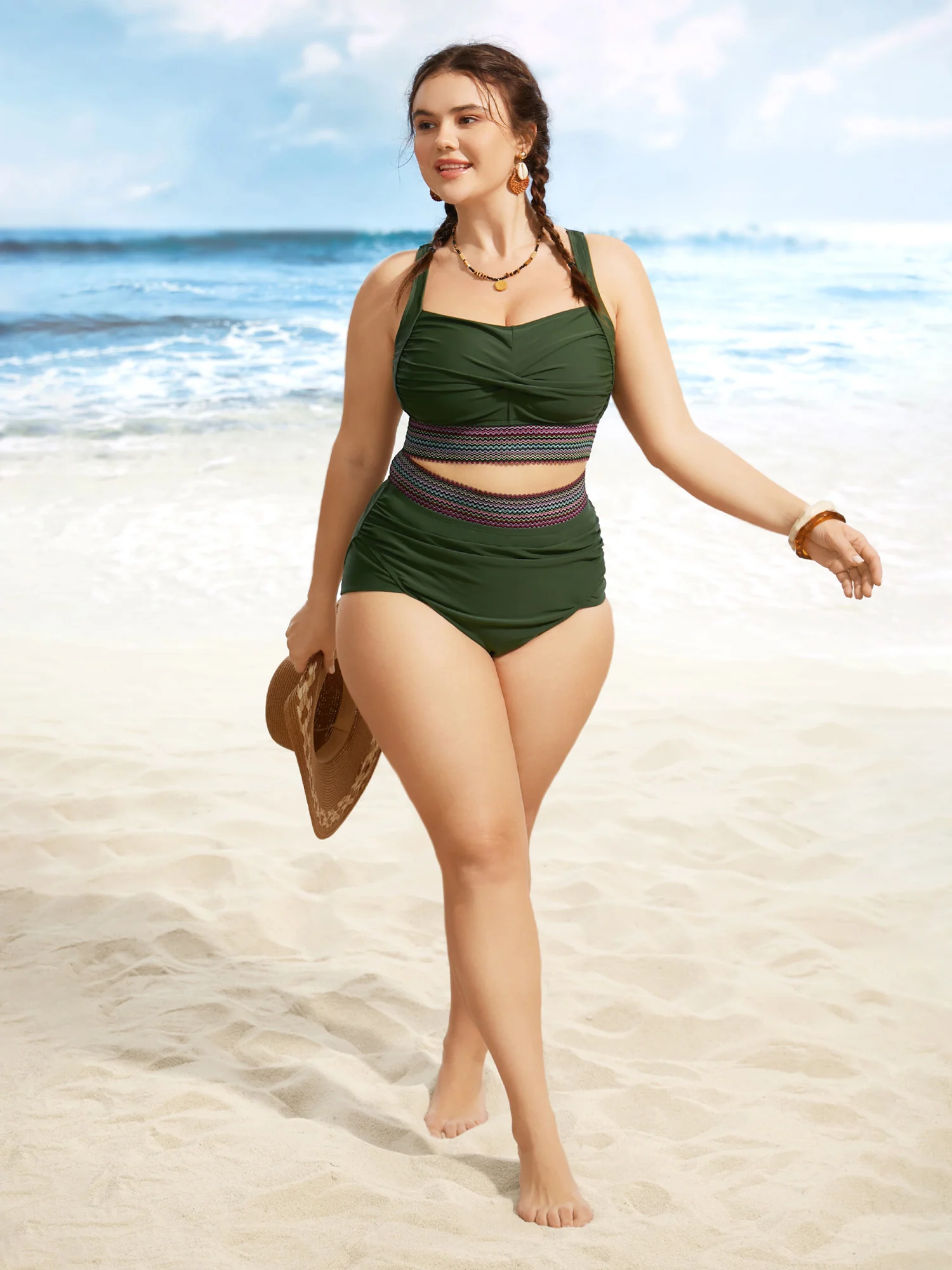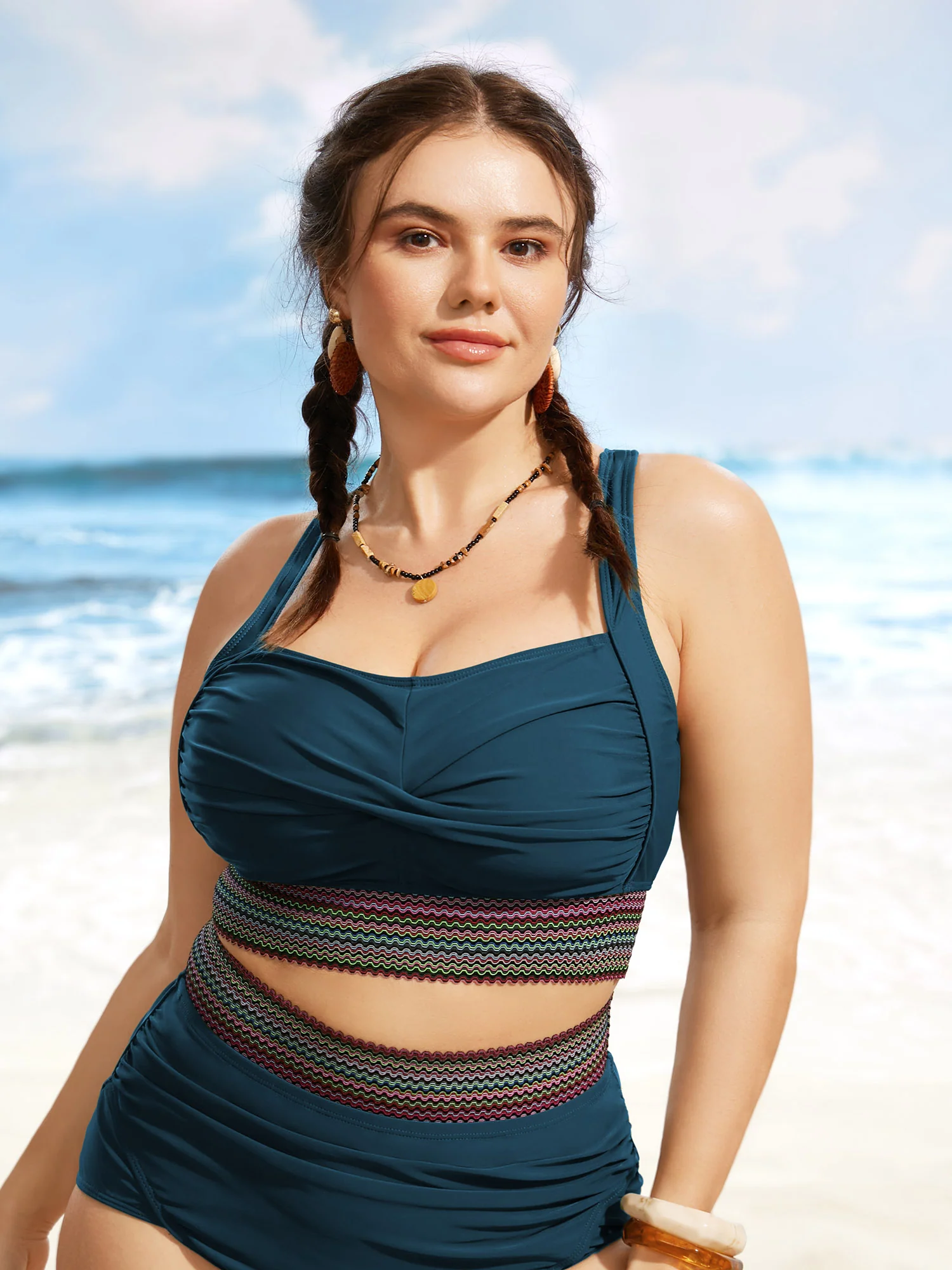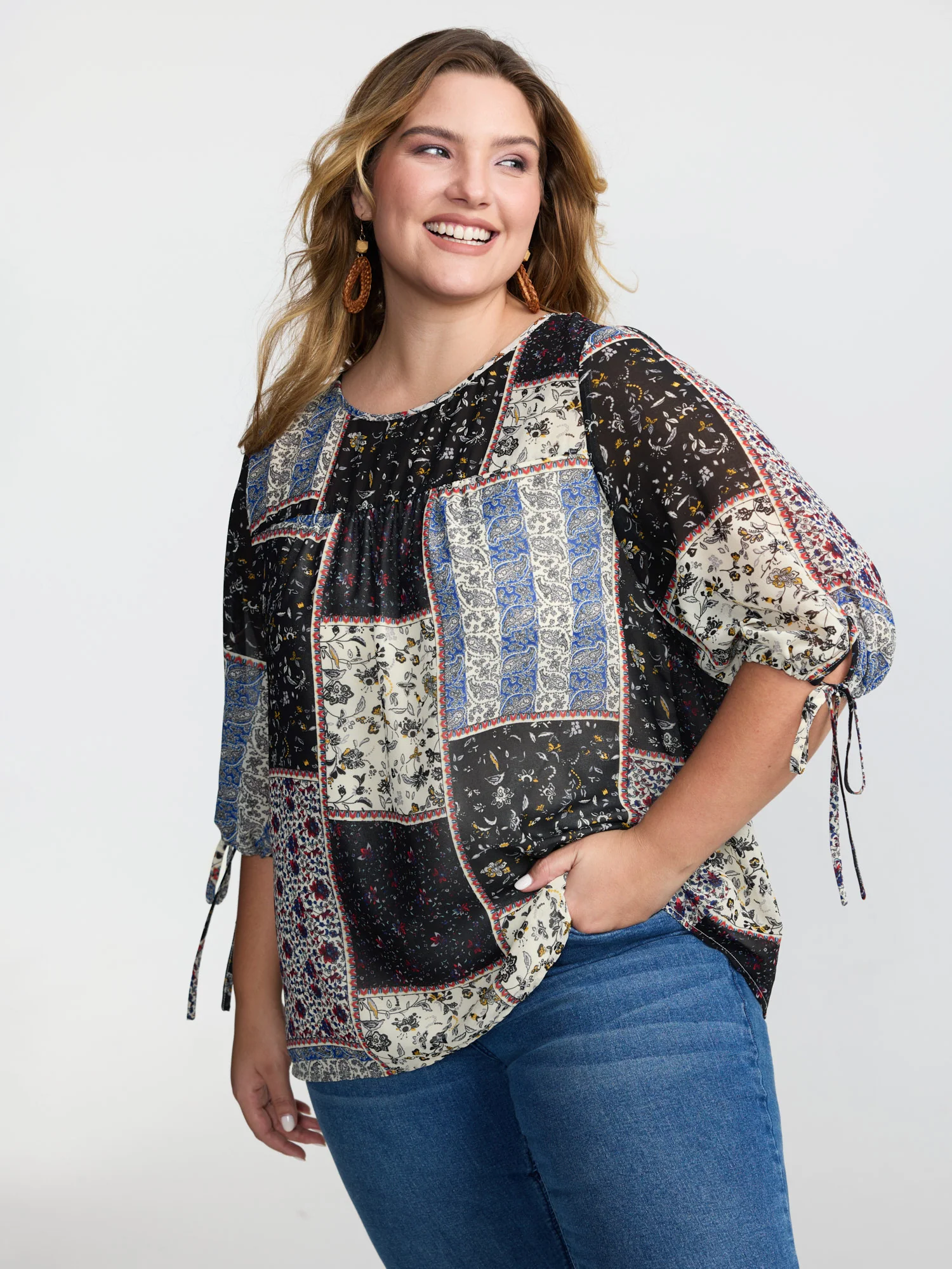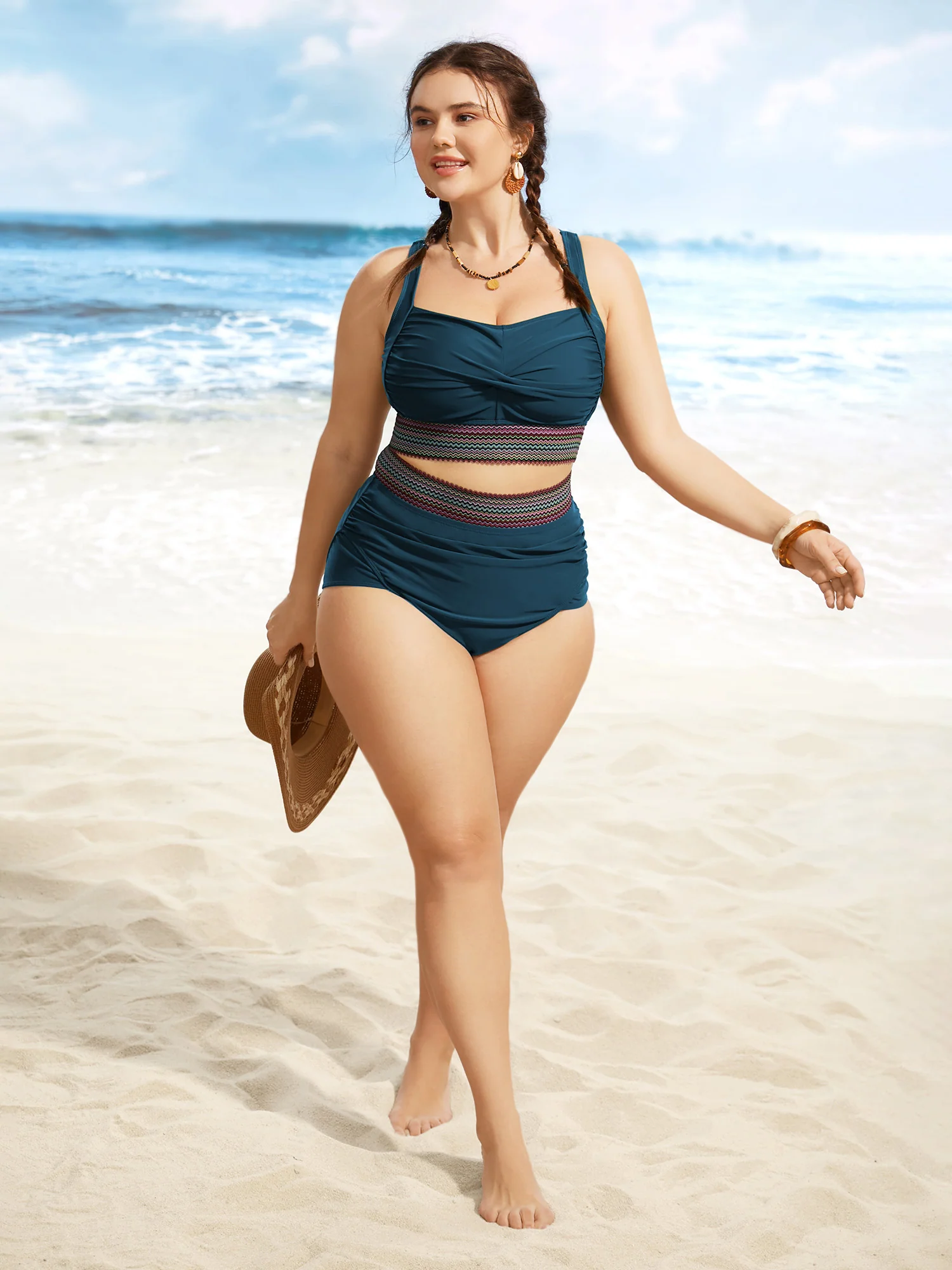 Boho Print Mesh Ruched Crisscross One-Piece Swimsuit