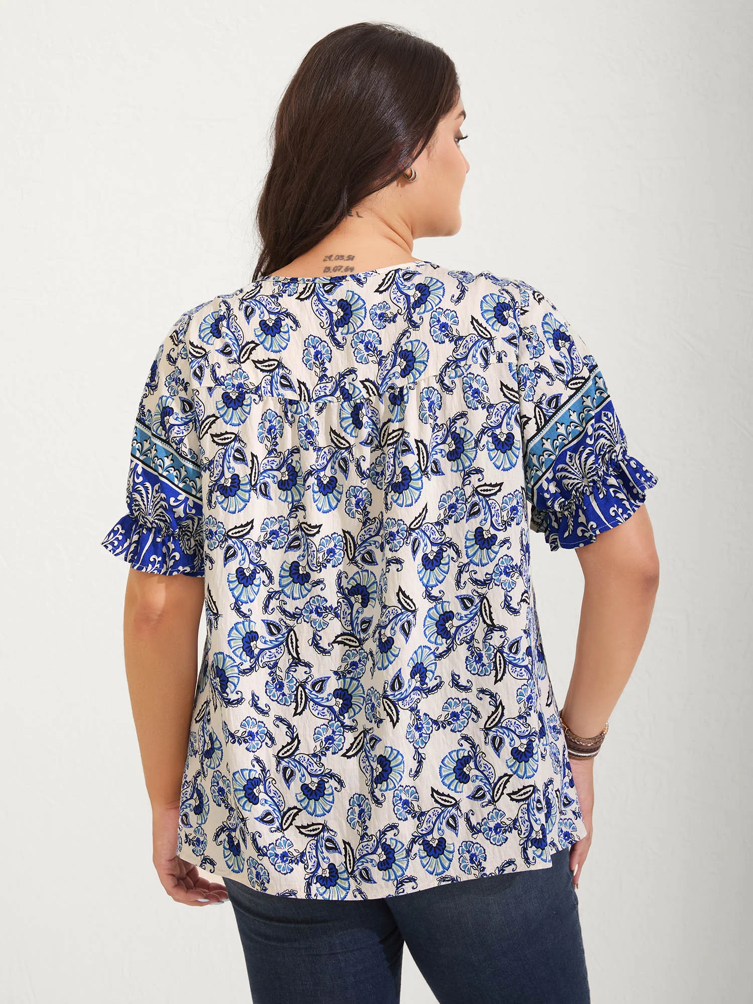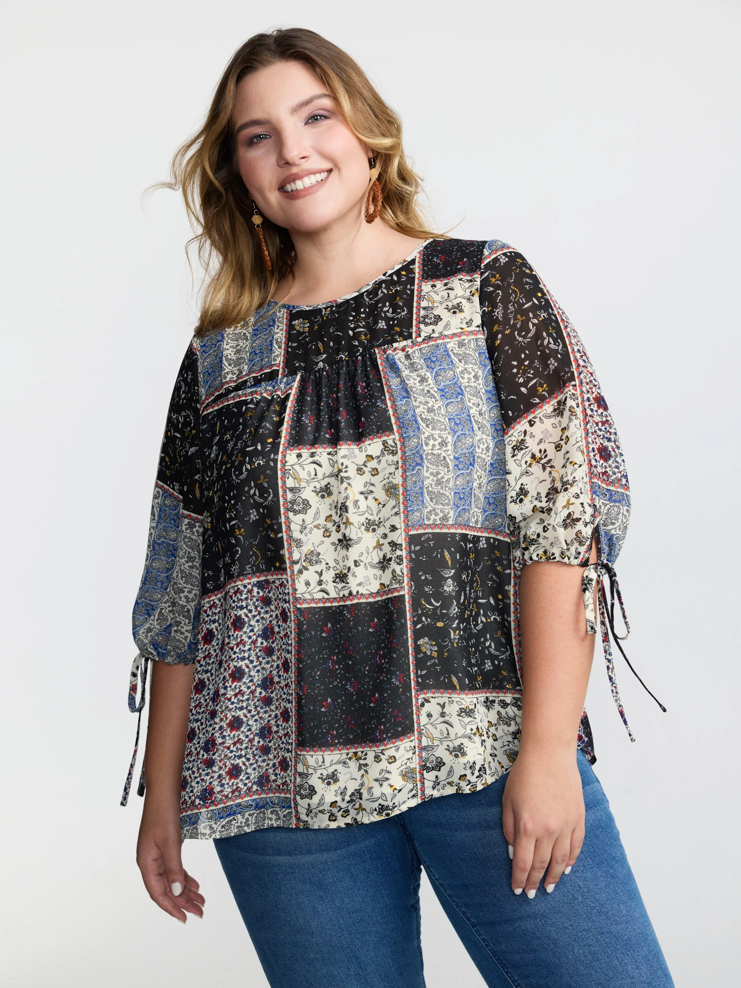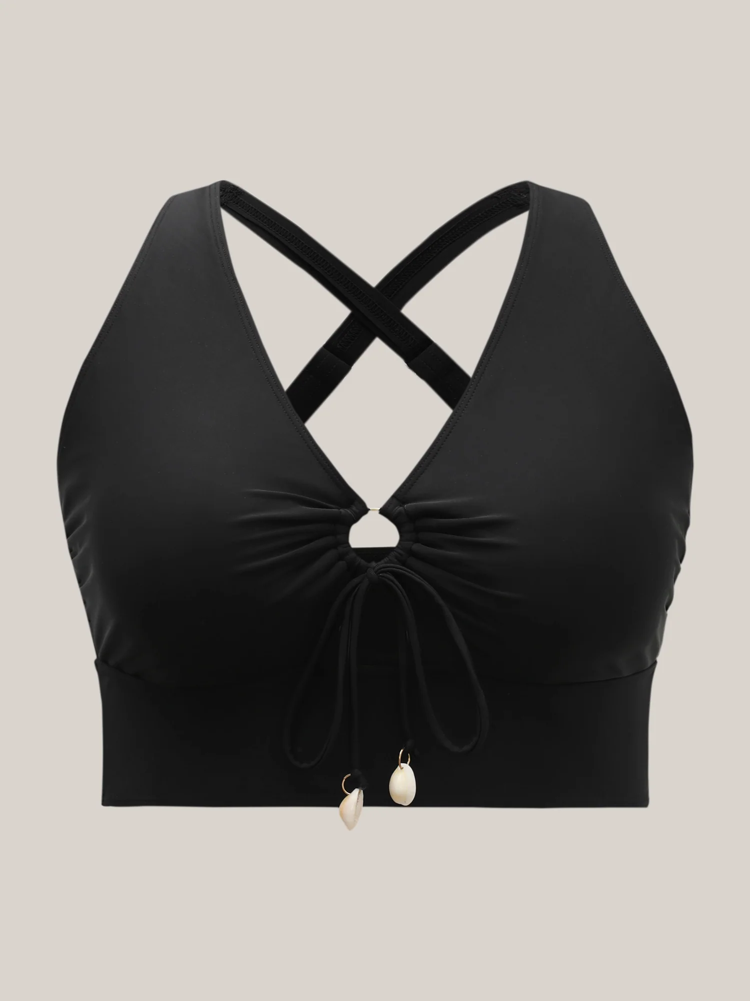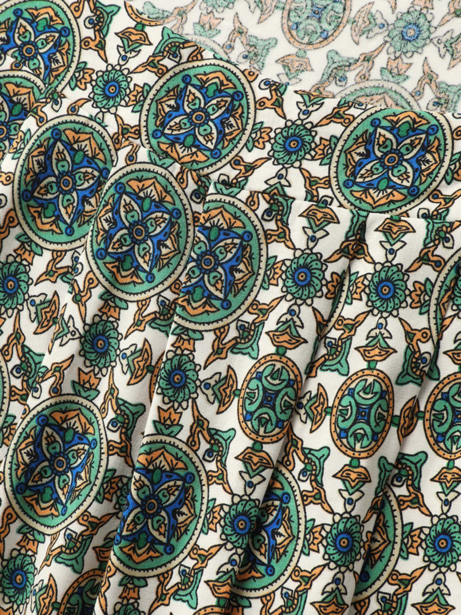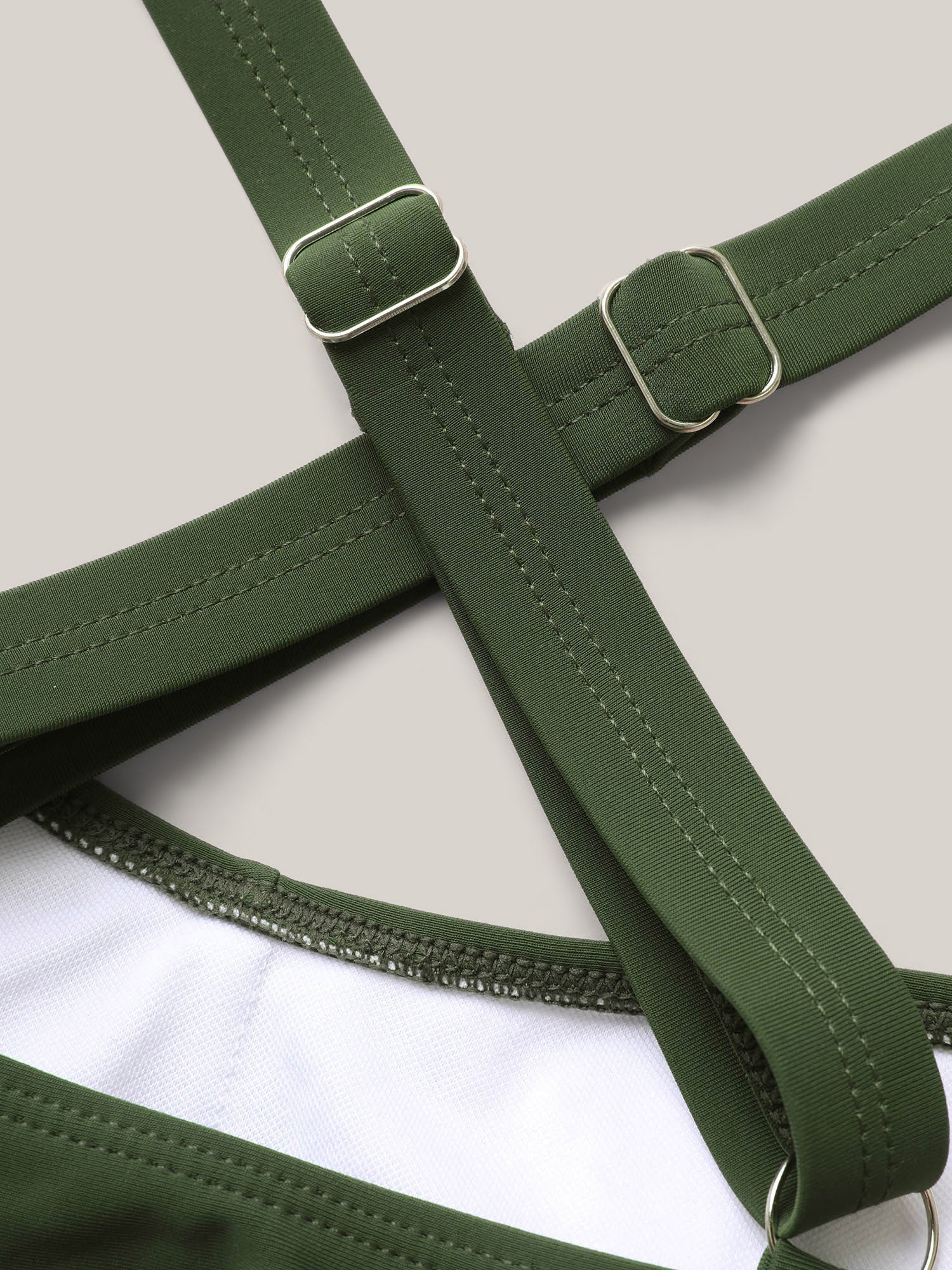 Boho Print Mesh Ruched Crisscross One-Piece Swimsuit